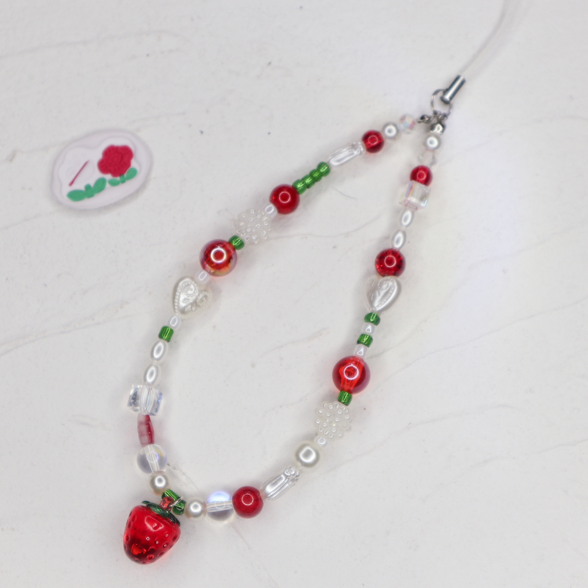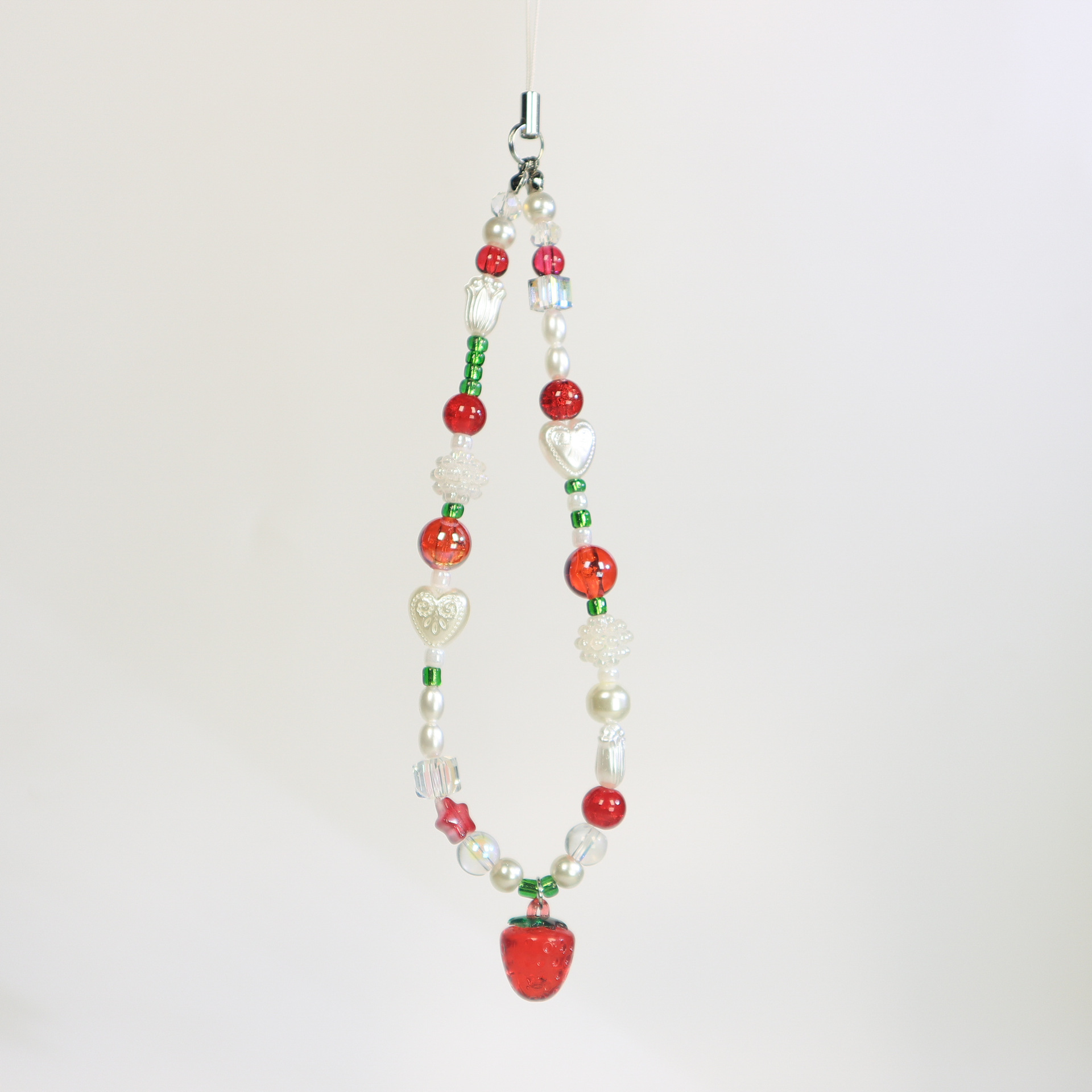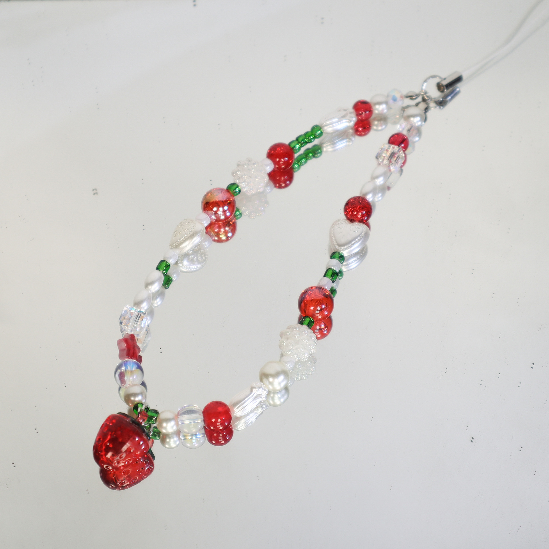 우 오리지널 레드 딸기 휴대 전화 체인 틈새, 바람 별 투명 모리 여성 학생 ccd 카메라 체인