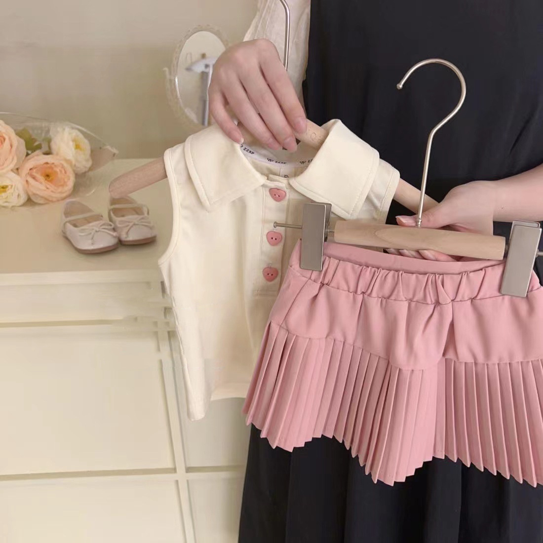 여아 여름 세트 2025 신상 여아용 폴로 조끼 어린이 패션 주름 치마 캐주얼 투피스 세트