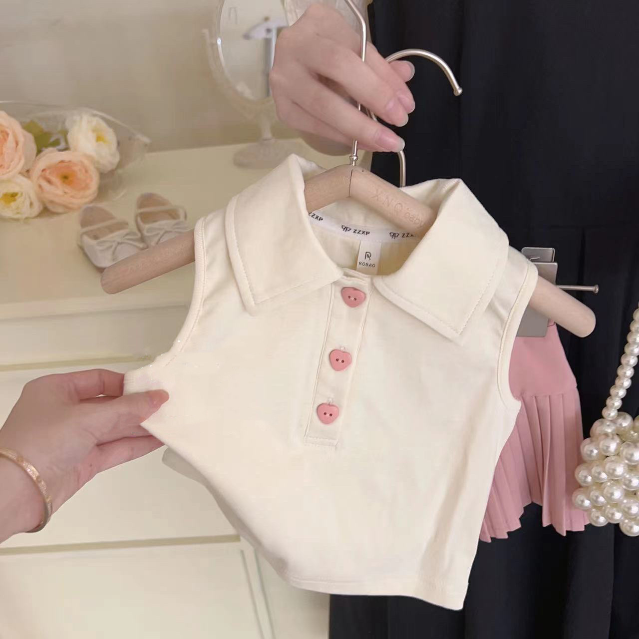여아 여름 세트 2025 신상 여아용 폴로 조끼 어린이 패션 주름 치마 캐주얼 투피스 세트스토어 가기