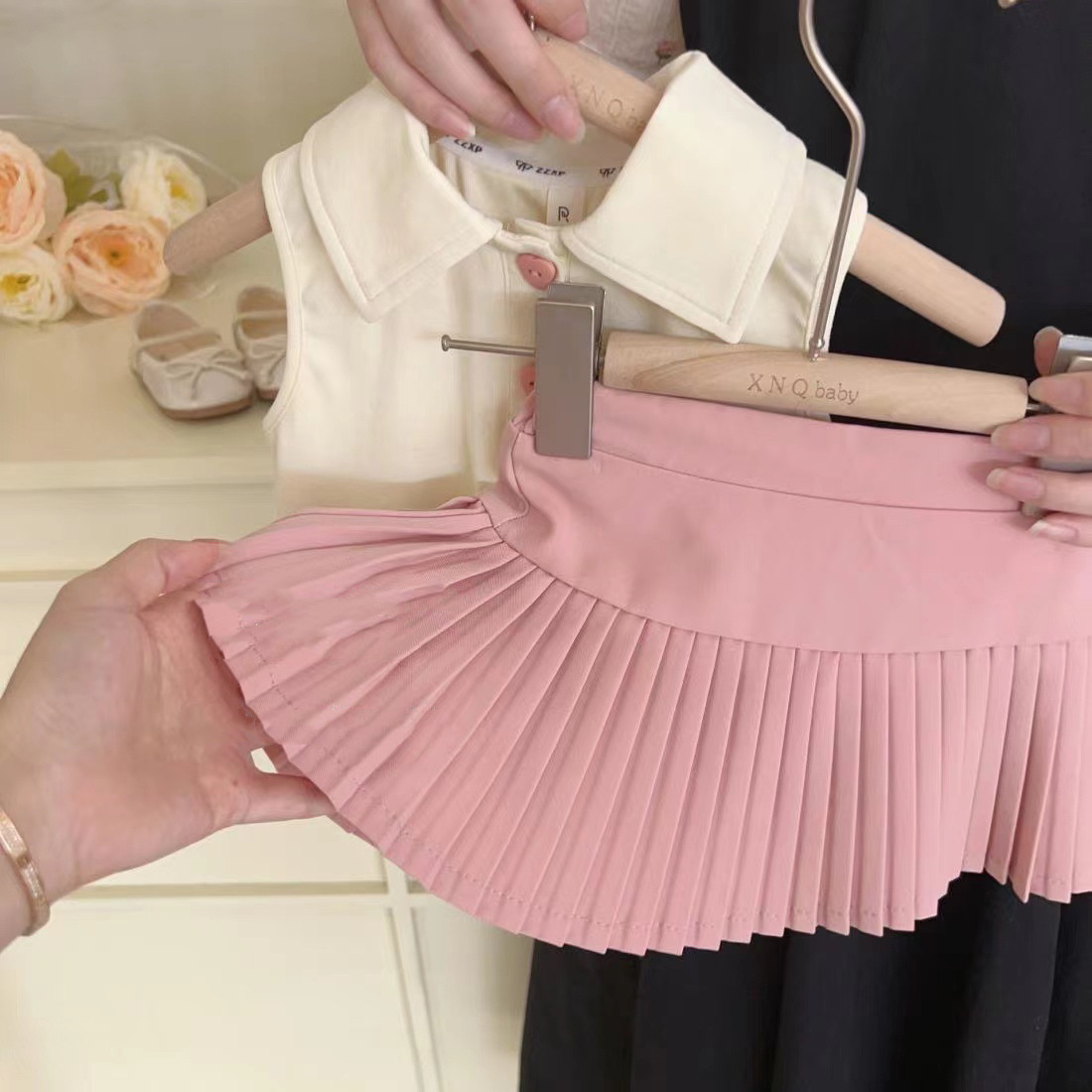 女童夏季套装2023新款女宝POLO背心儿童洋气时尚百褶裙休闲两件套