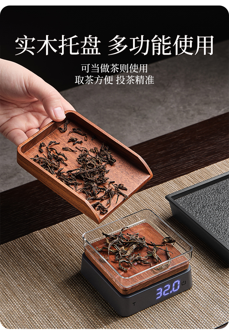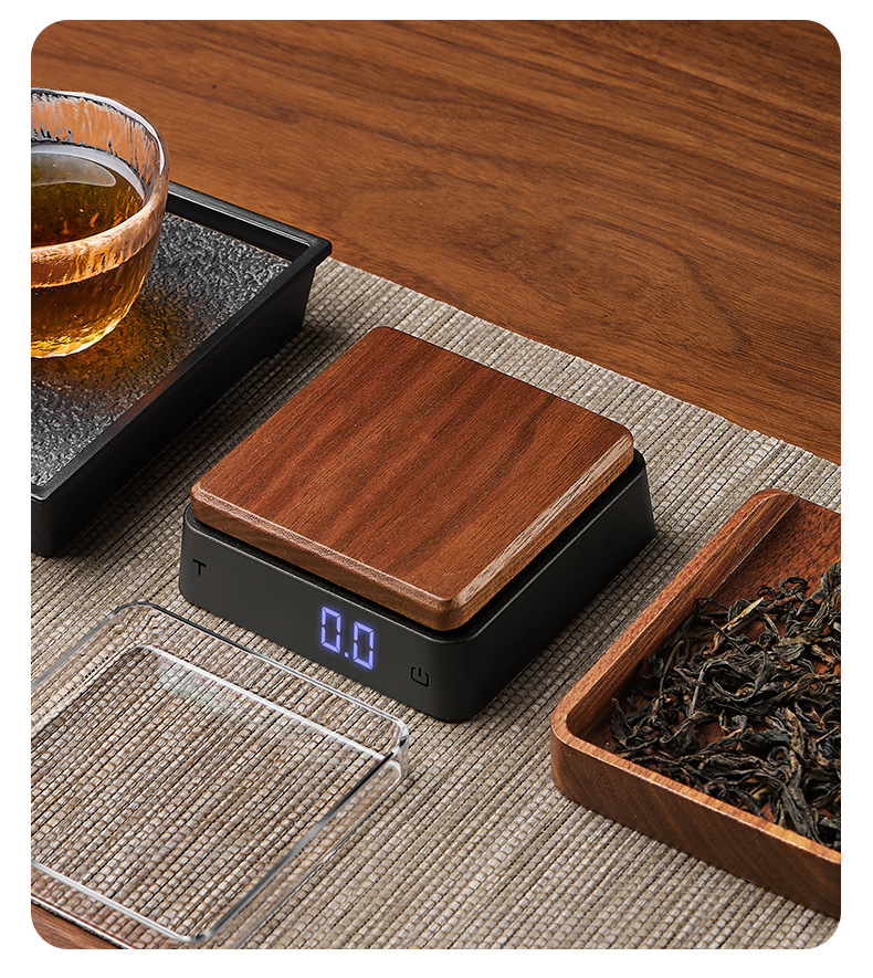 차 전자 규모 월넛 차 솔리드 우드 주방 규모 계량 식품 계량 차 세트 액세서리 충전 미니 차 스케일