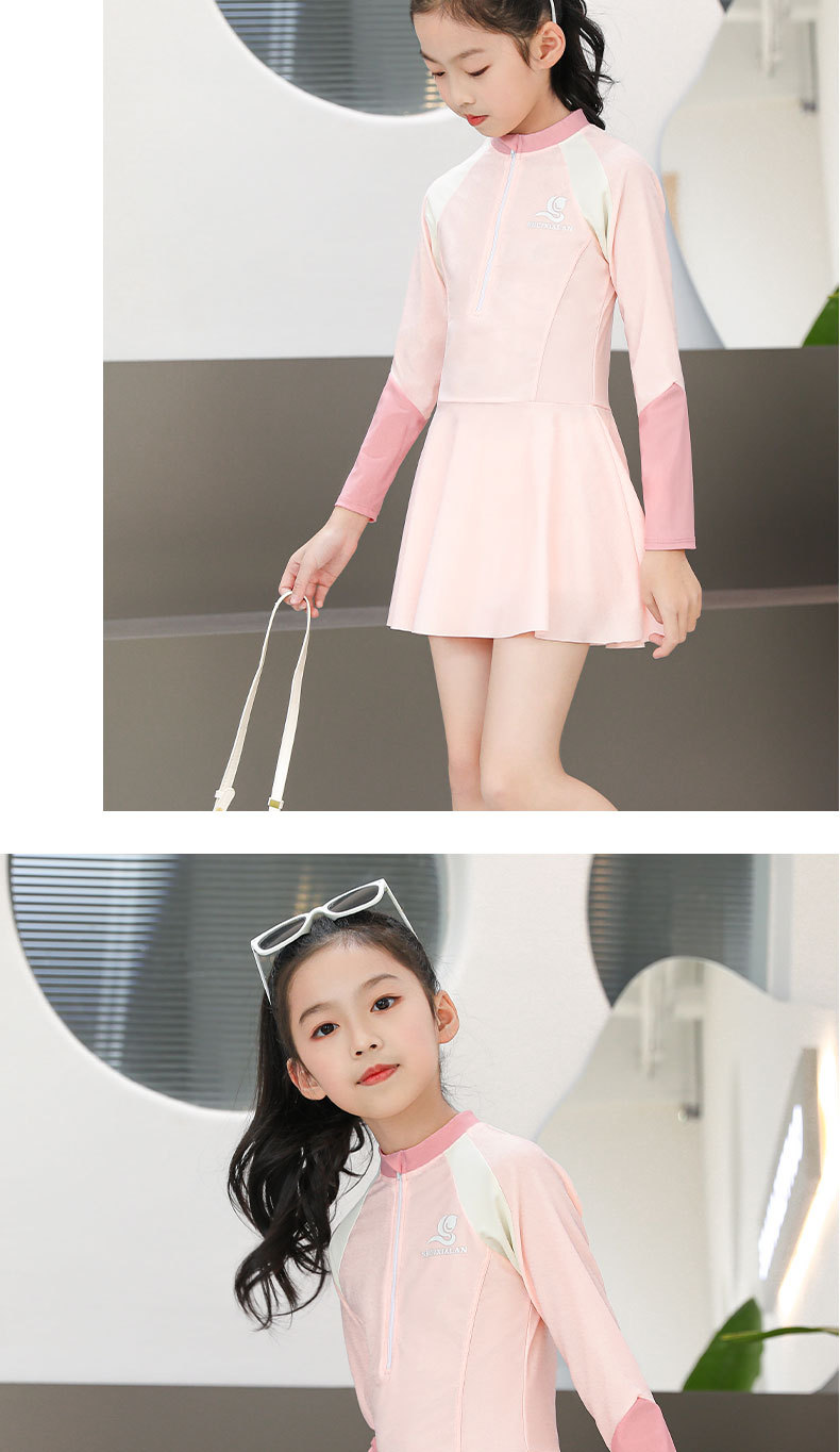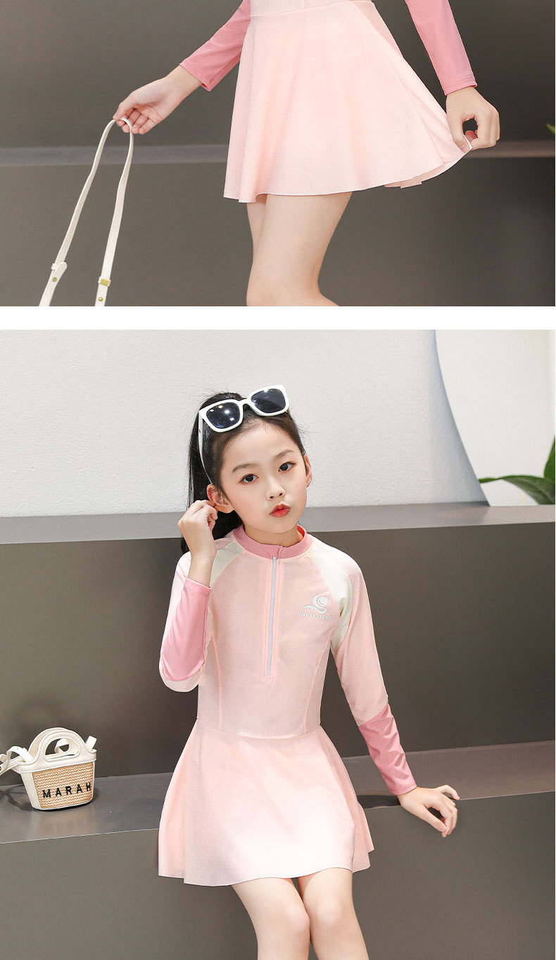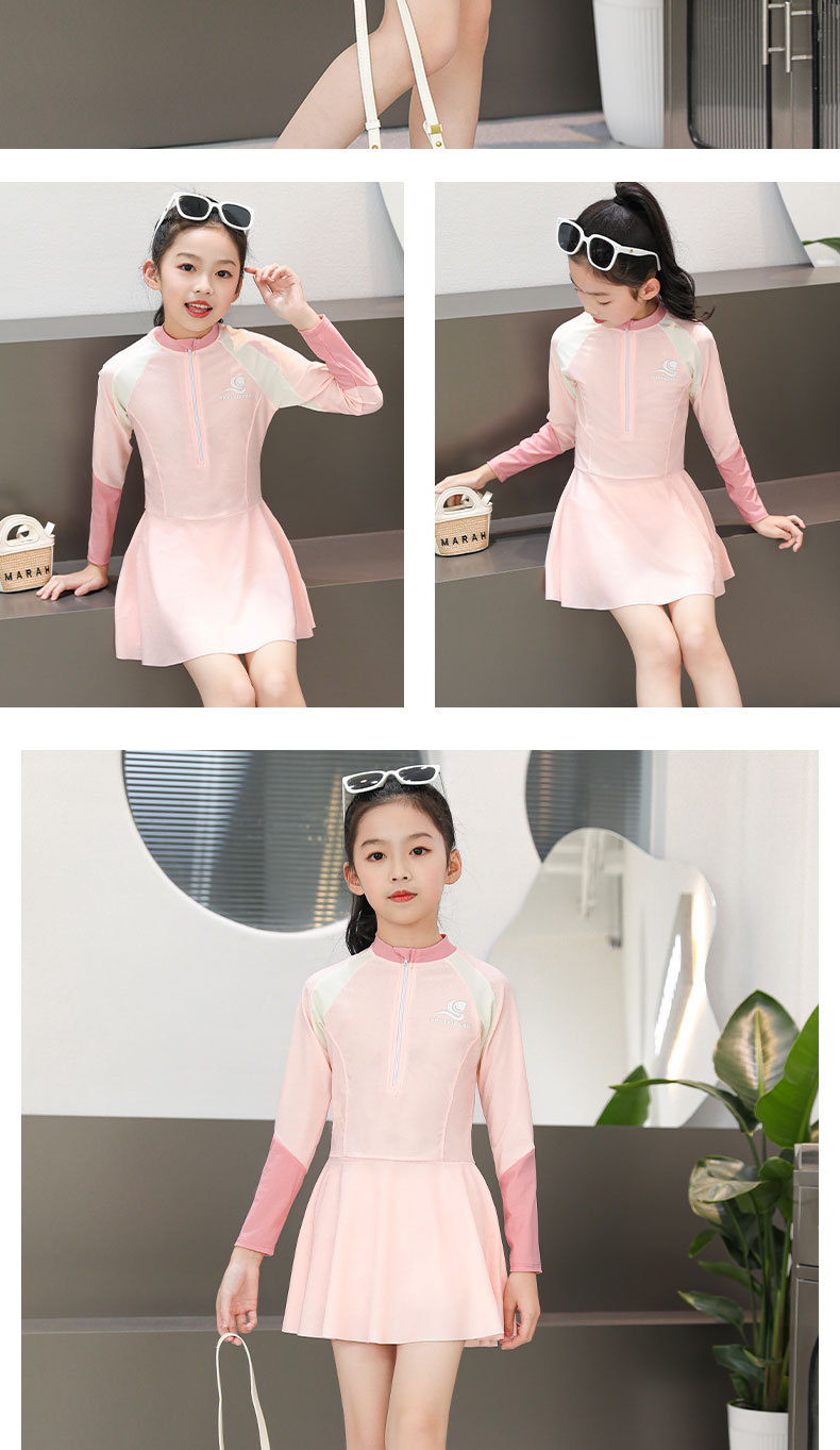 어린이 수영복 소녀 긴팔 수영복 2024 여름 새로운 도착 스커트 분할 빠른 건조 태양 보호 수영복