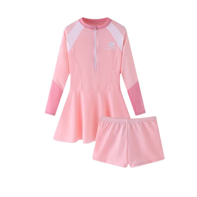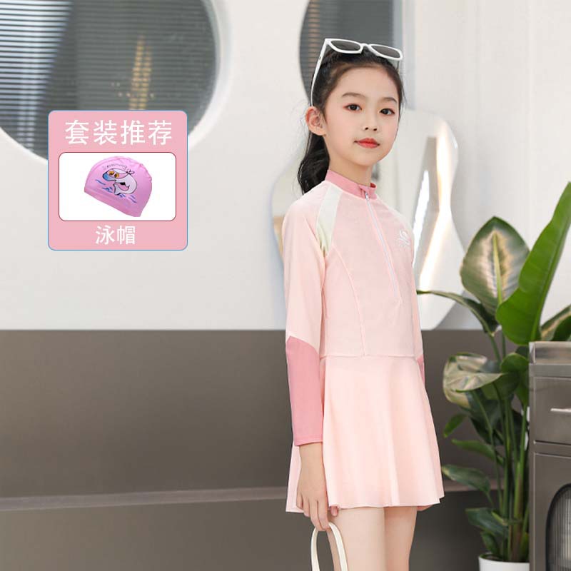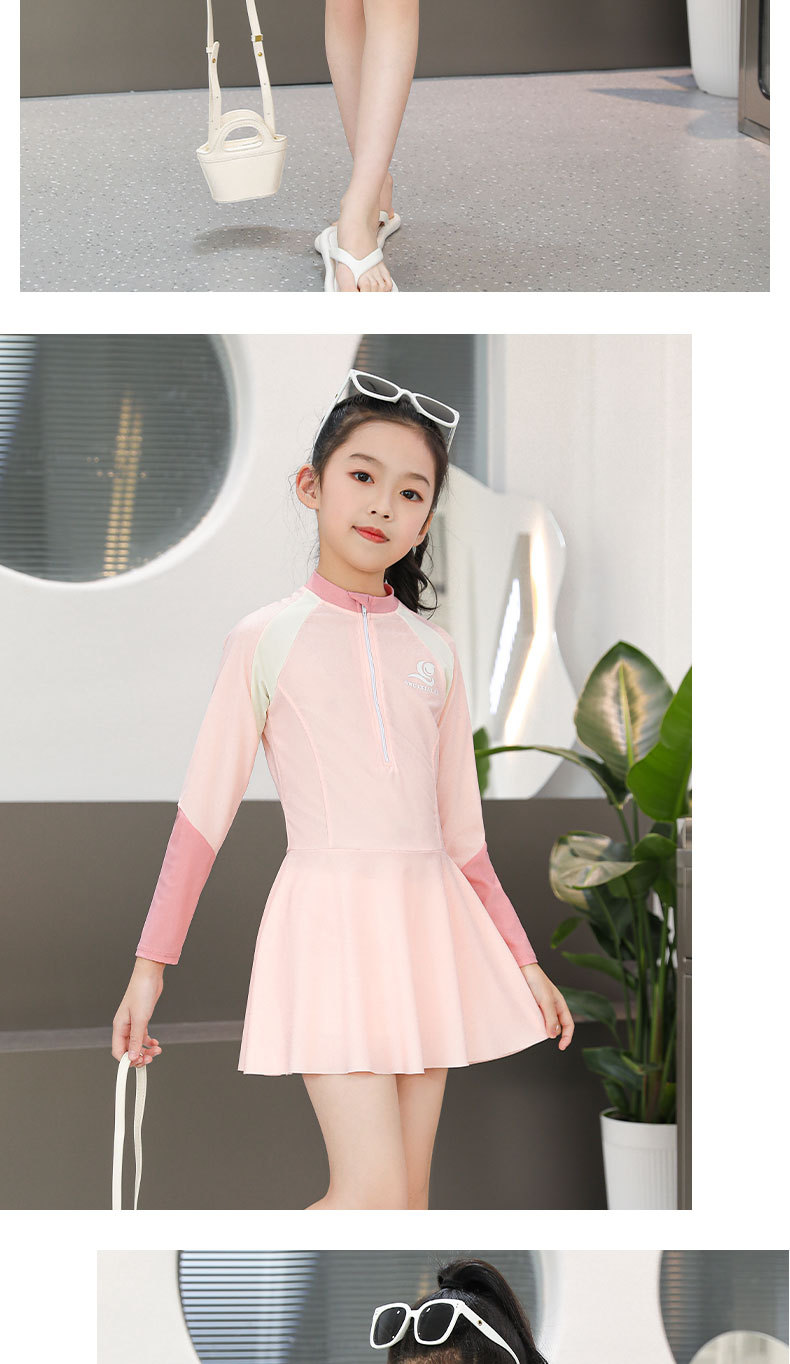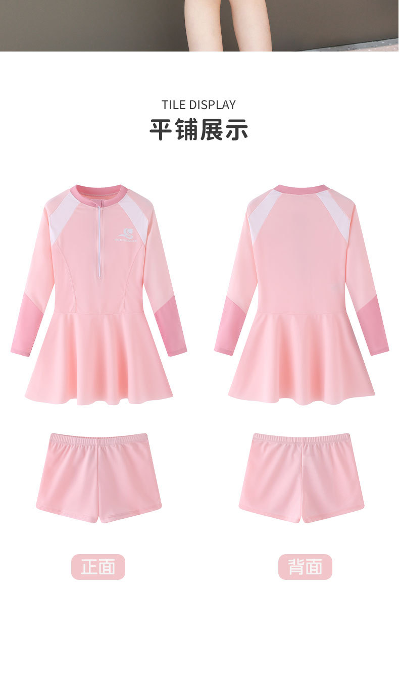 어린이 수영복 소녀 긴팔 수영복 2024 여름 새로운 도착 스커트 분할 빠른 건조 태양 보호 수영복
