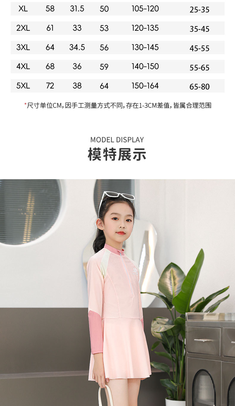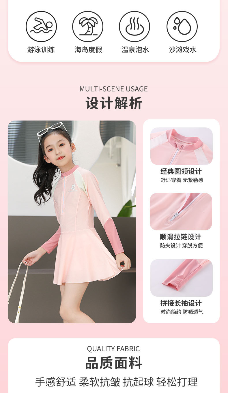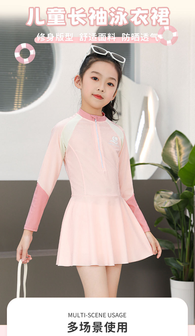 어린이 수영복 소녀 긴팔 수영복 2024 여름 새로운 도착 스커트 분할 빠른 건조 태양 보호 수영복스토어 가기