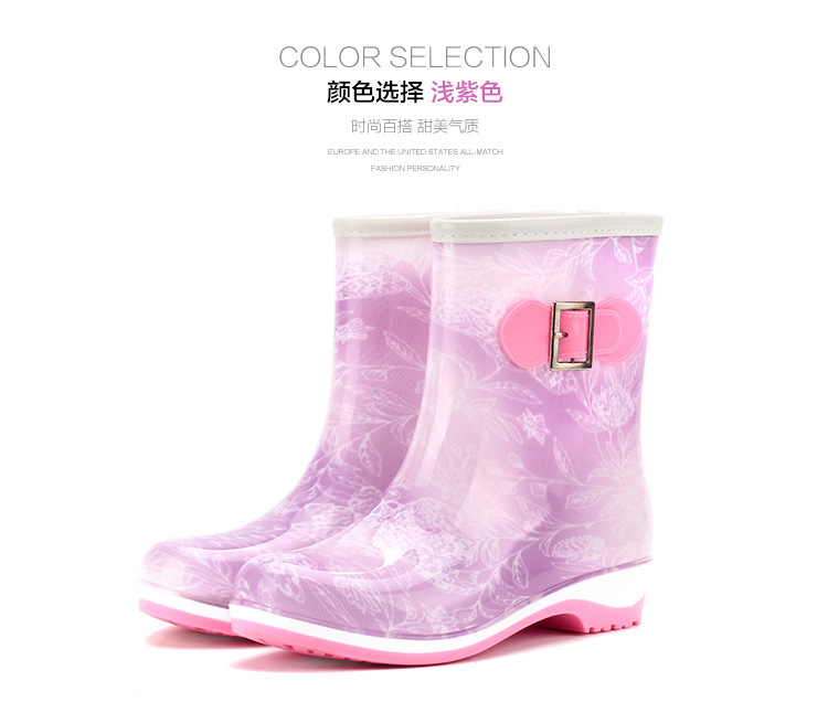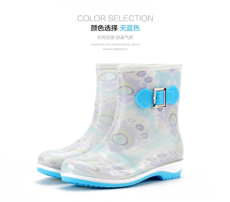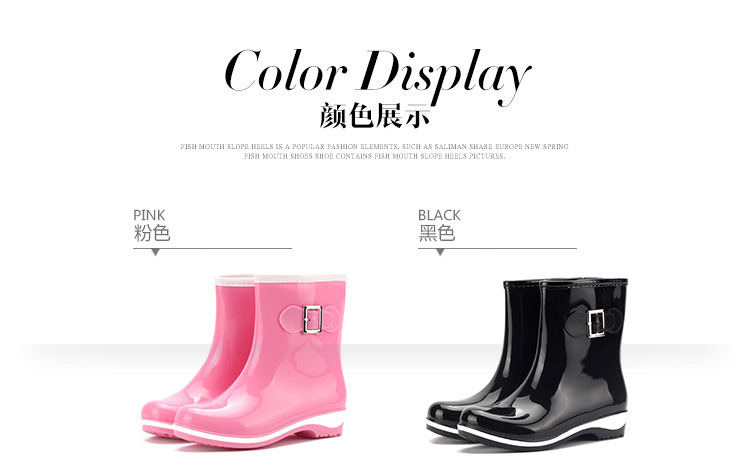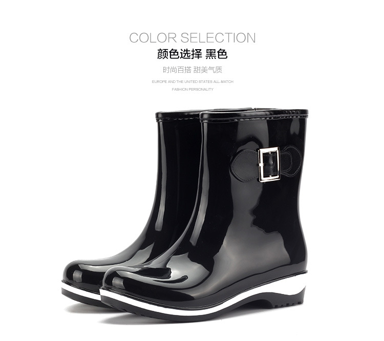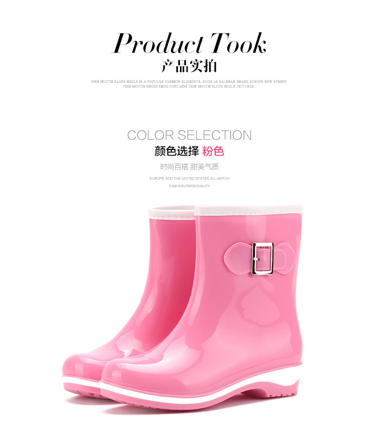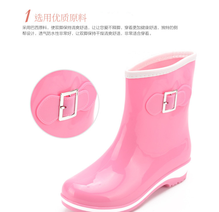 패션 뉴 비 신발 여성 따뜻한 미들 튜브 솔리드 컬러 미끄럼 방지 젤리 눈 비 부츠 한국식 워터 슈즈 여성용 오버 슈즈