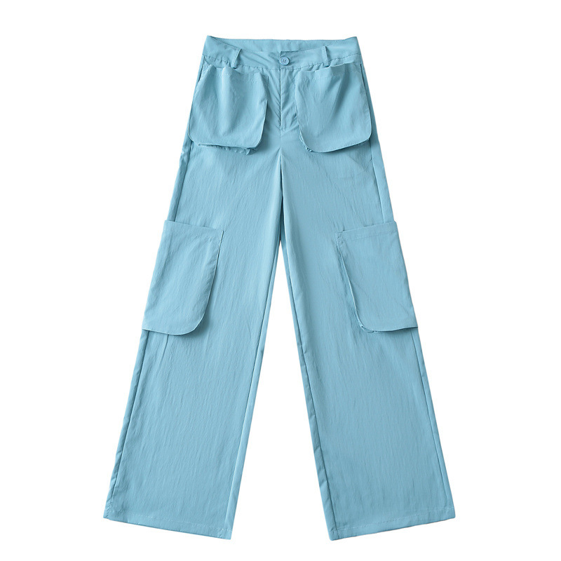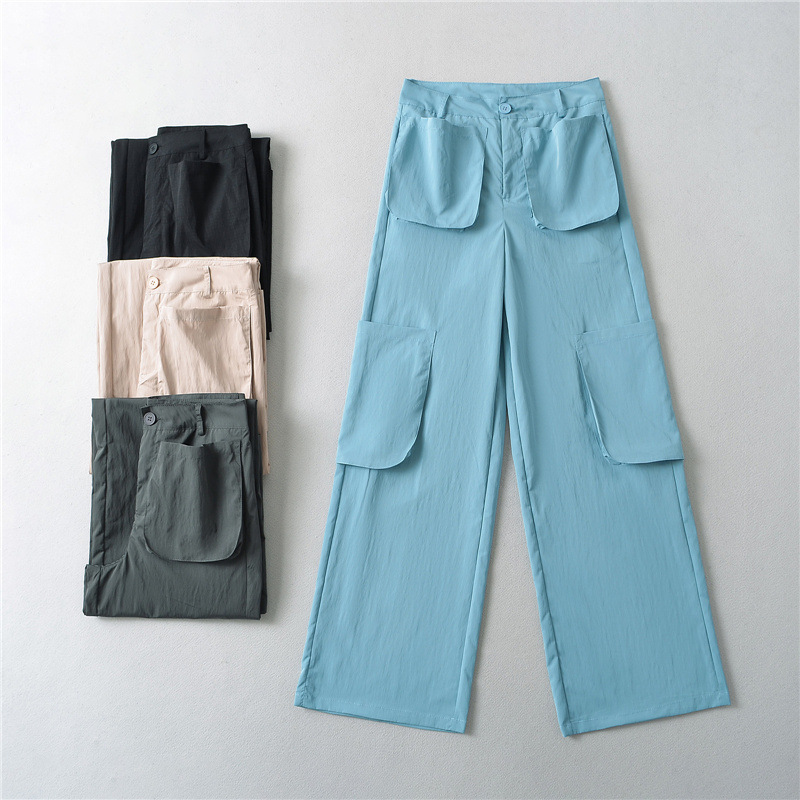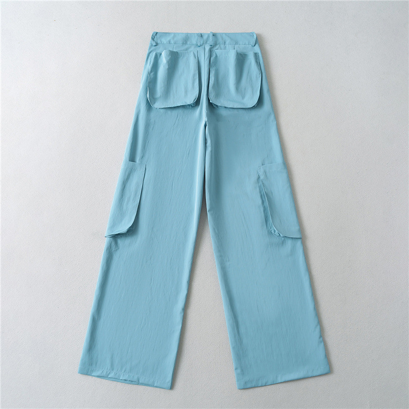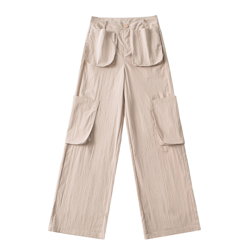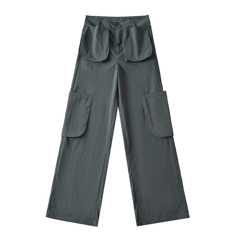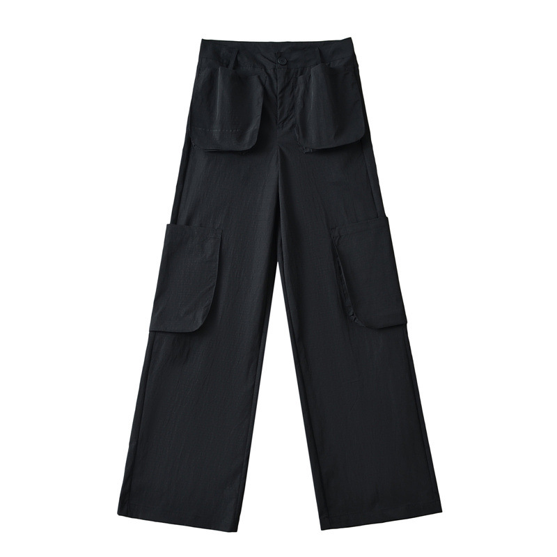 미국 복고풍 3 차원 포켓 스트레이트 잡힌 바지 2024 봄과 여름 새로운 높은 허리 슬리밍 캐주얼 바지