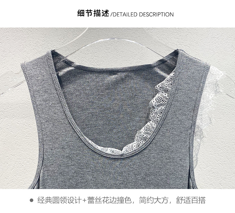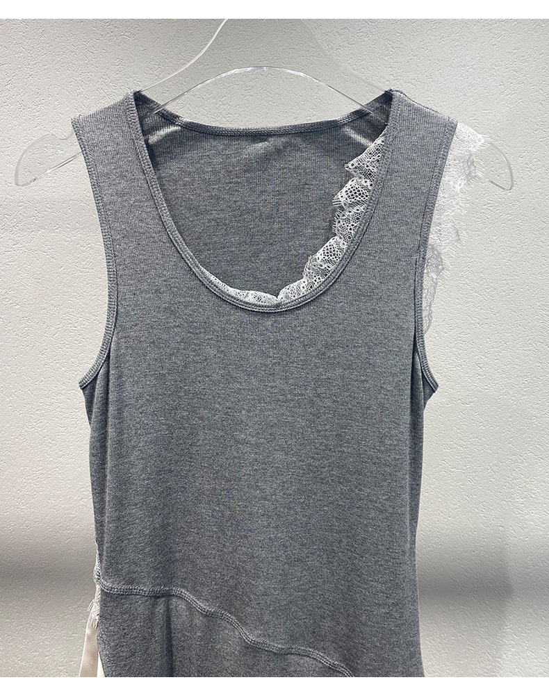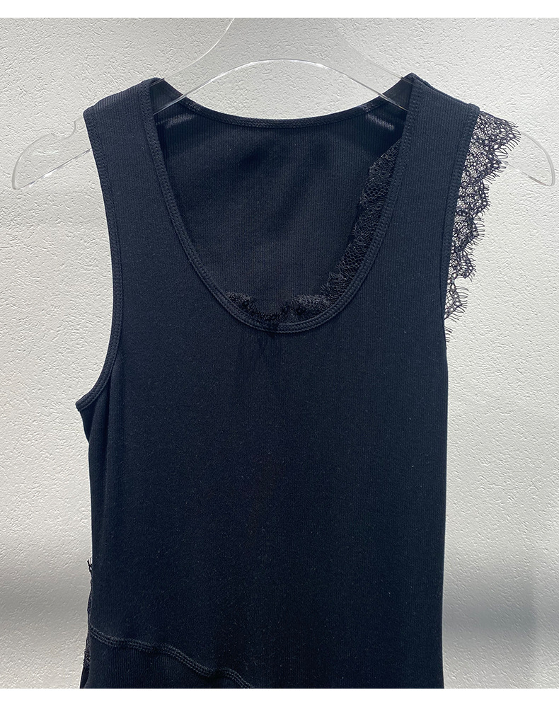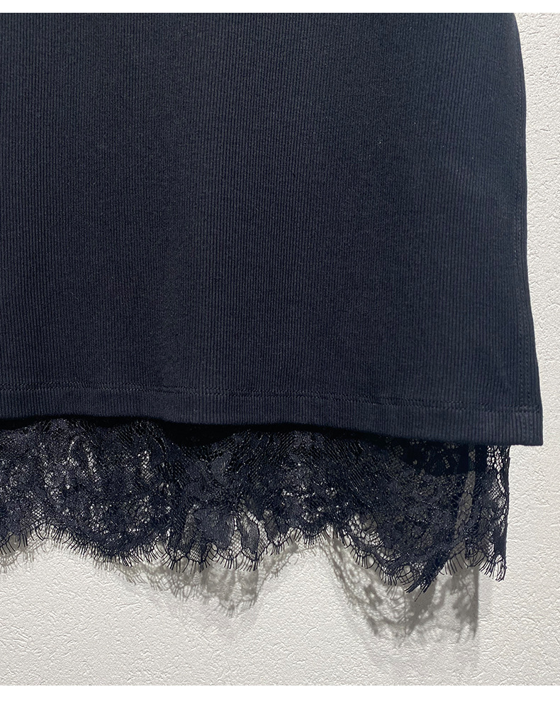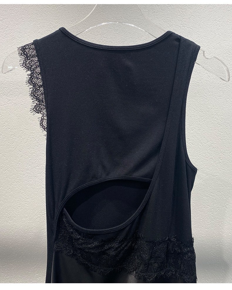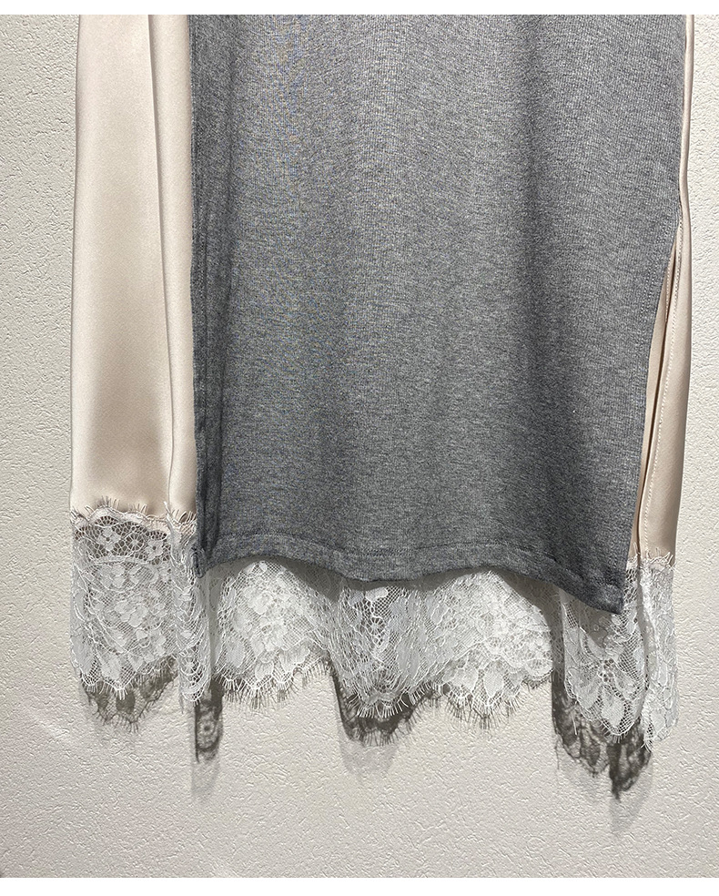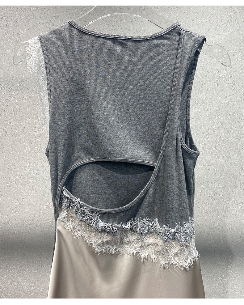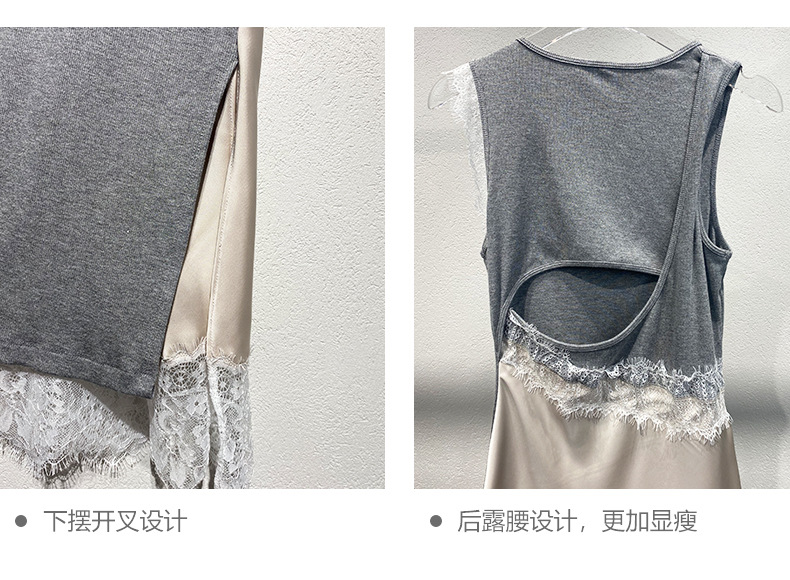 Xiaozhong 2024 봄과 여름 새로운 대비 색상 라운드 넥 레이스 사이드 원피스 여성스토어 가기
