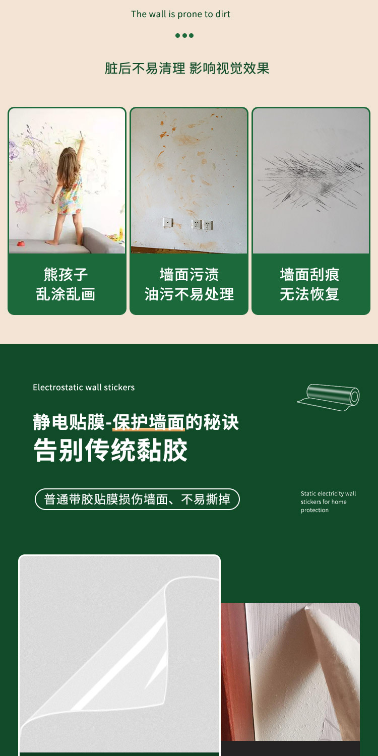 벽 보호 필름 정전기 라텍스 페인트 투명 비 손상 벽 더러운 흰색 벽 벽지 벽 스티커 자체 접착 방수 필름스토어 가기