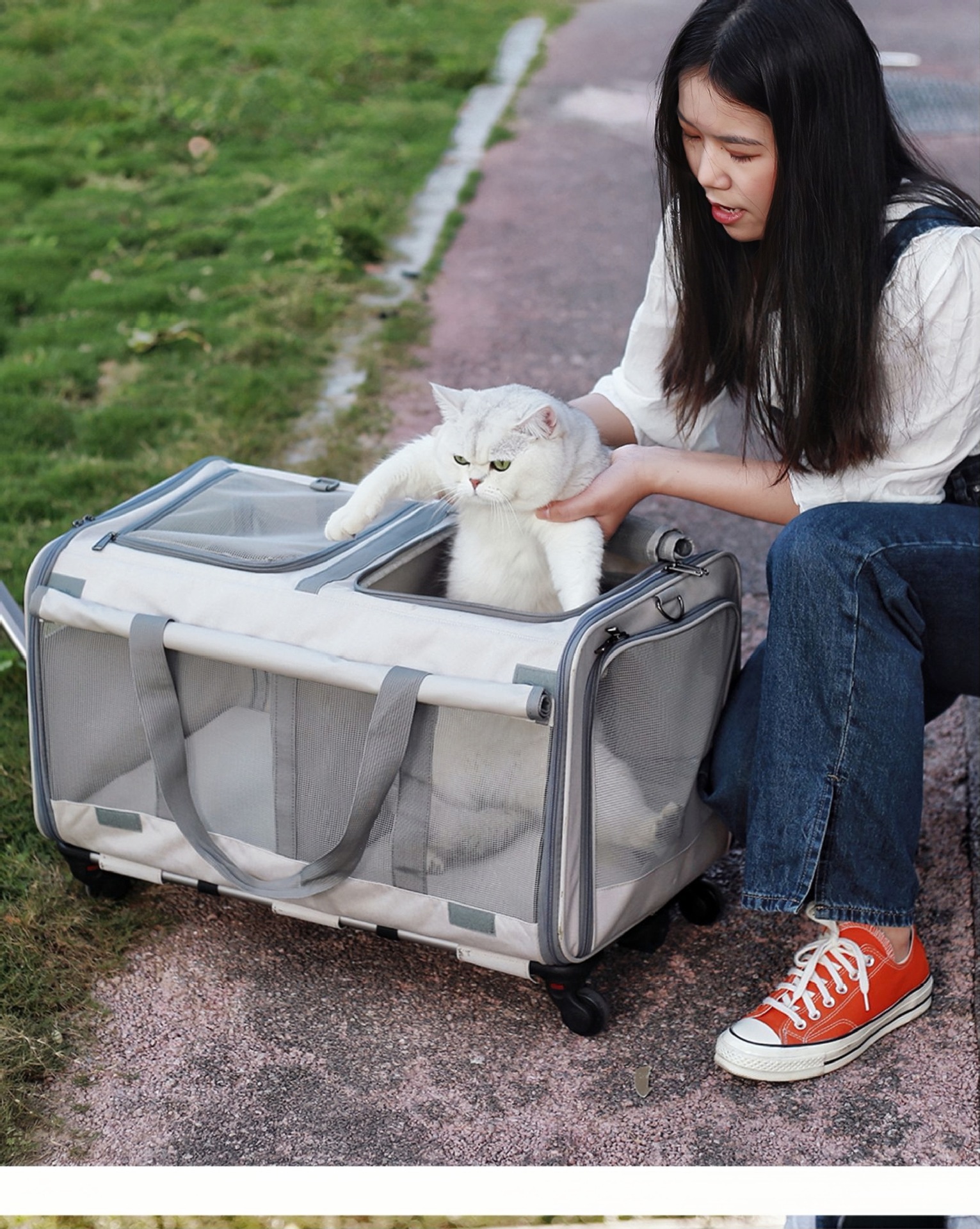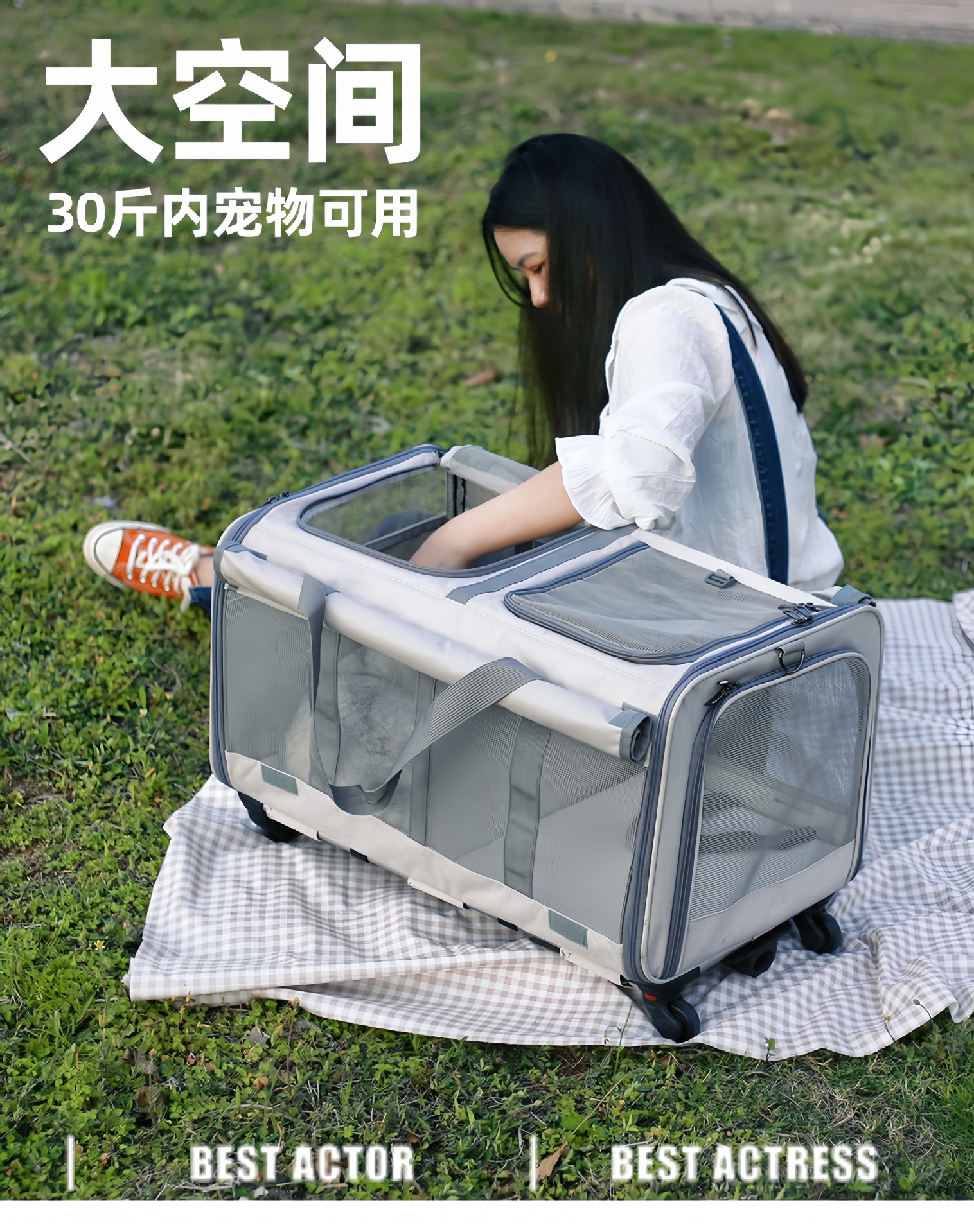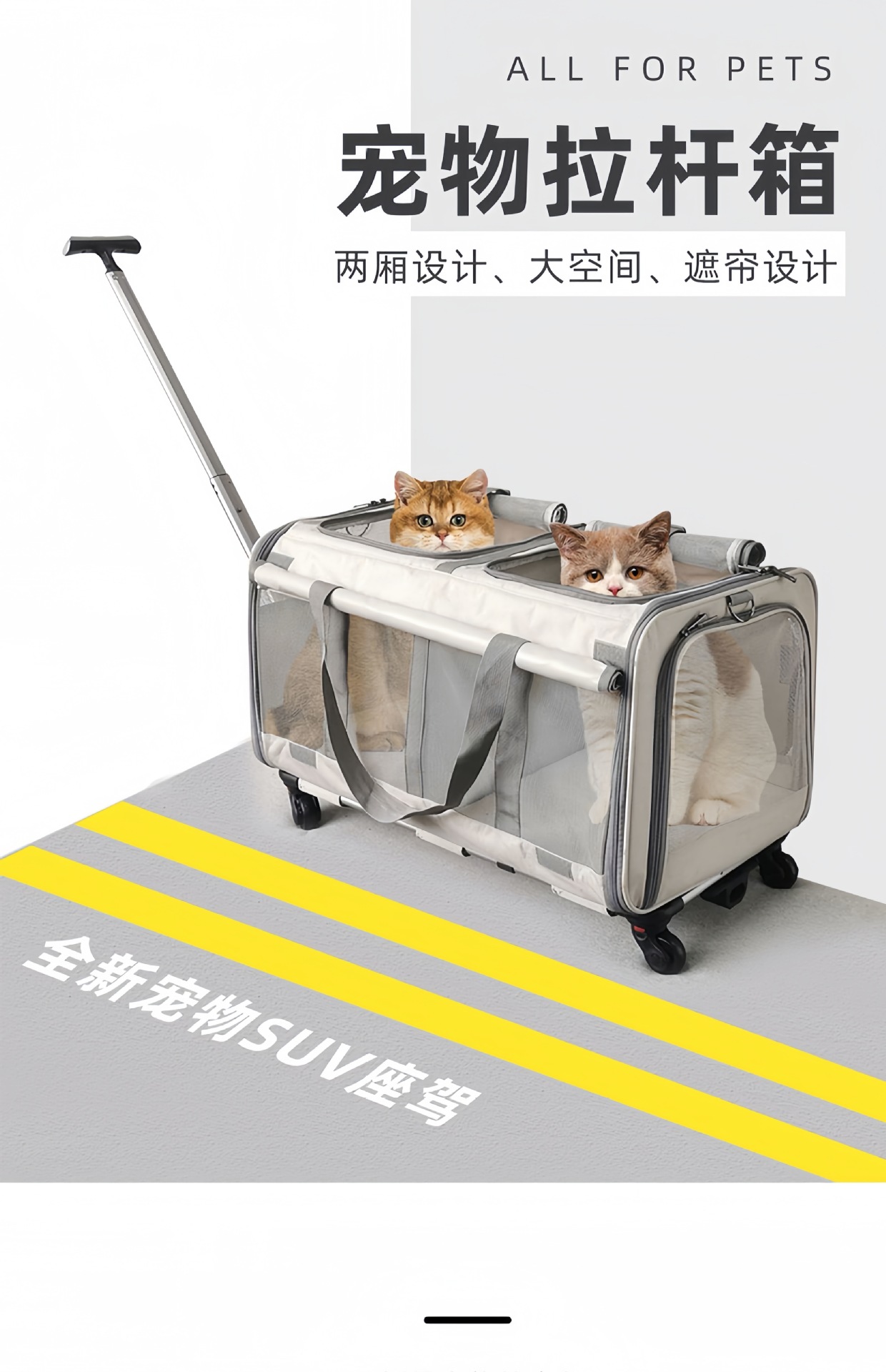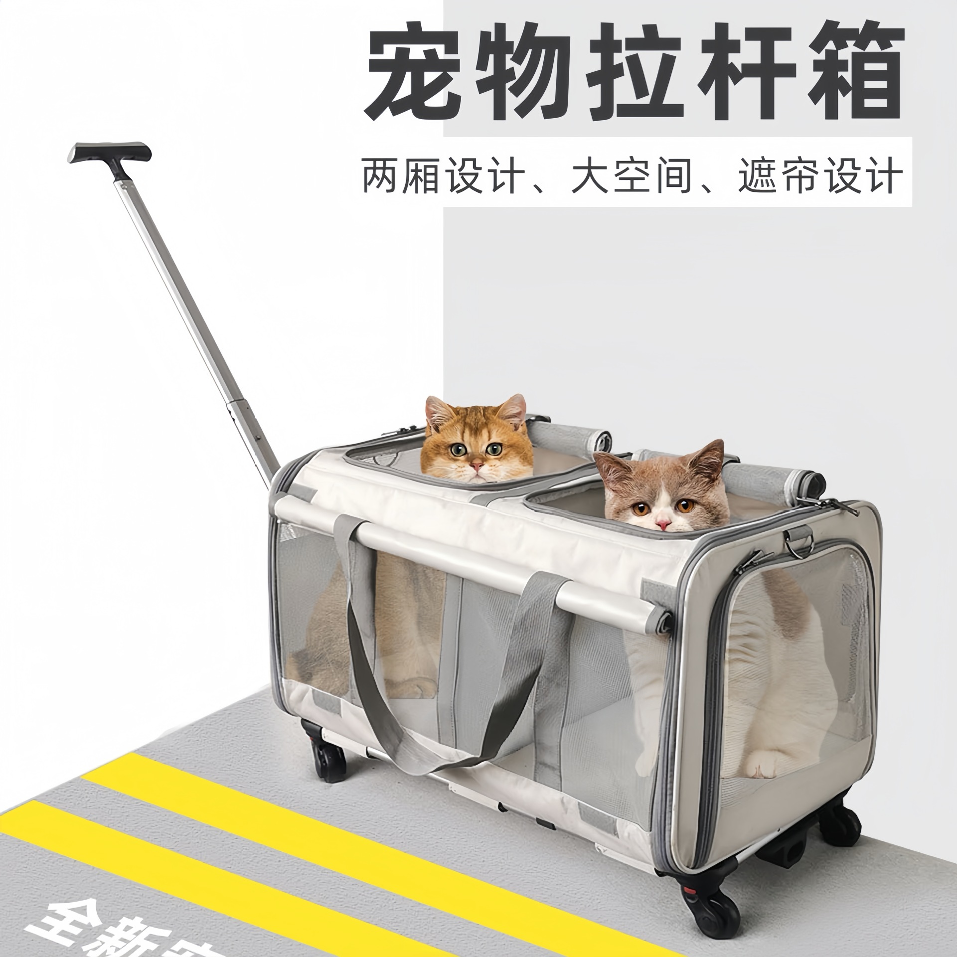 애완동물 트롤리 박스 대용량 이중칸 다묘용 이동 가방 고양이 가방 중소형견 고양이 케이지 휴대용 다묘용 적합