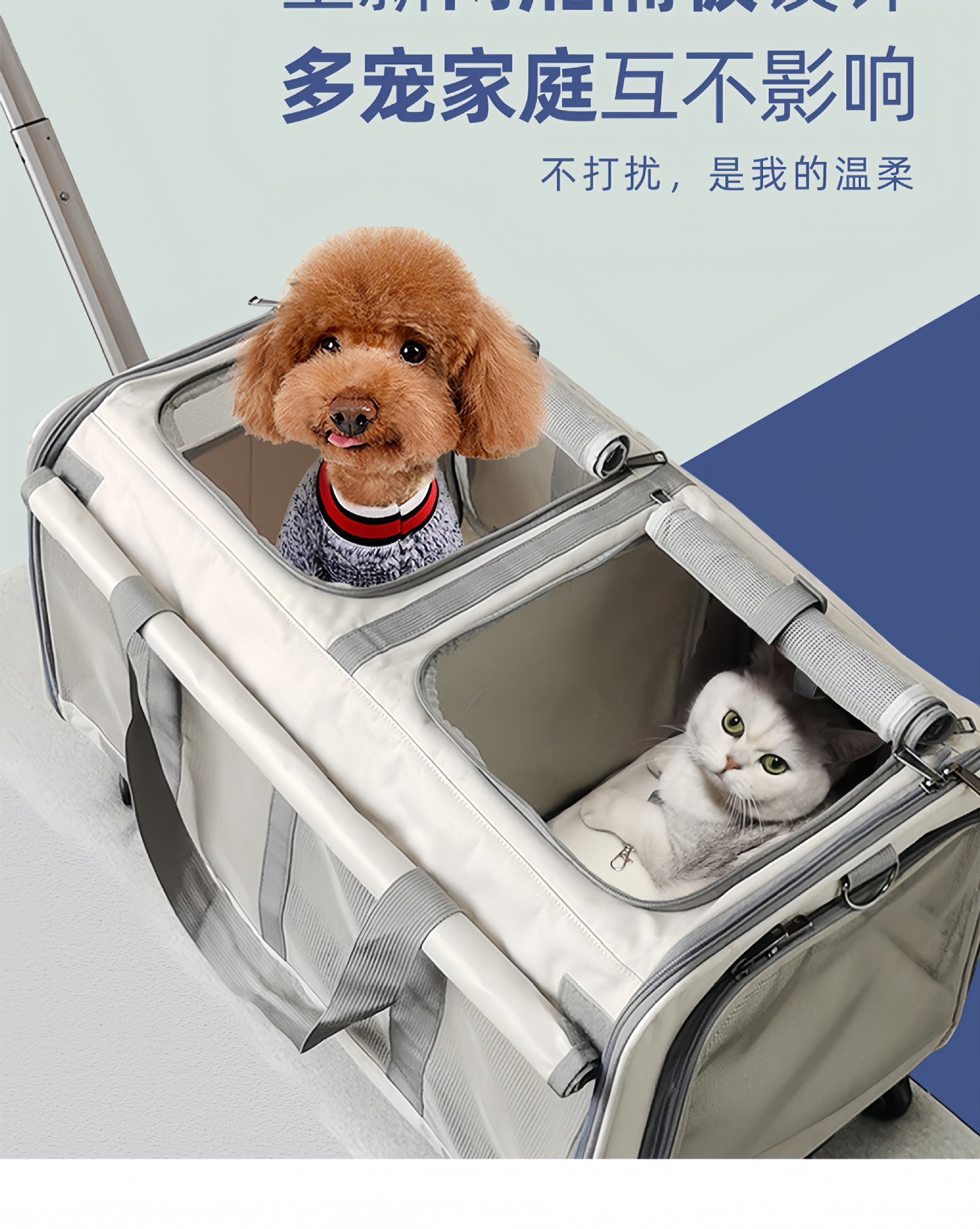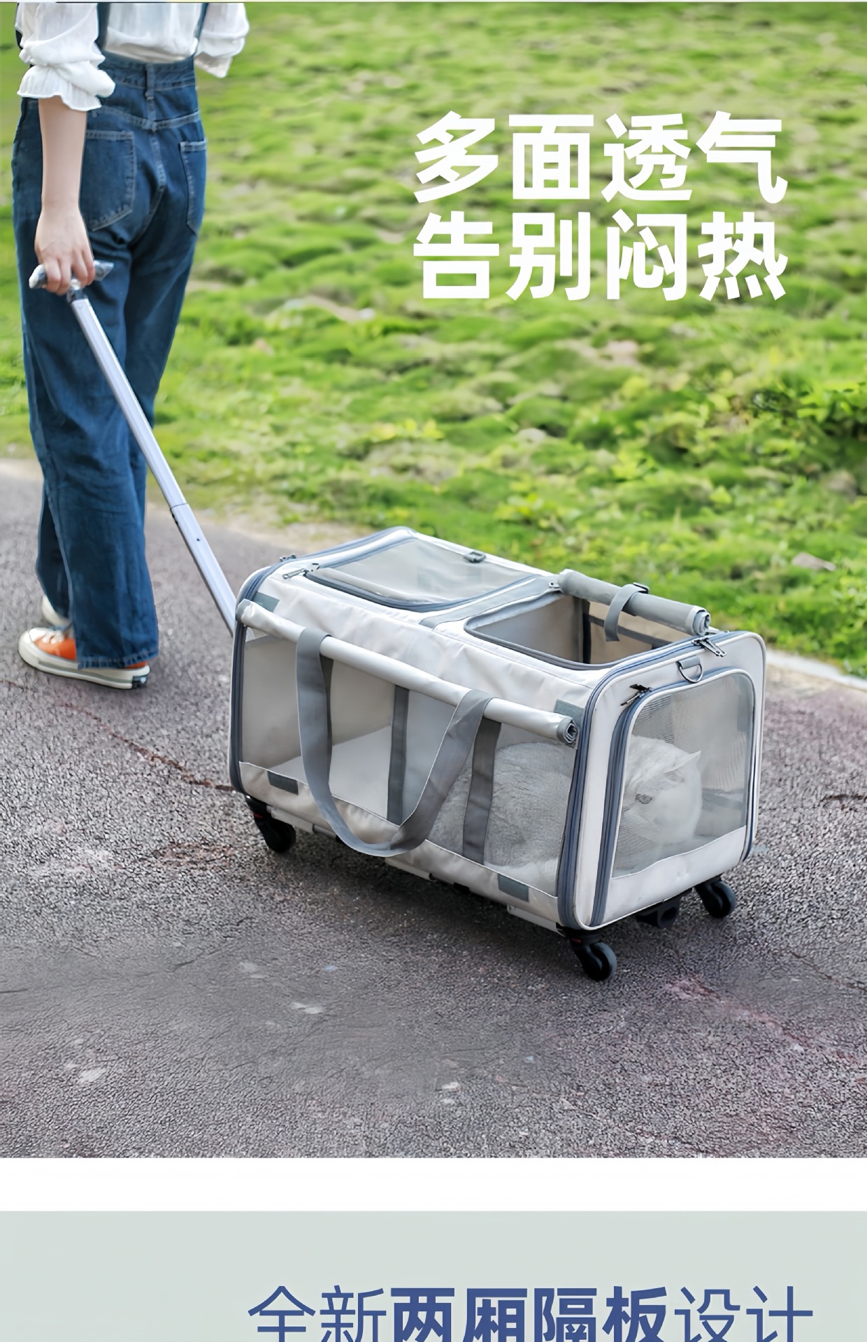 애완동물 트롤리 박스 대용량 이중칸 다묘용 이동 가방 고양이 가방 중소형견 고양이 케이지 휴대용 다묘용 적합스토어 가기