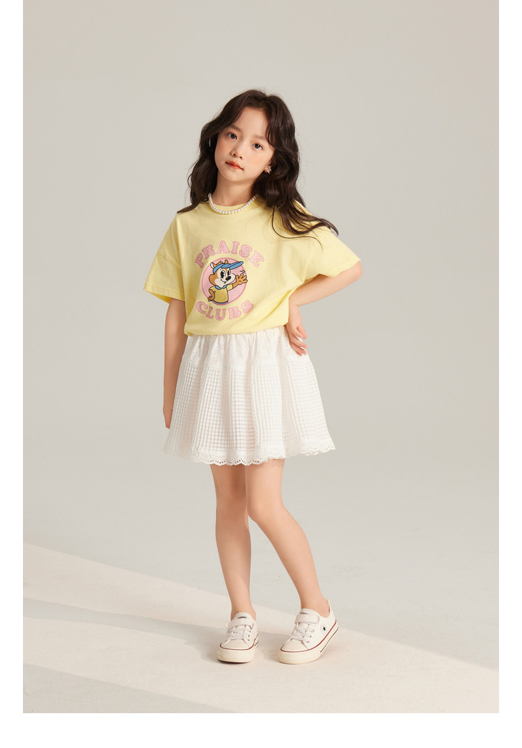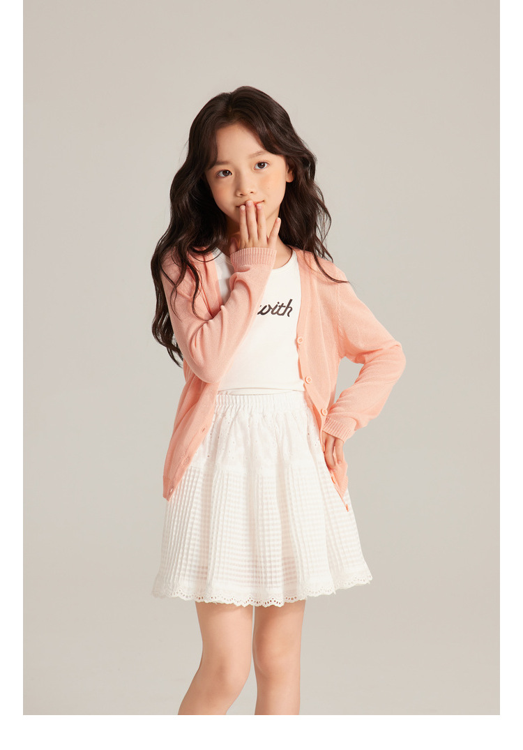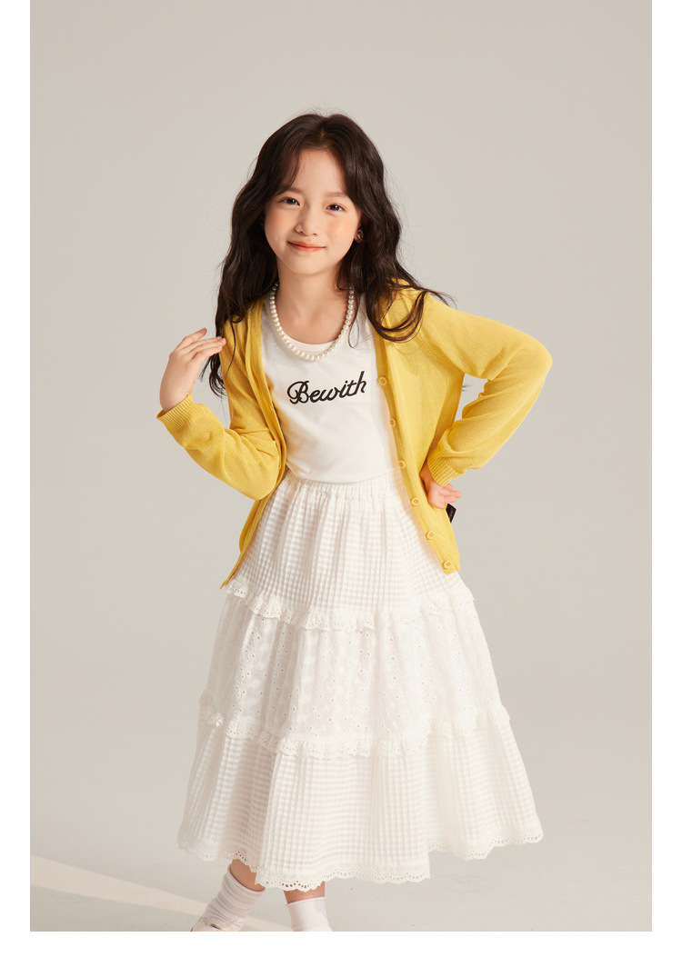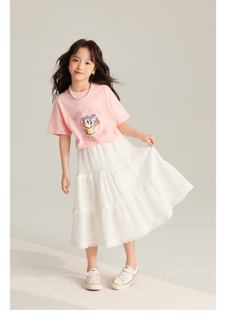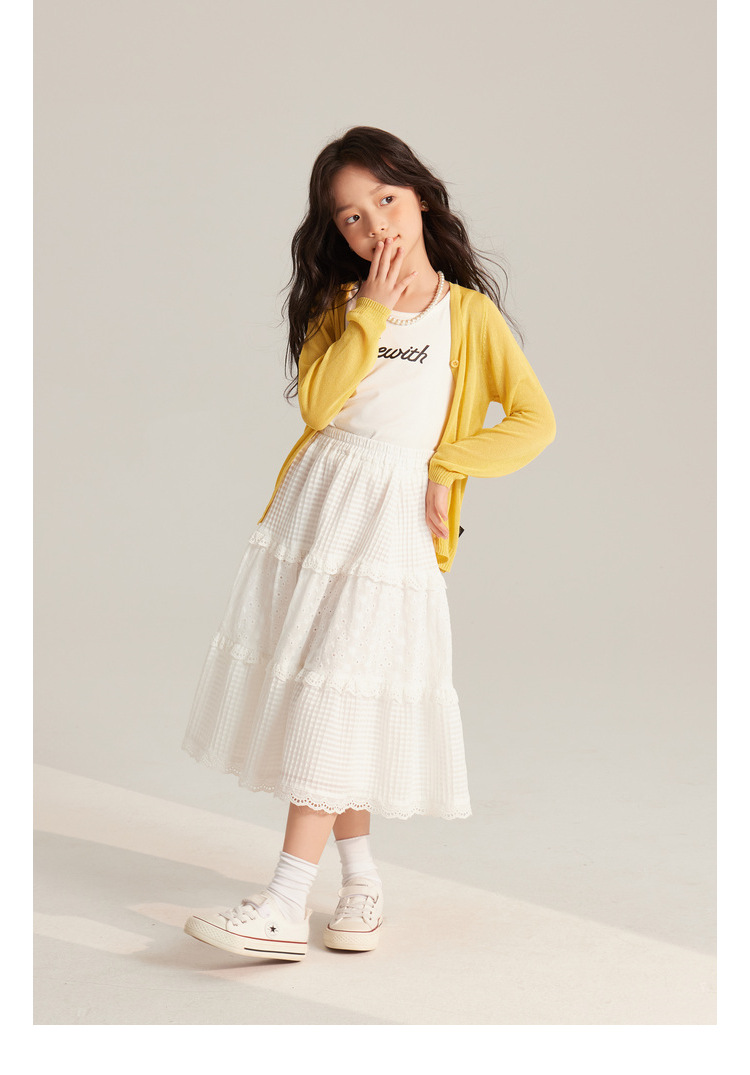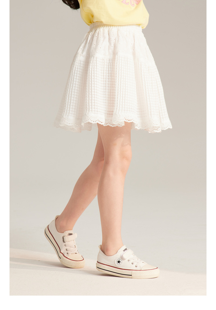 Amybaby Girl's Skirt 2024 새로운 어린이 여름 올 매치 할로우 자수 국경 레이스 원피스