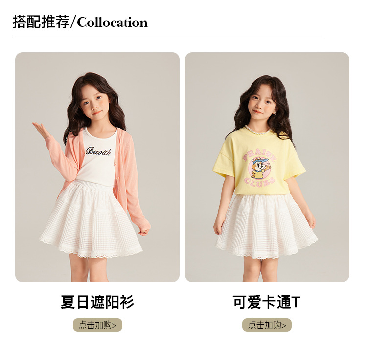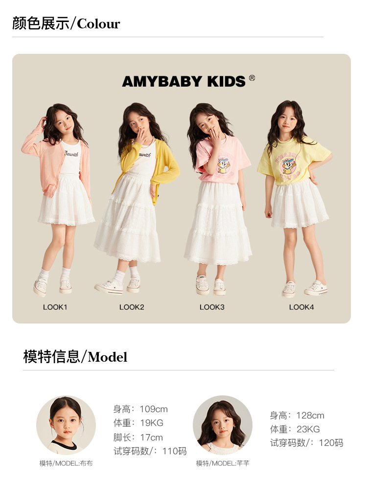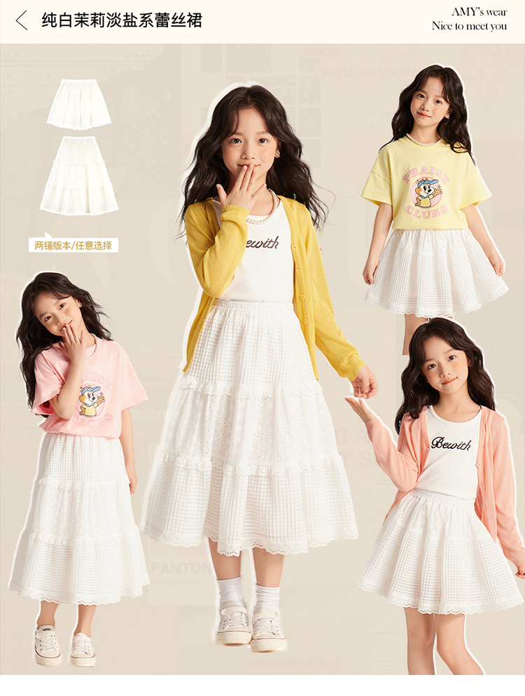 Amybaby Girl's Skirt 2024 새로운 어린이 여름 올 매치 할로우 자수 국경 레이스 원피스스토어 가기