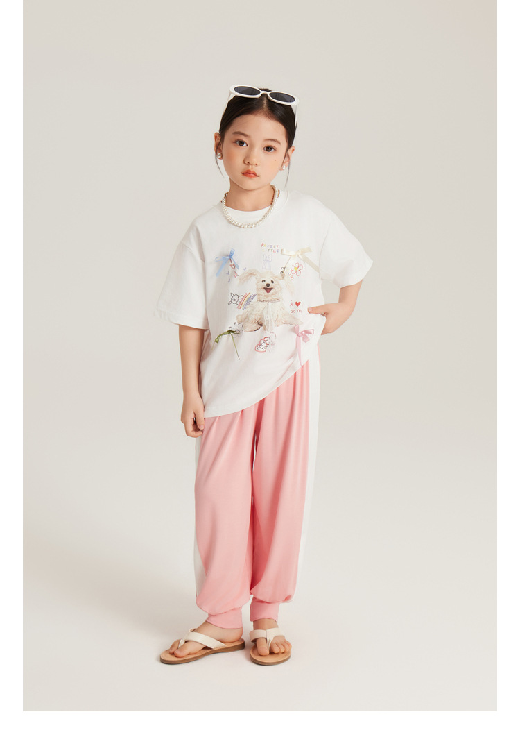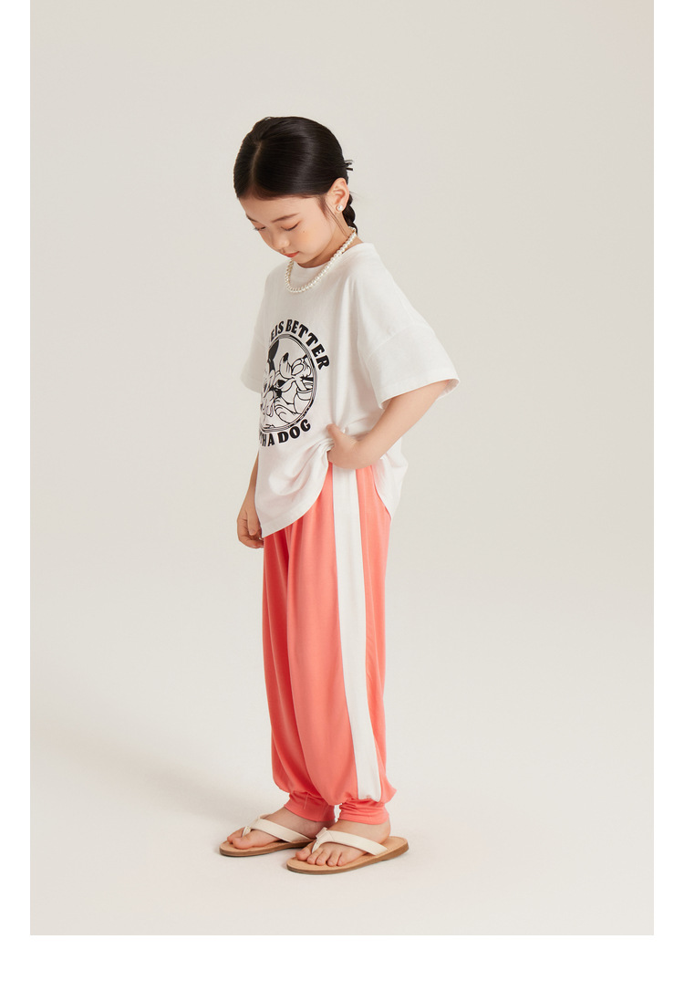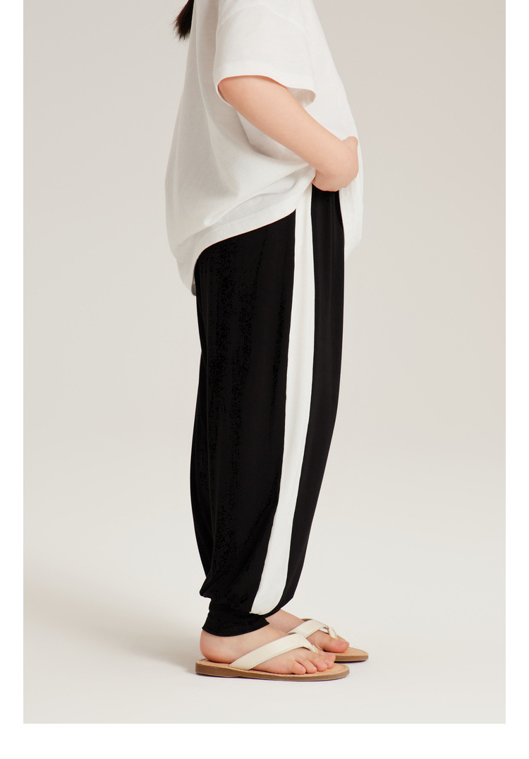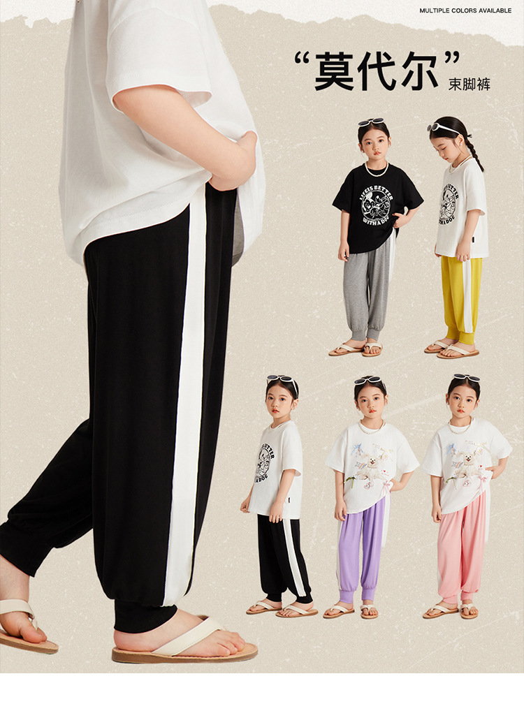 Amybaby Girls 스포츠 바지 2024 새로운 어린이 피부 친화적 인 느슨한 대조 컬러 올 매치 다리 발가락 캐주얼 바지스토어 가기