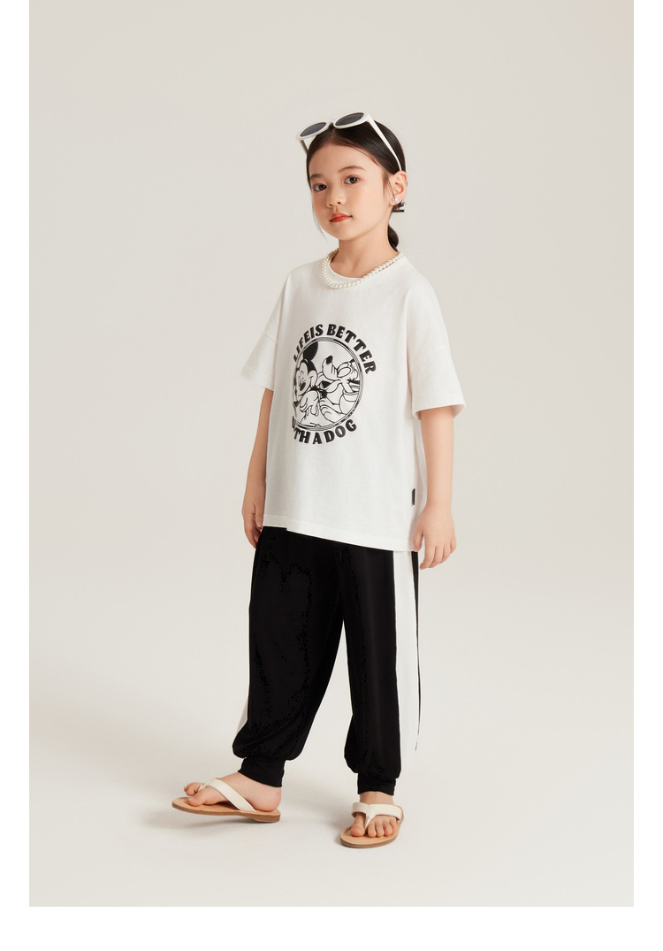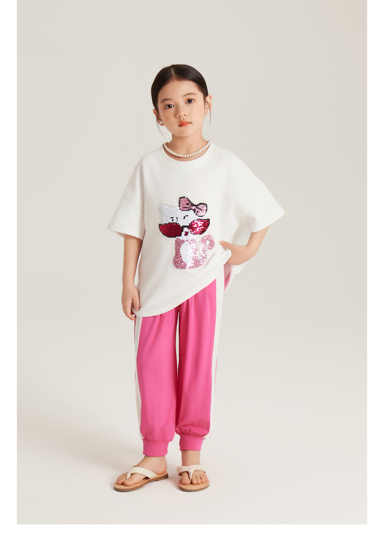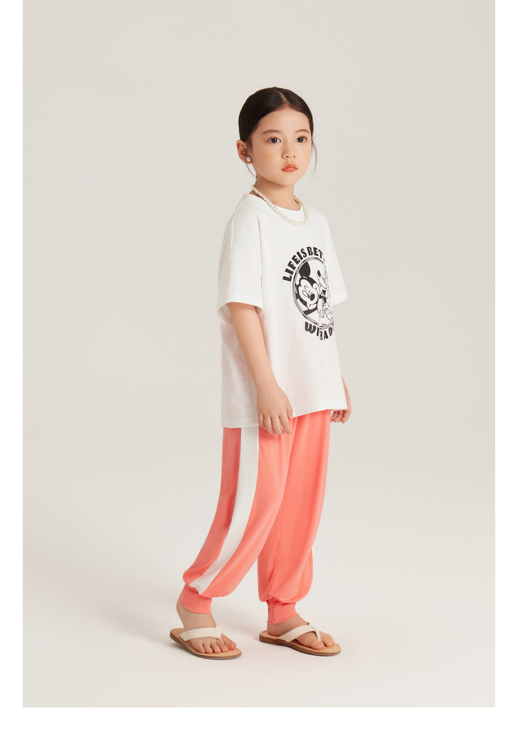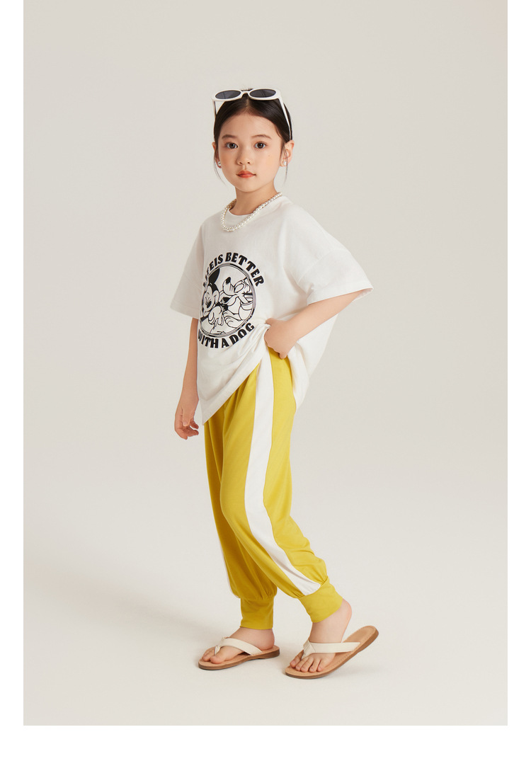 Amybaby Girls 스포츠 바지 2024 새로운 어린이 피부 친화적 인 느슨한 대조 컬러 올 매치 다리 발가락 캐주얼 바지스토어 가기