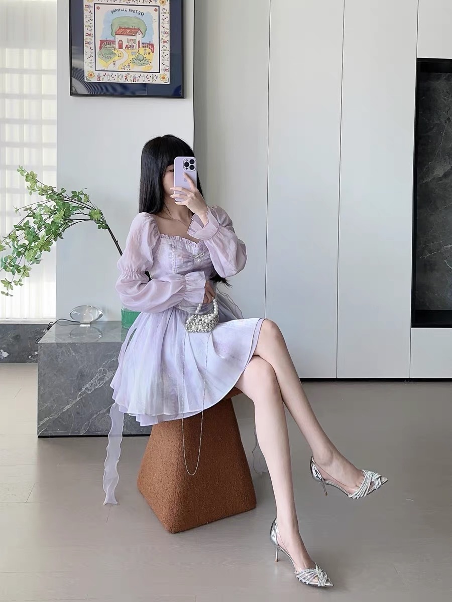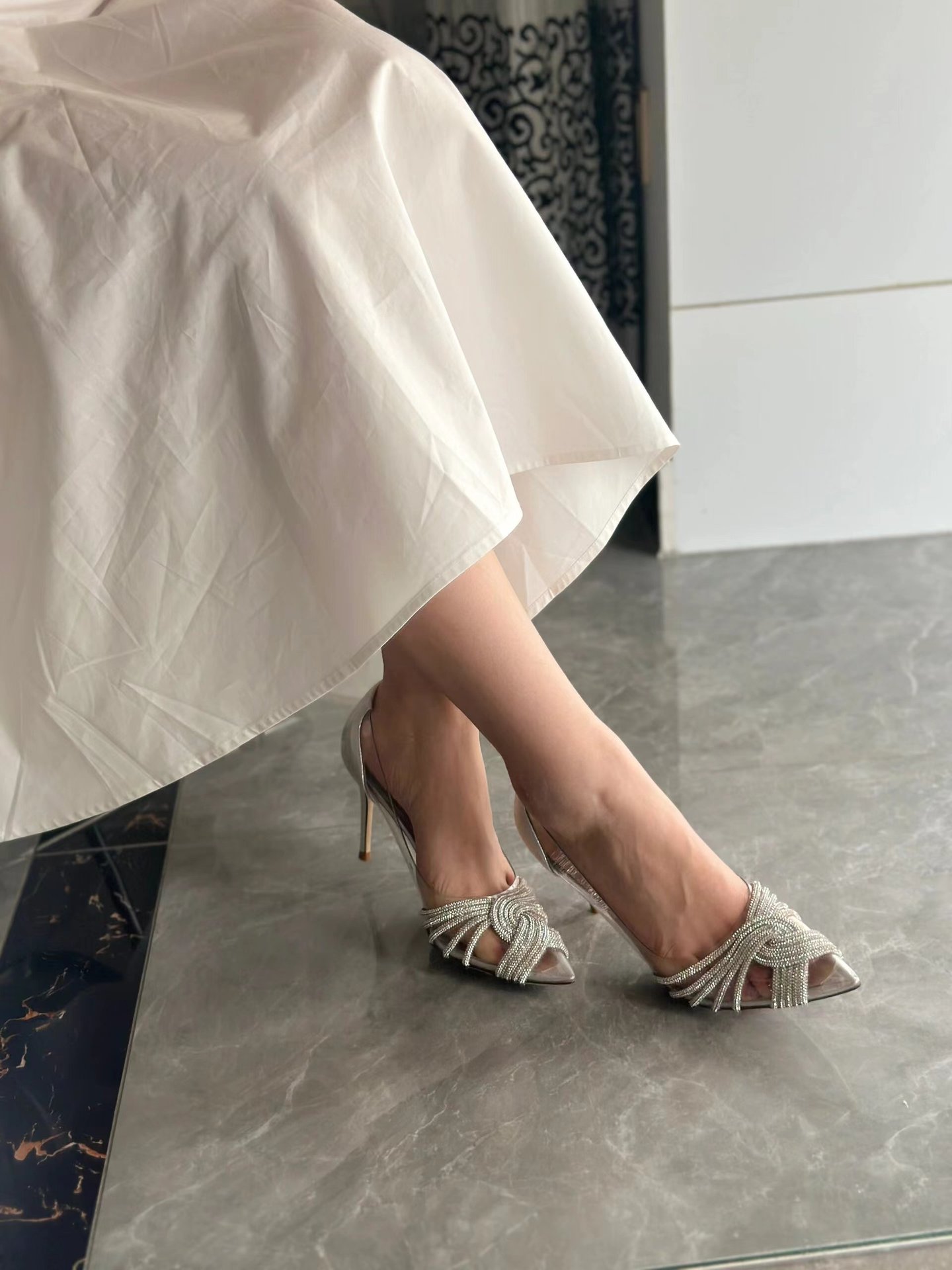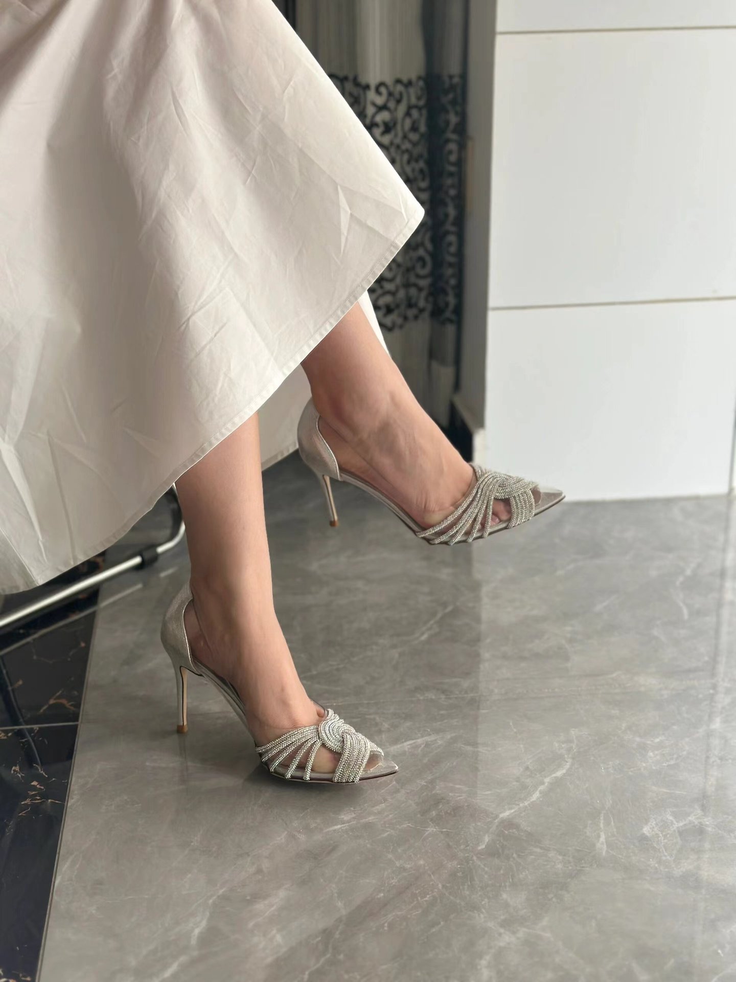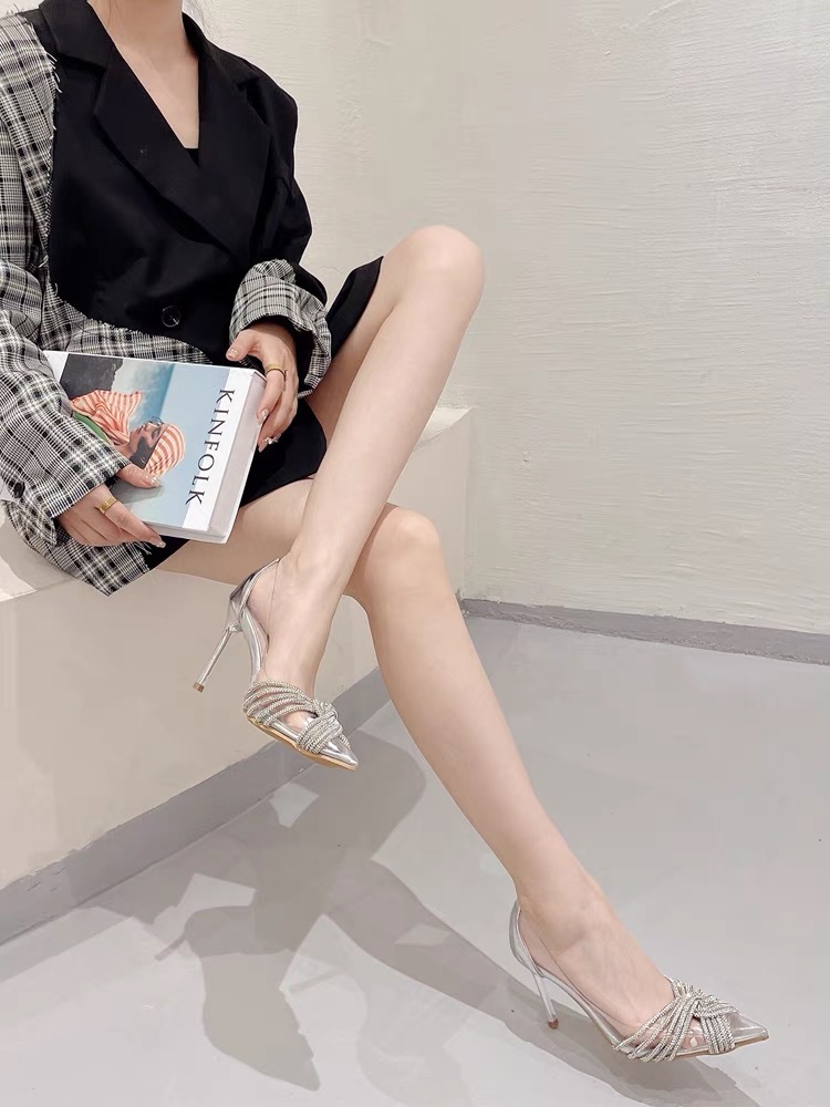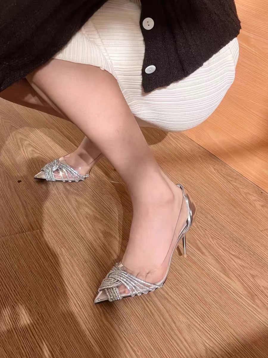 하이힐 신발 여성의 2024 최신 봄과 가을 스틸레토 뾰족한 라인 석 기질 사교계 요정 프랑스 투명 웨딩 신발 단층 신발스토어 가기
