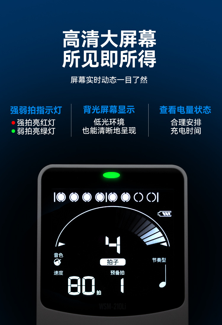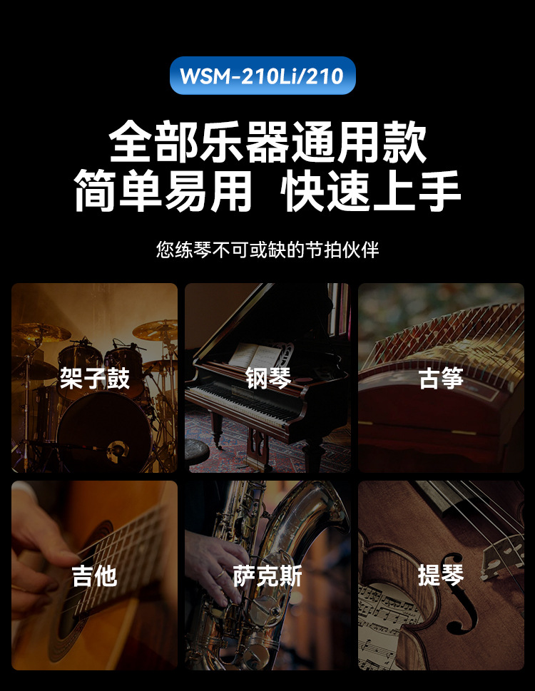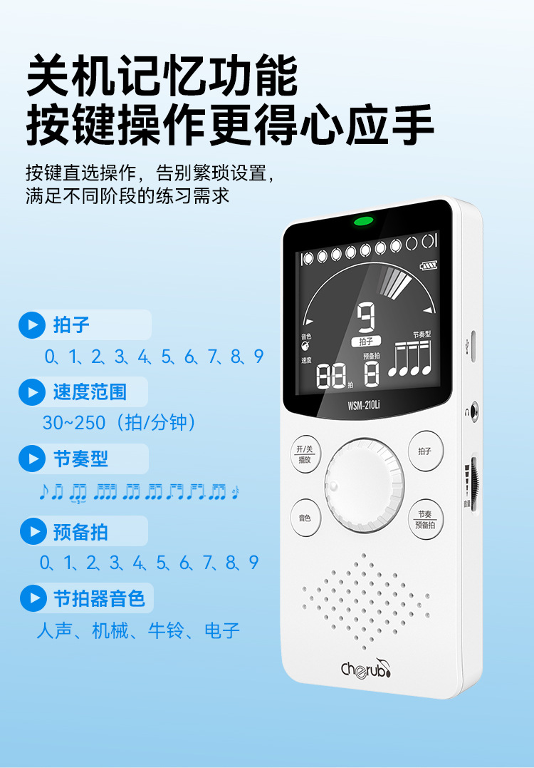 작은 천사 WSM-210 전자 메트로놈 보컬 번호 비트 충전식 휴대용 피아노 Guzheng 유니버설스토어 가기