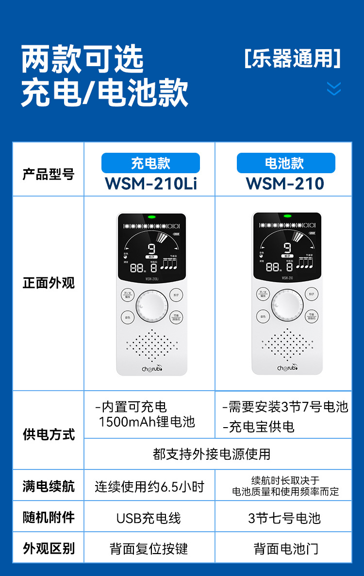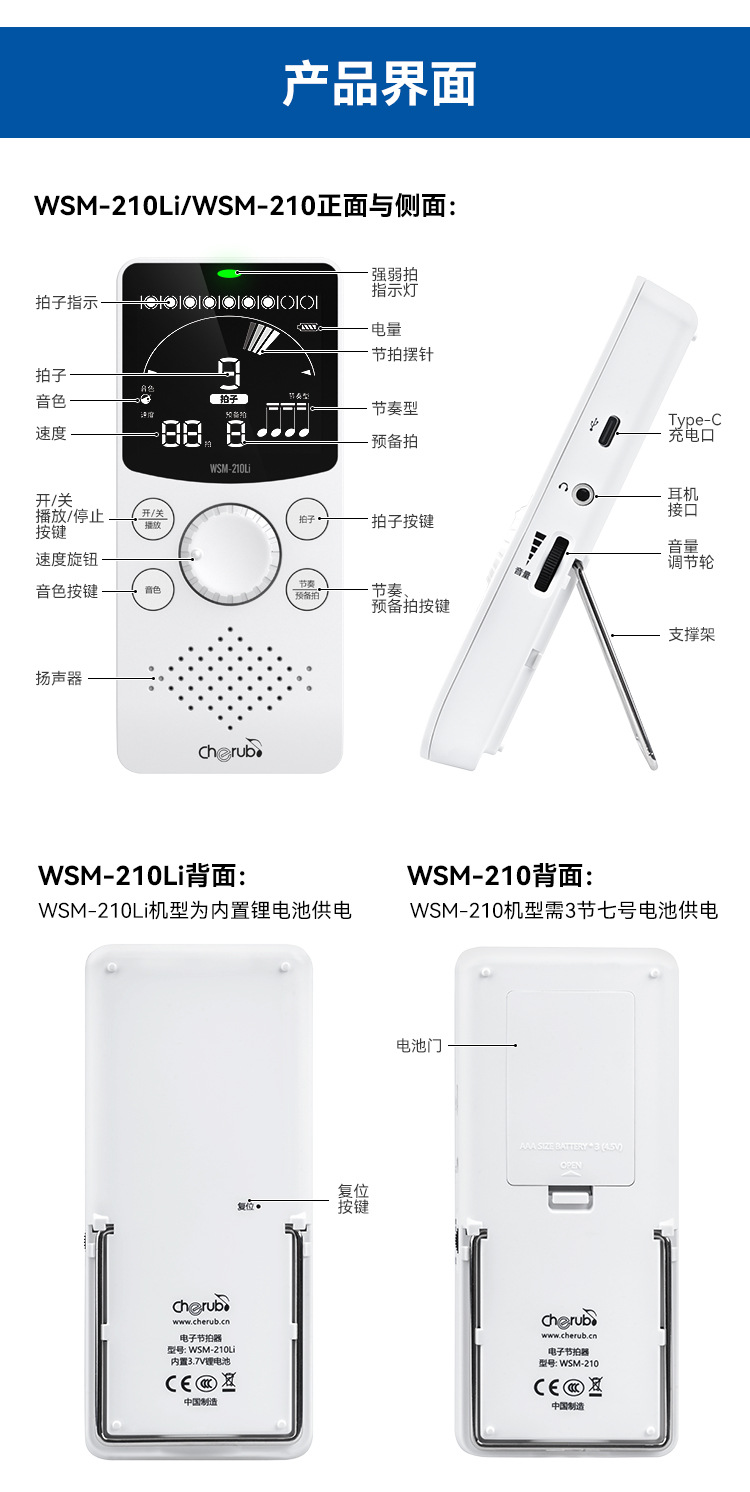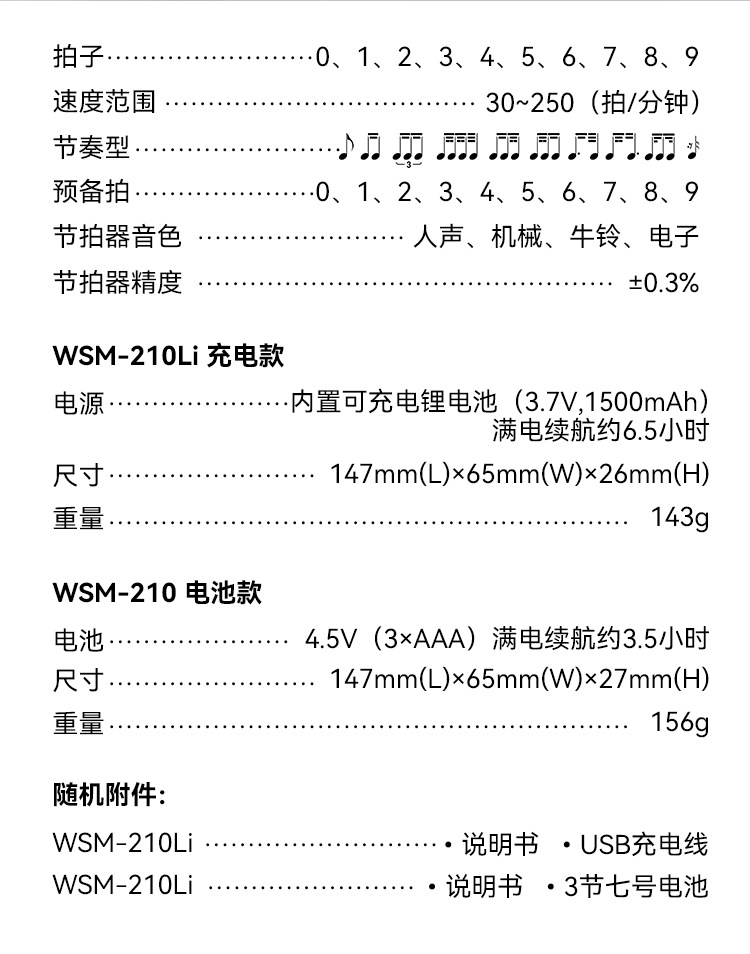 작은 천사 WSM-210 전자 메트로놈 보컬 번호 비트 충전식 휴대용 피아노 Guzheng 유니버설