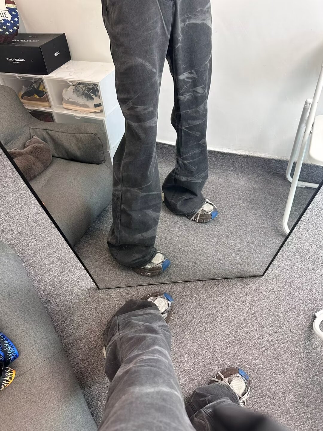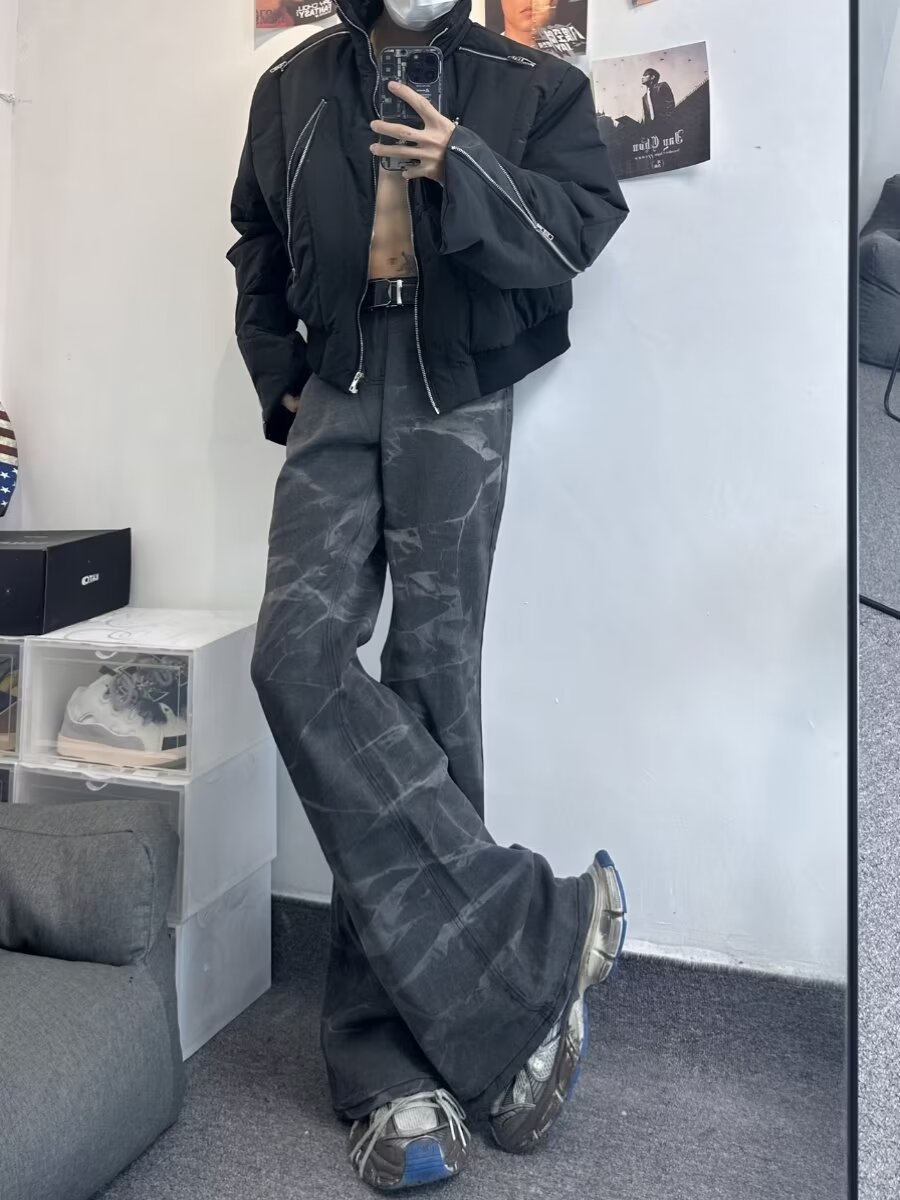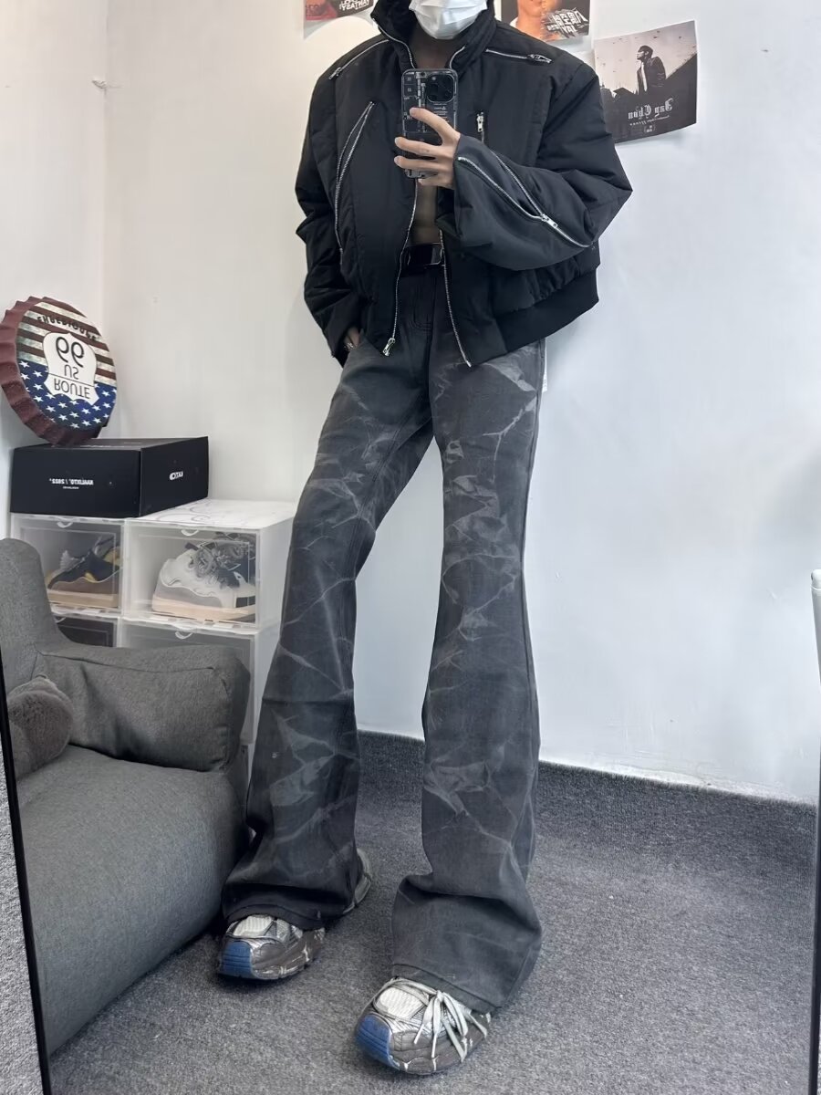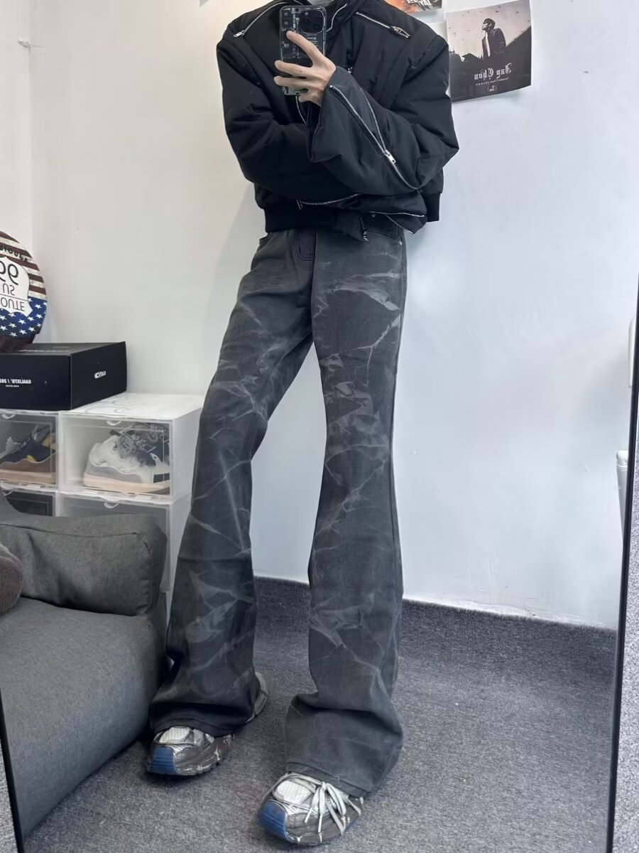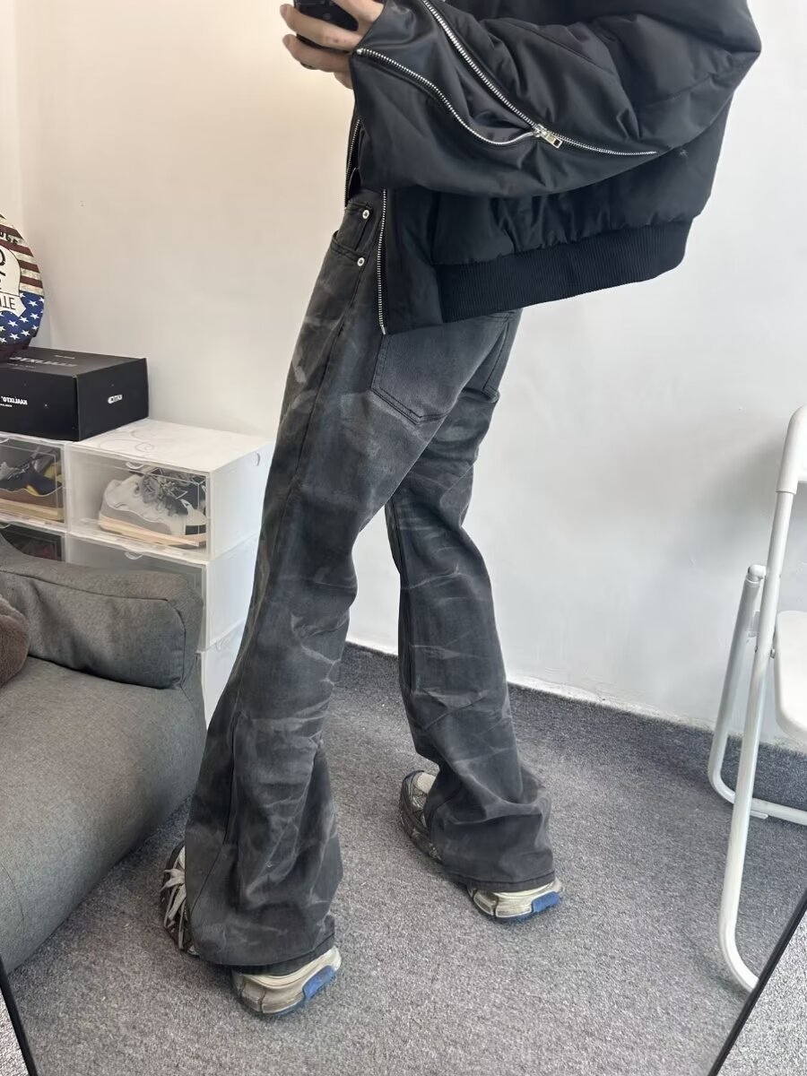 아메리칸 스타일 거리 씻은 오래된 약한 청바지 남자 봄과 가을 스트레이트 루즈 올 매치 하이 스트리트 바이브 데님 바지스토어 가기