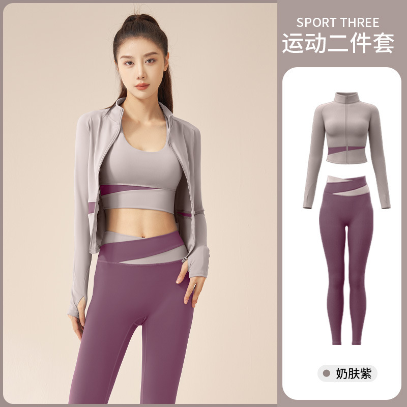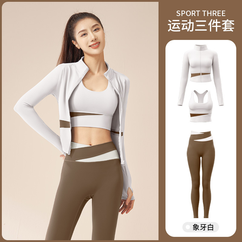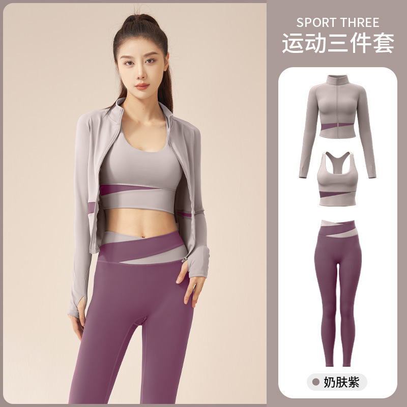 복숭아 색상 매칭 3 피스 인터넷-유명한 러닝 충격 방지 피트니스 스포츠 세트 세련된 슬림 핏 슬리밍 스포츠웨어스토어 가기
