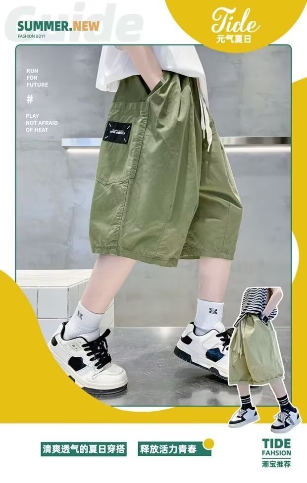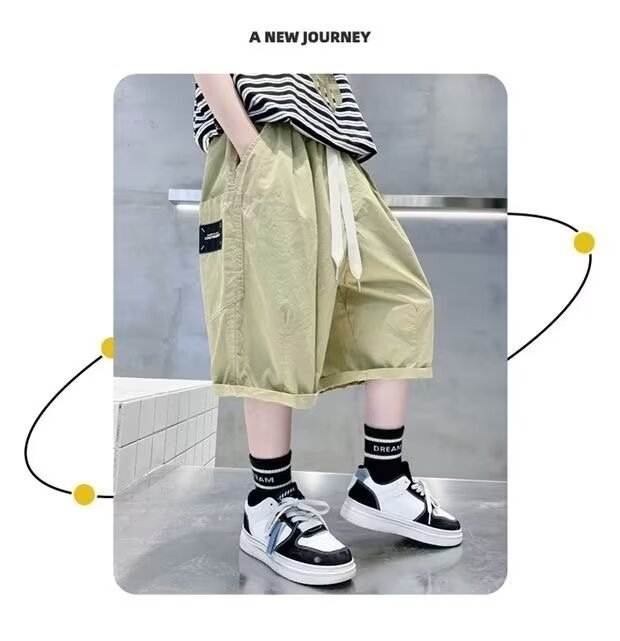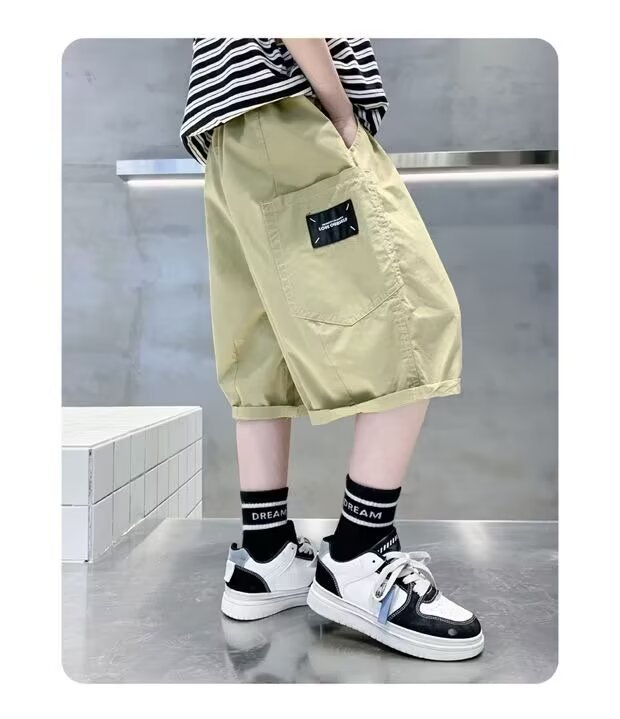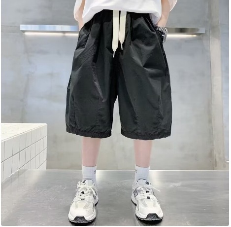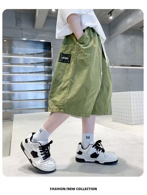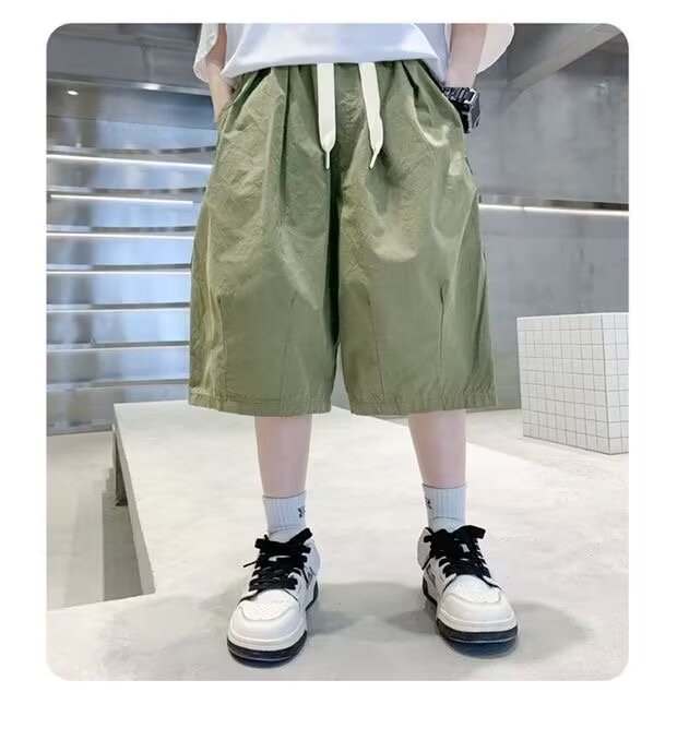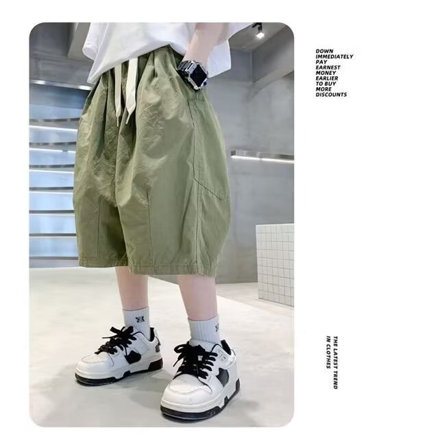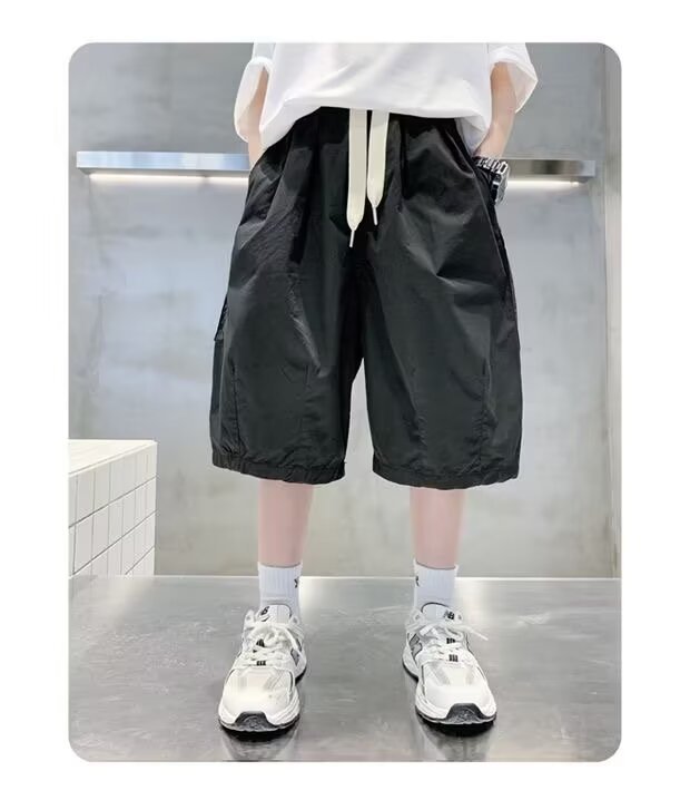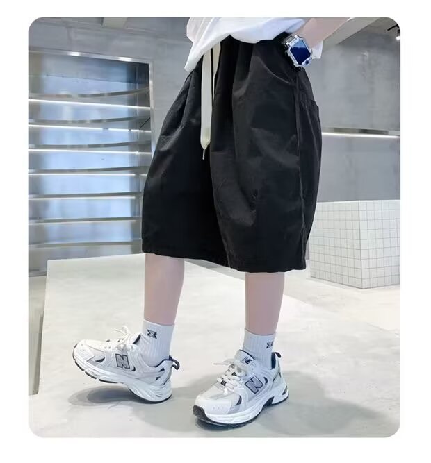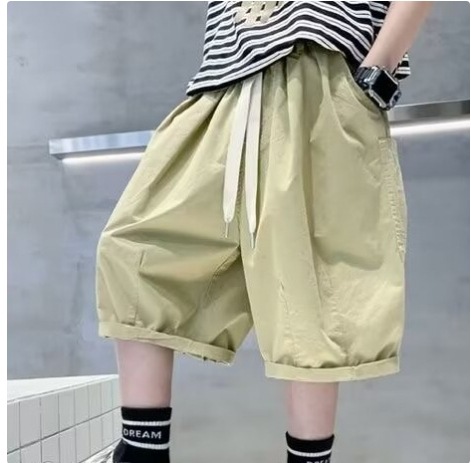 일본 카키 툴링 반바지 남학생의 여름 느슨한 5 점 바지 소년의 트렌디 한 브랜드 와이드 레그 캐주얼 미드 길이 바지스토어 가기