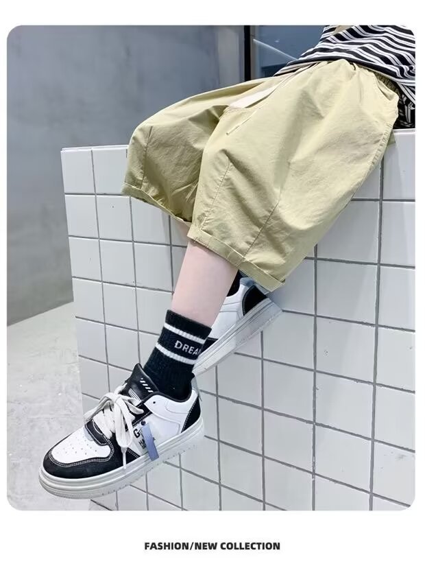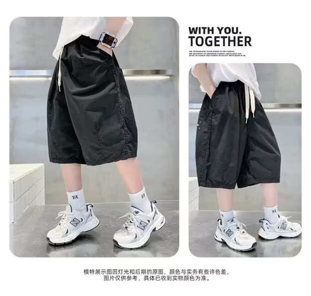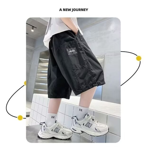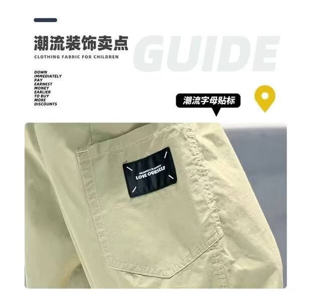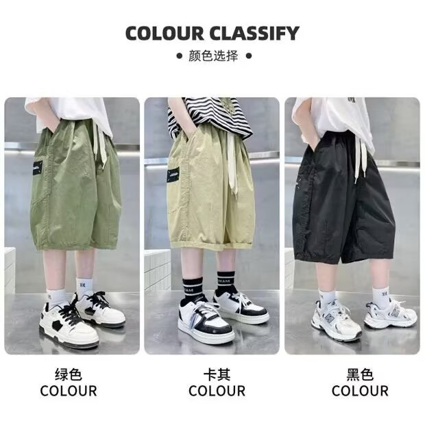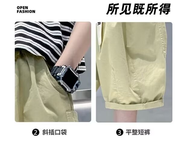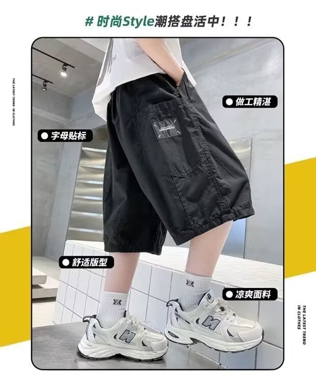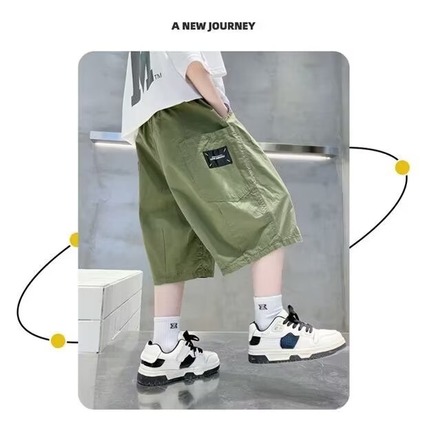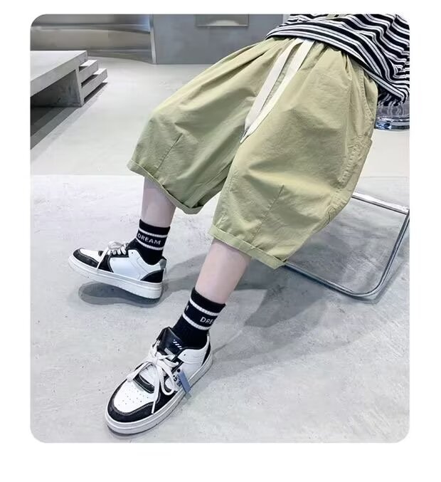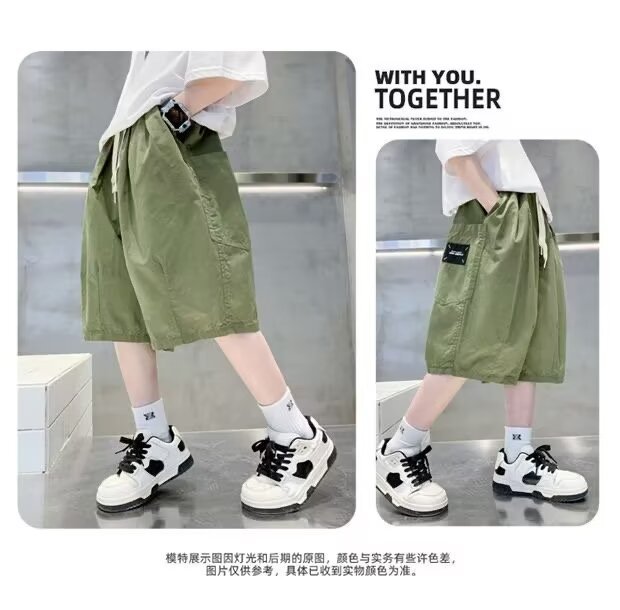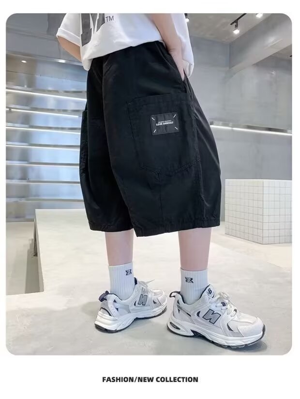 일본 카키 툴링 반바지 남학생의 여름 느슨한 5 점 바지 소년의 트렌디 한 브랜드 와이드 레그 캐주얼 미드 길이 바지스토어 가기