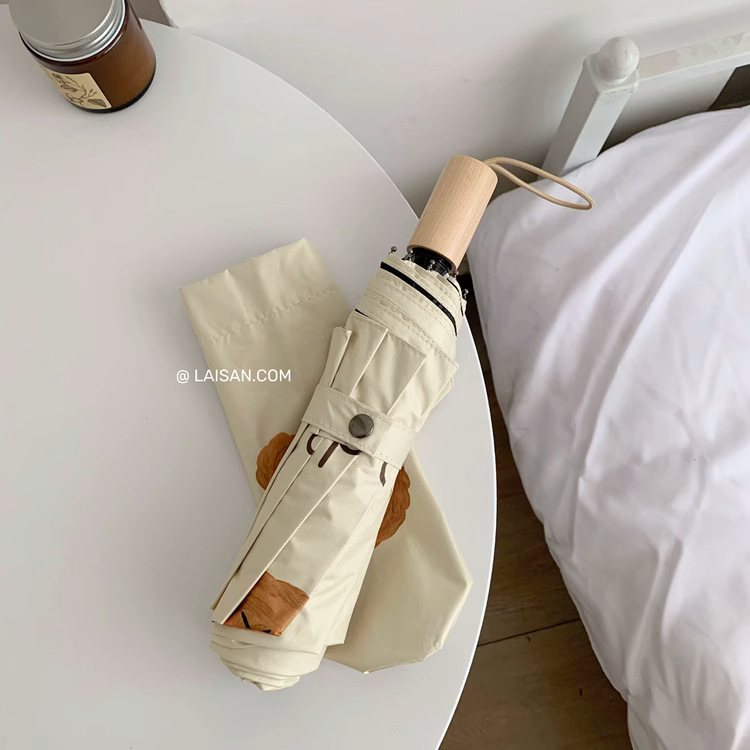 여성의 높은 가치 귀여운 맑고 비가 오는 태양 우산 자외선 차단제 자외선 차단 검은 색 고무 접이식 차양 우산