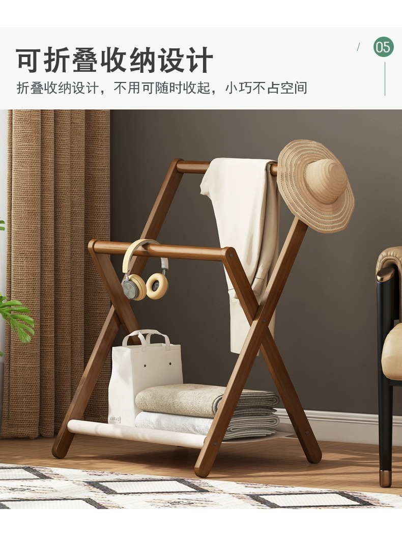 침대 옆 코트 랙 바닥 서 접는 작은 단단한 나무 침실 밤에 잠을자는 임시 옷과 바지 저장 노르딕 옷 옷걸이스토어 가기