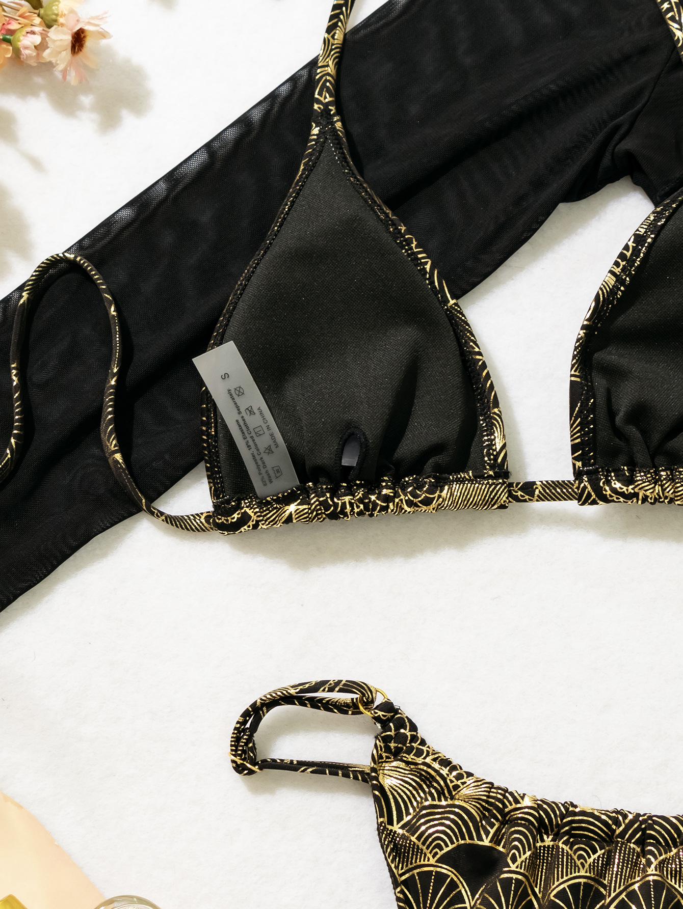 2024 새로운 대외 무역 비키니 여성 유럽과 미국의 섹시한 비키니 삼각형 가방 팬 잎 브론징 3 피스 수영복스토어 가기