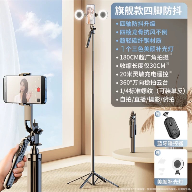 폭발성 4 축 스마트 짐벌 블루투스 셀카 스틱 라이브 안티 쉐이크 뷰티 길어진 플로어 스탠딩 휴대 전화 브래킷 삼각대스토어 가기