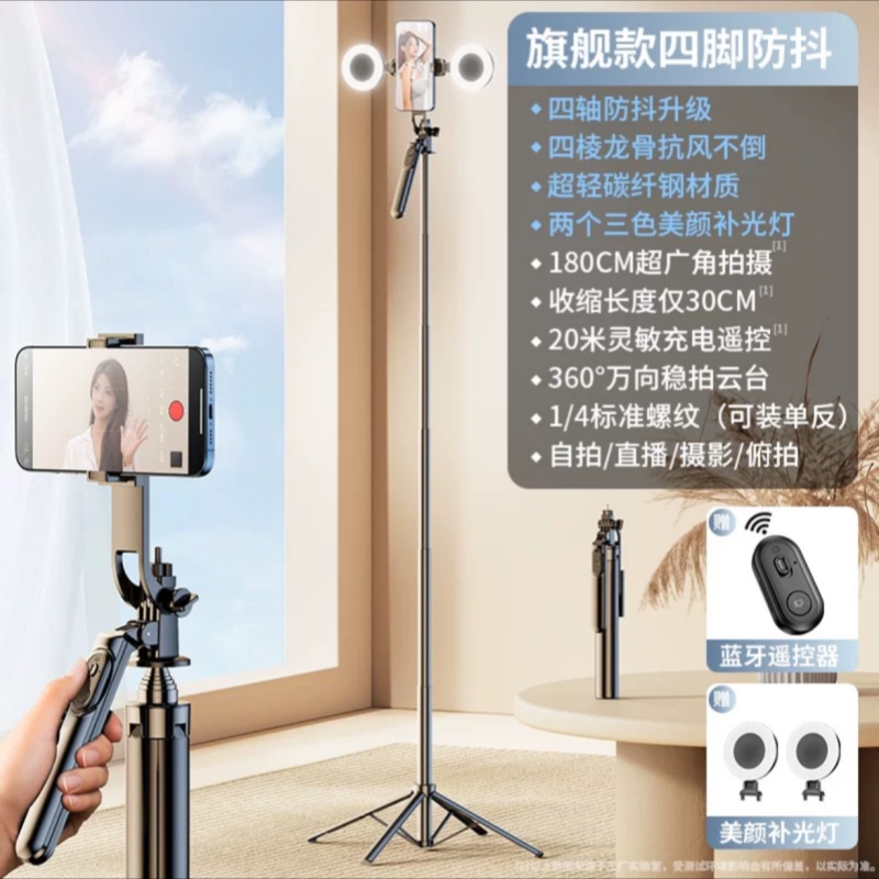 폭발성 4 축 스마트 짐벌 블루투스 셀카 스틱 라이브 안티 쉐이크 뷰티 길어진 플로어 스탠딩 휴대 전화 브래킷 삼각대