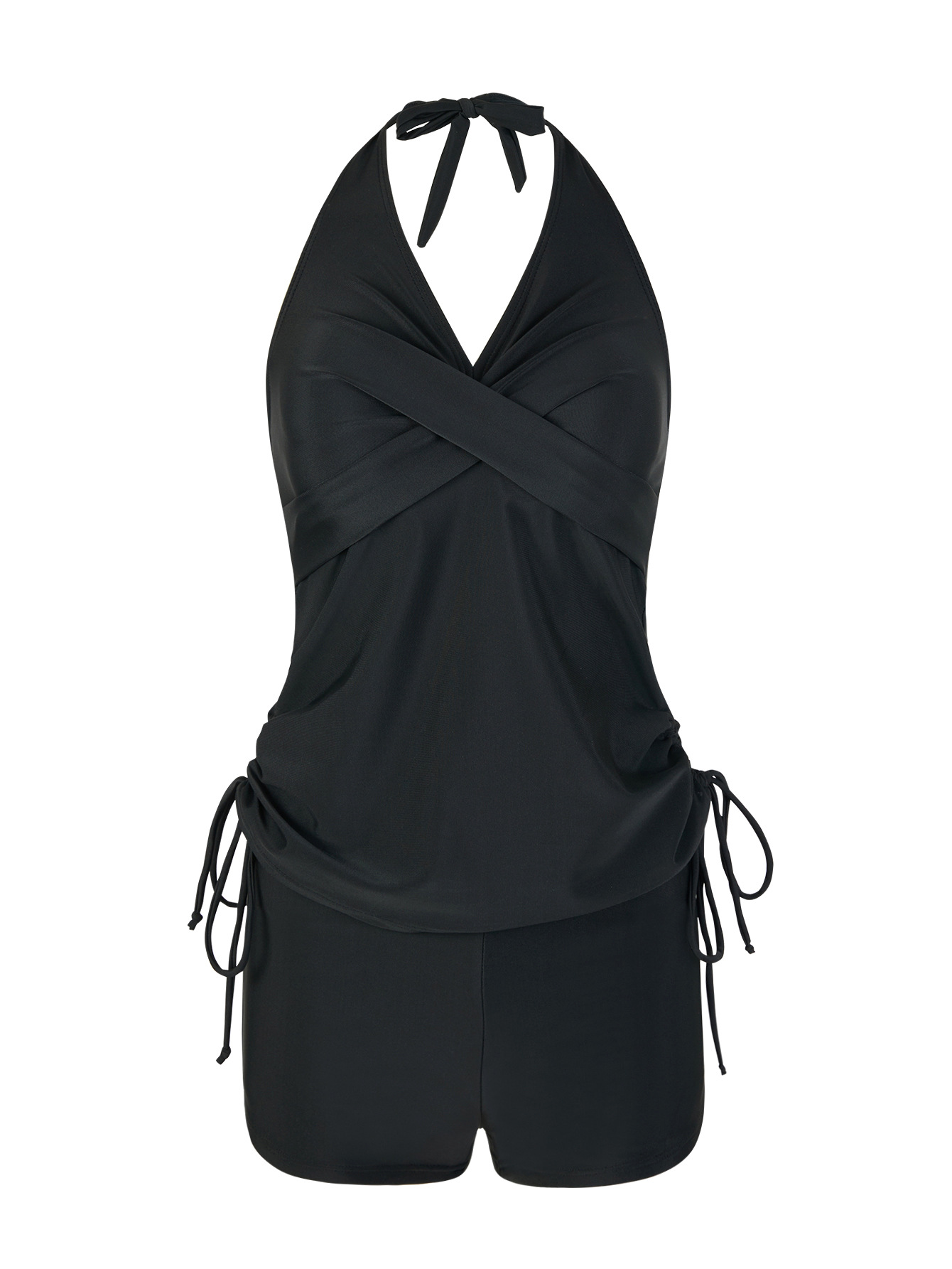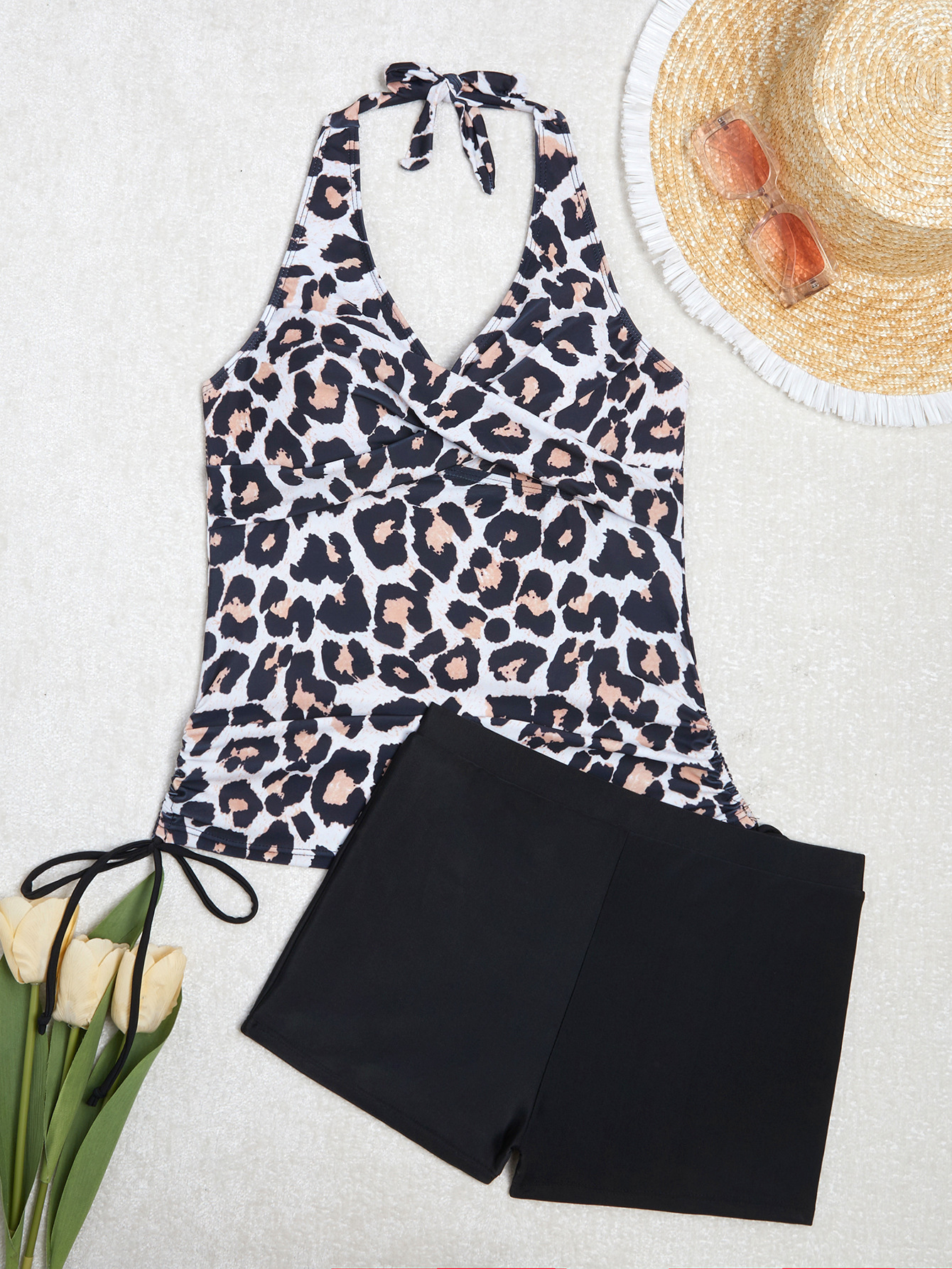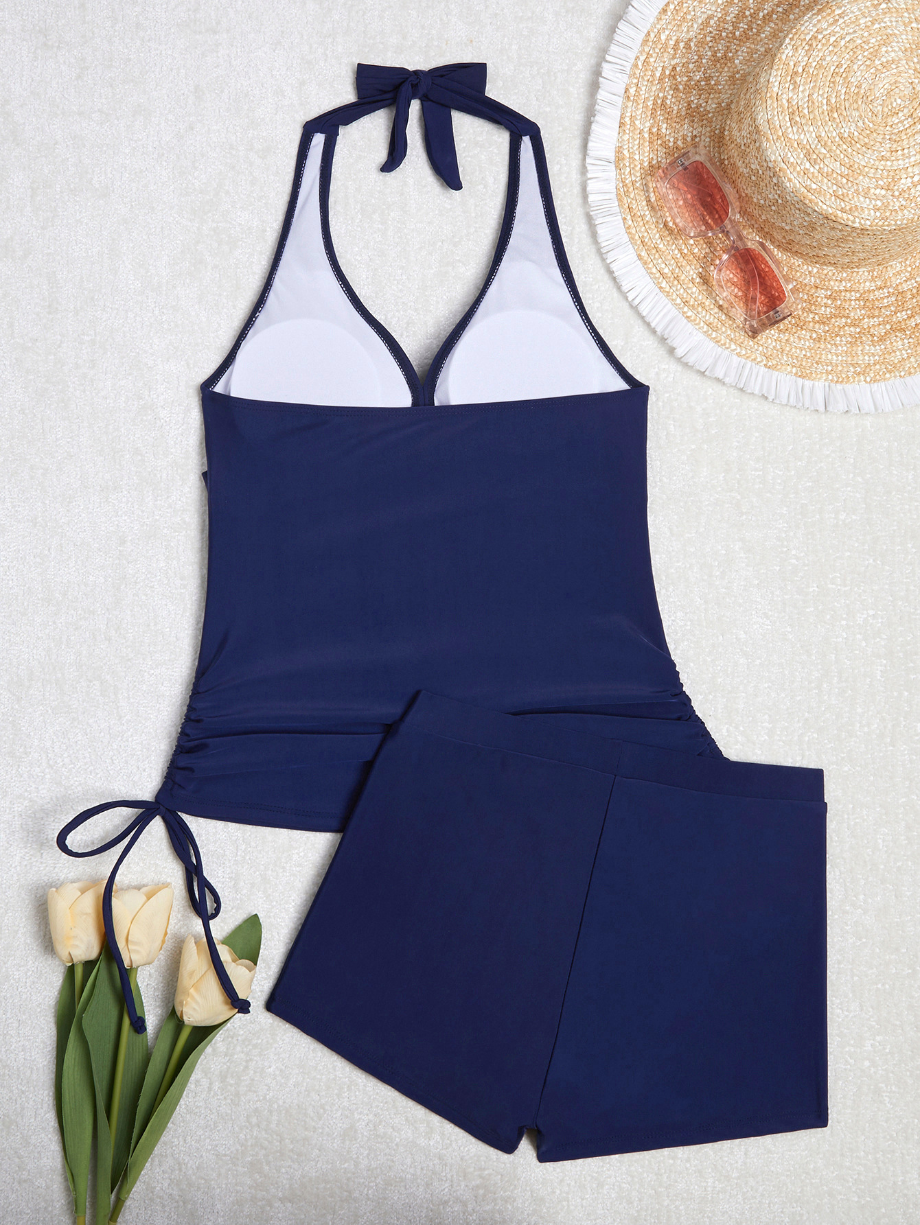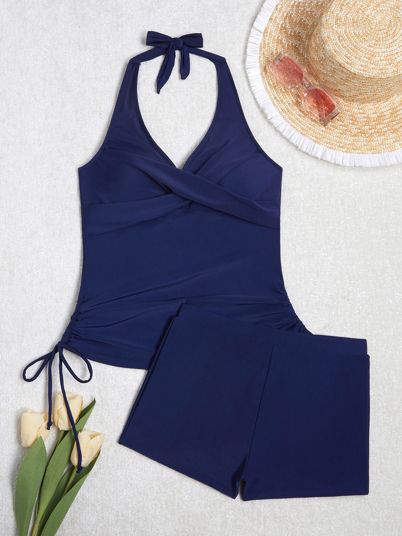 2024 여성 패션 하이 엔드 투피스 스플릿 수영복 슬링 드로우 스트링 수영복, 복서 반바지 탄키니 수영