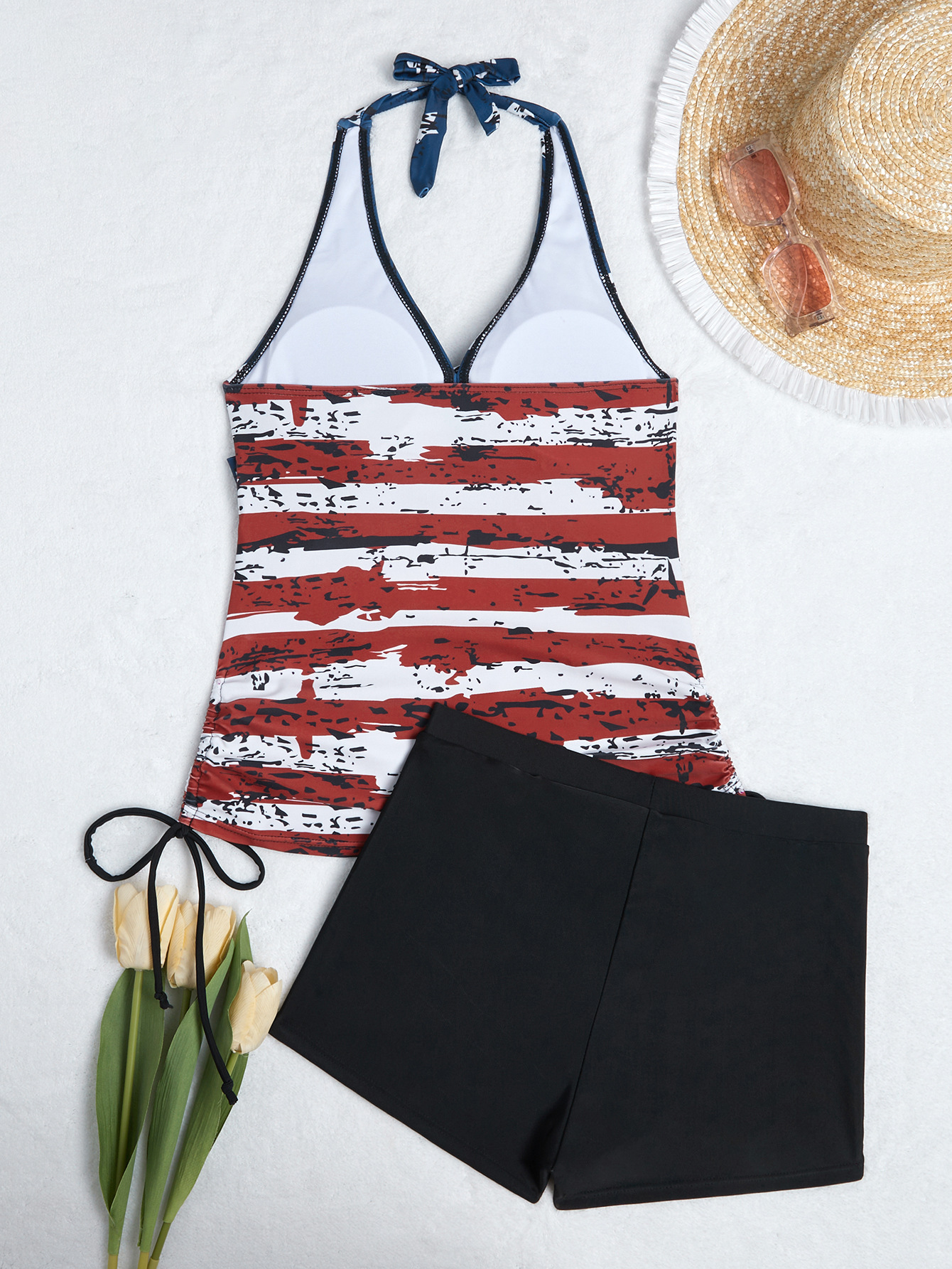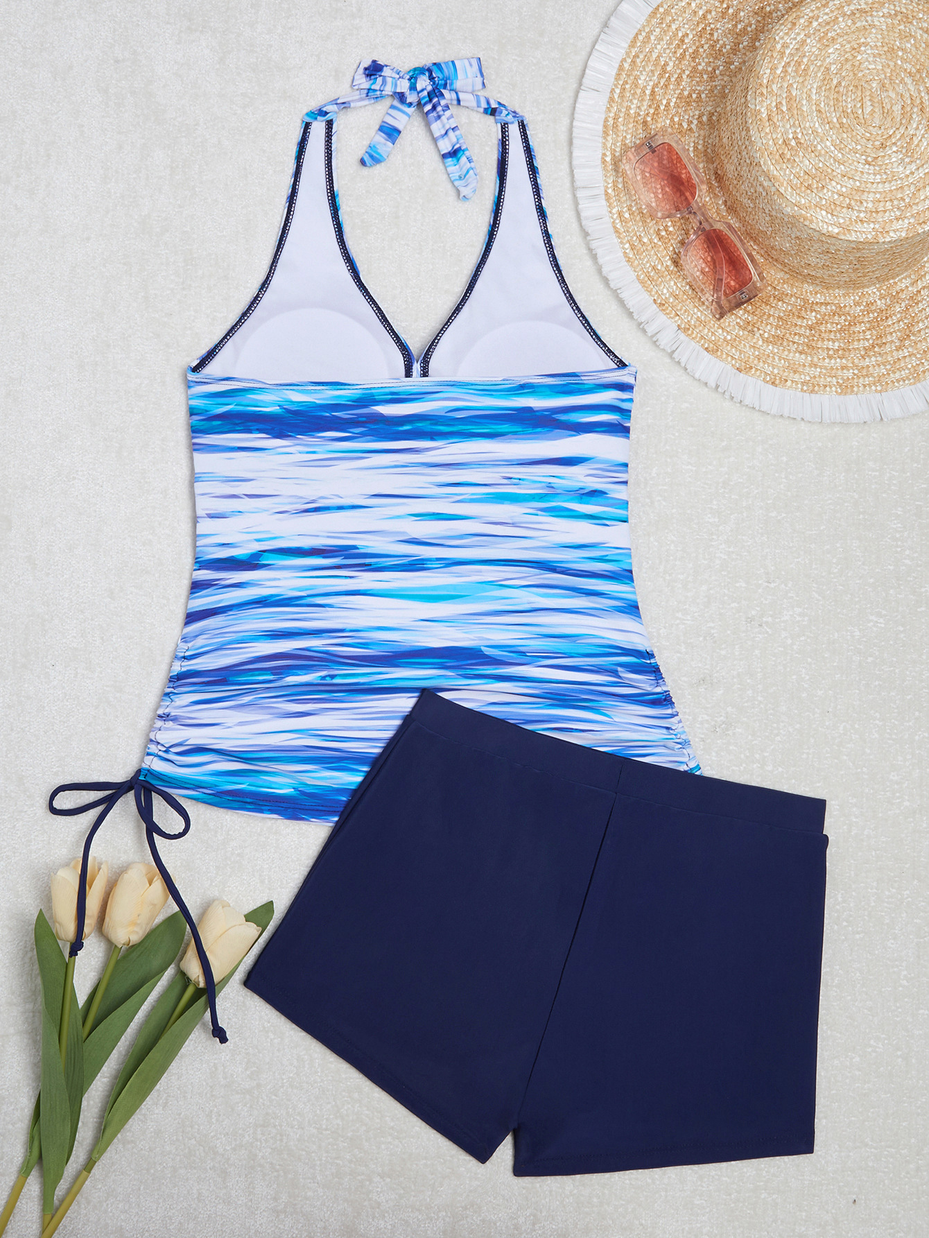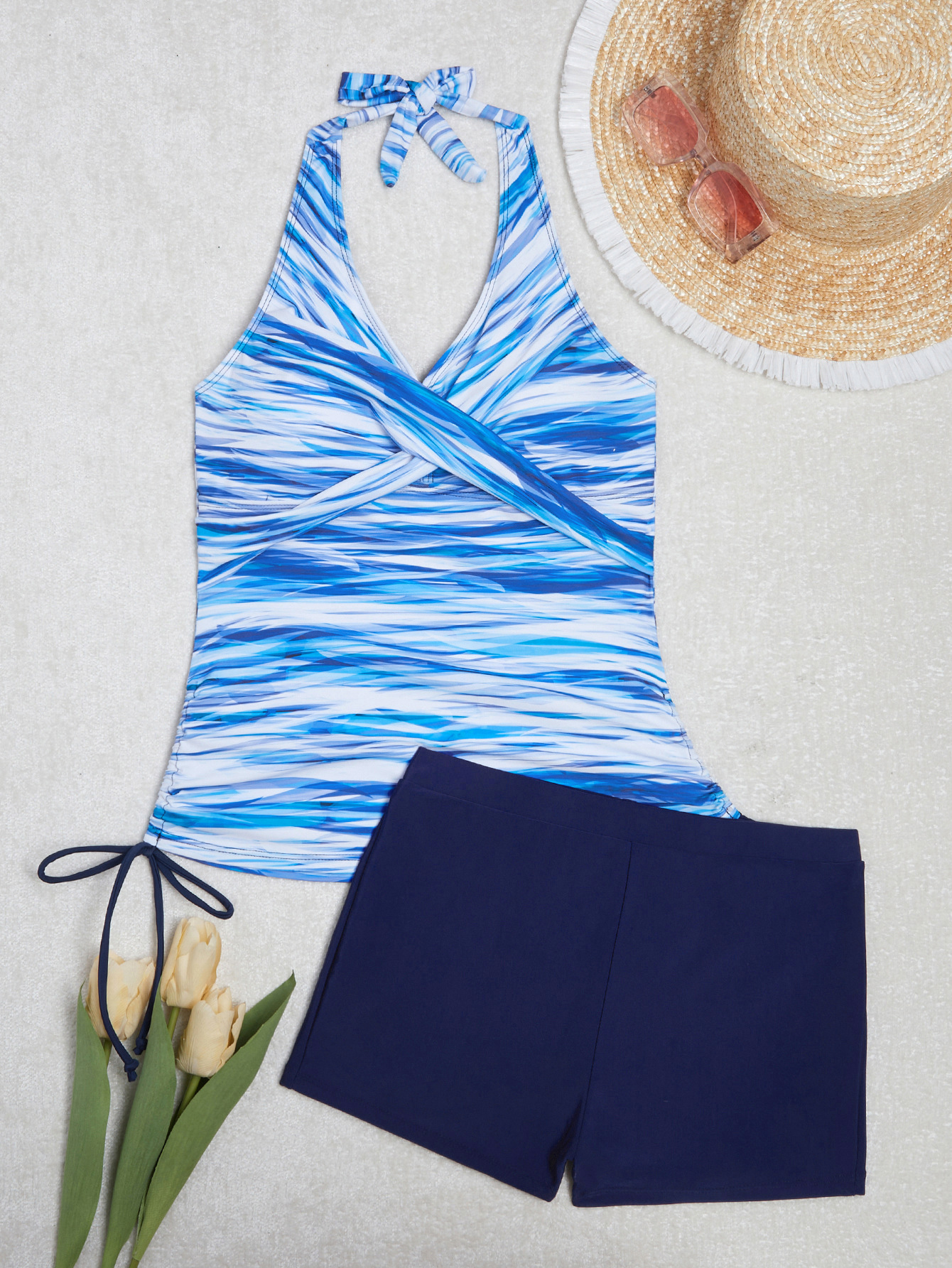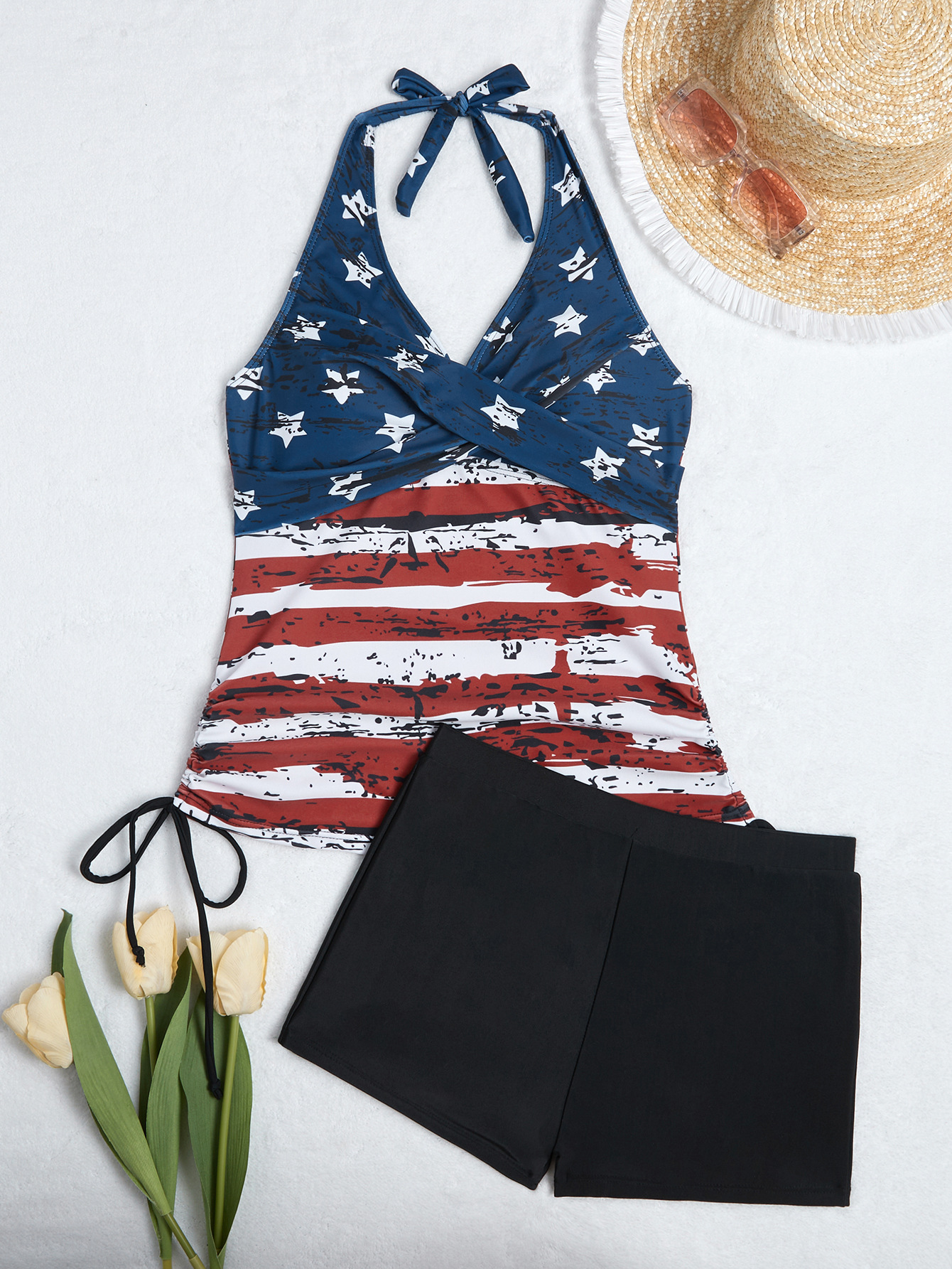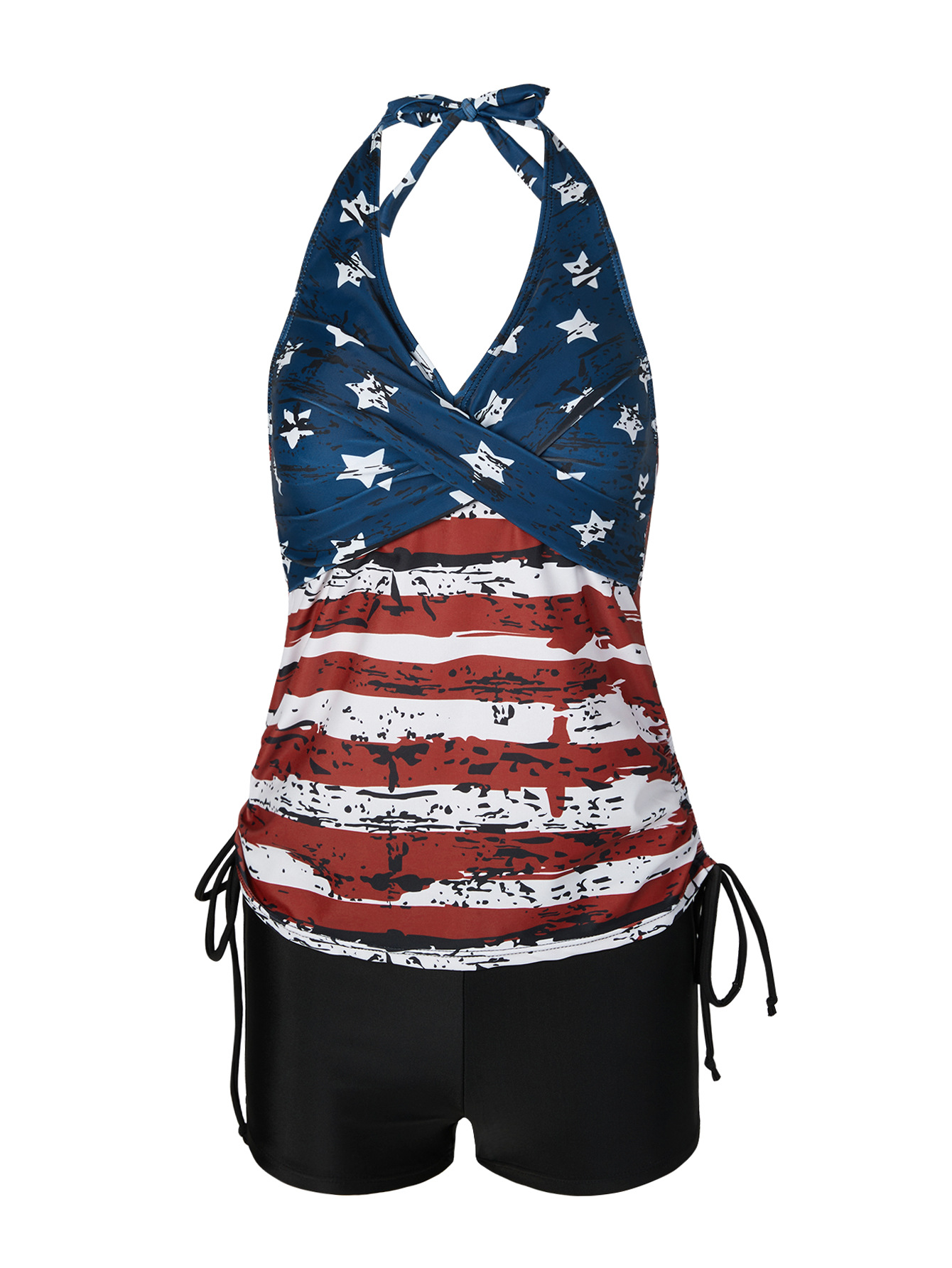 2024 여성 패션 하이 엔드 투피스 스플릿 수영복 슬링 드로우 스트링 수영복, 복서 반바지 탄키니 수영