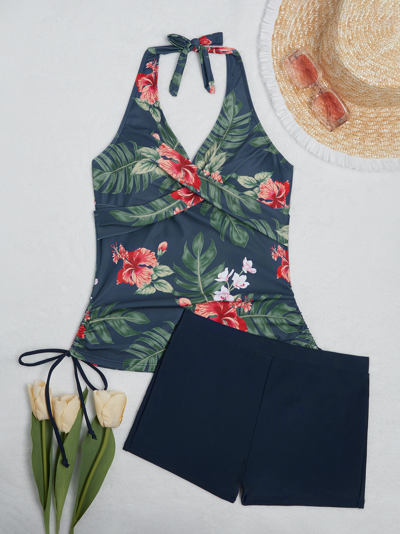 2024 여성 패션 하이 엔드 투피스 스플릿 수영복 슬링 드로우 스트링 수영복, 복서 반바지 탄키니 수영스토어 가기