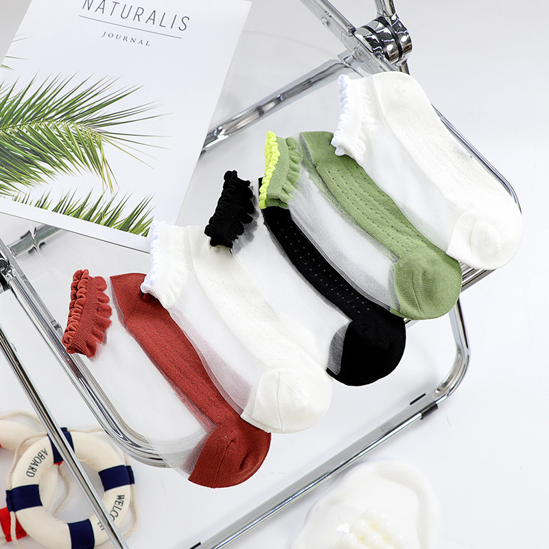 크리스탈 실크 양말 짧은 튜브 여성의 여름 얇은 면 바닥 유리 실크 로우 컷 빈 투명 양말 Ins 트렌디 한 여름