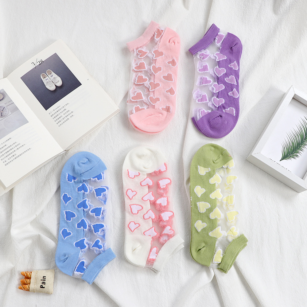 크리스탈 실크 양말 짧은 튜브 여성의 여름 얇은 면 바닥 유리 실크 로우 컷 빈 투명 양말 Ins 트렌디 한 여름스토어 가기