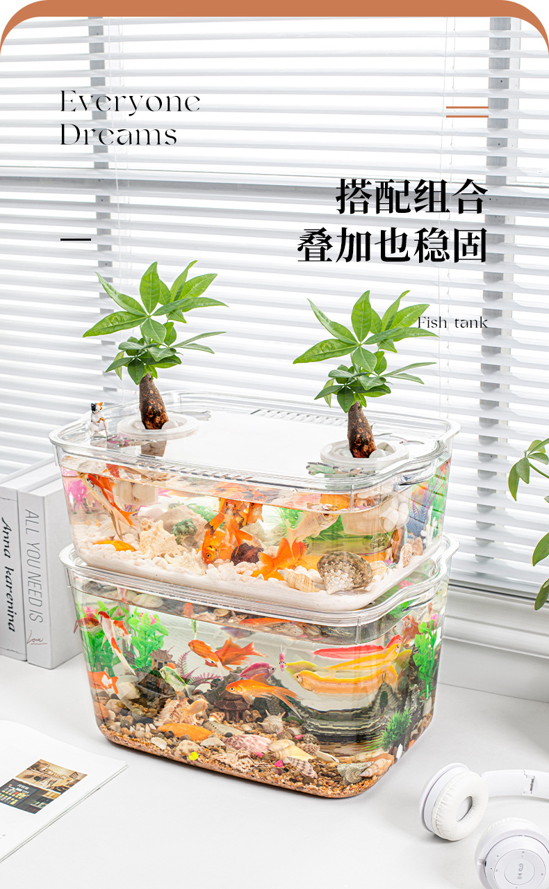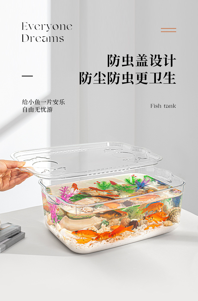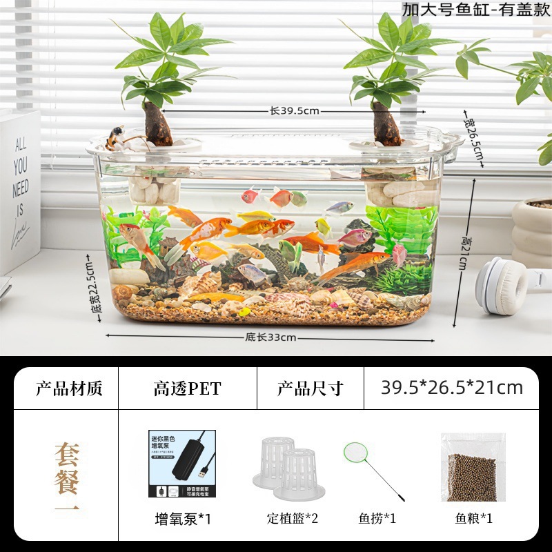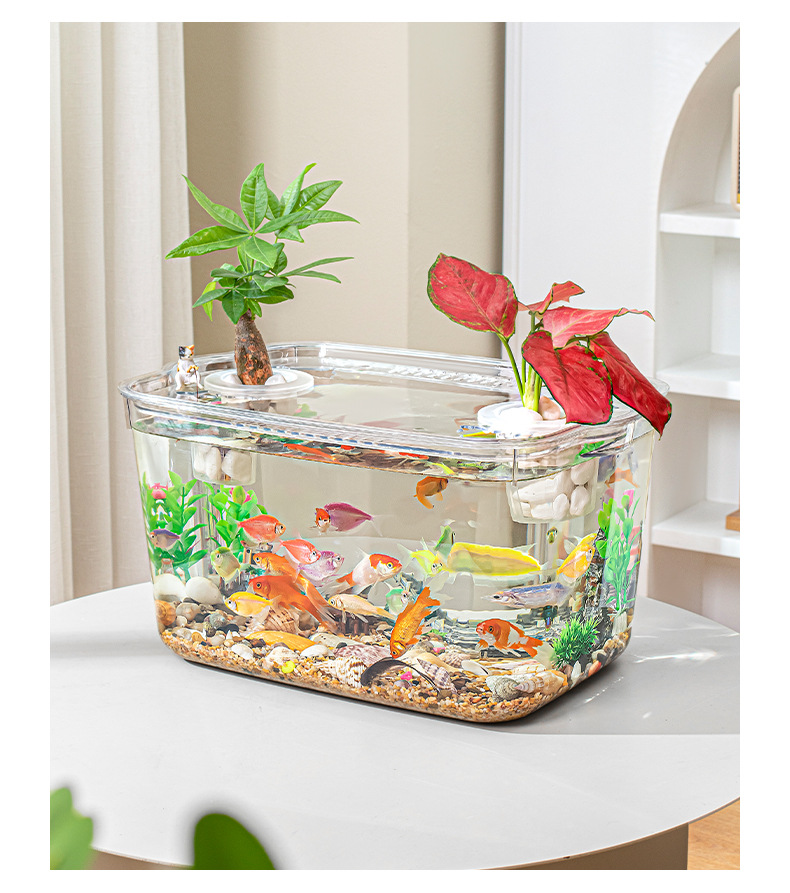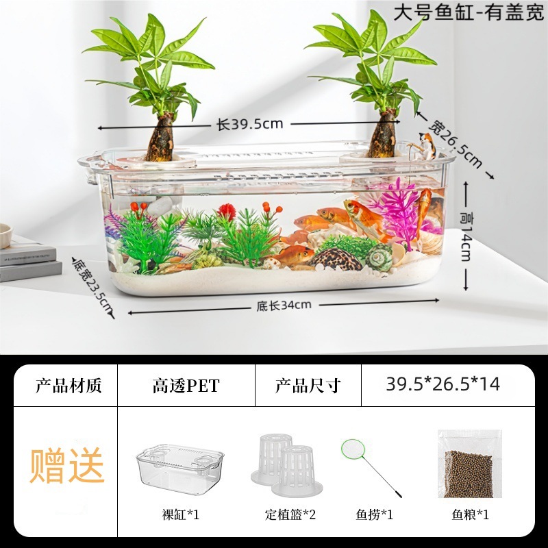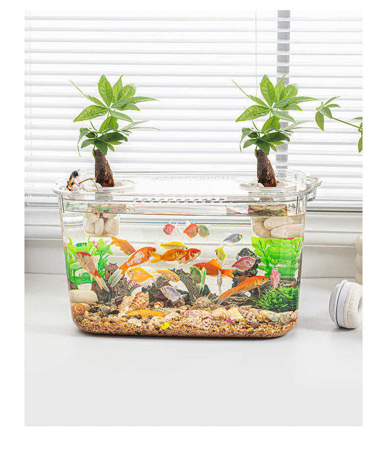 뚜껑이있는 새로운 플라스틱 어항 HD 투명 수족관 금붕어 탱크 데스크탑 거북이 번식 상자 생태 물 식물 탱크