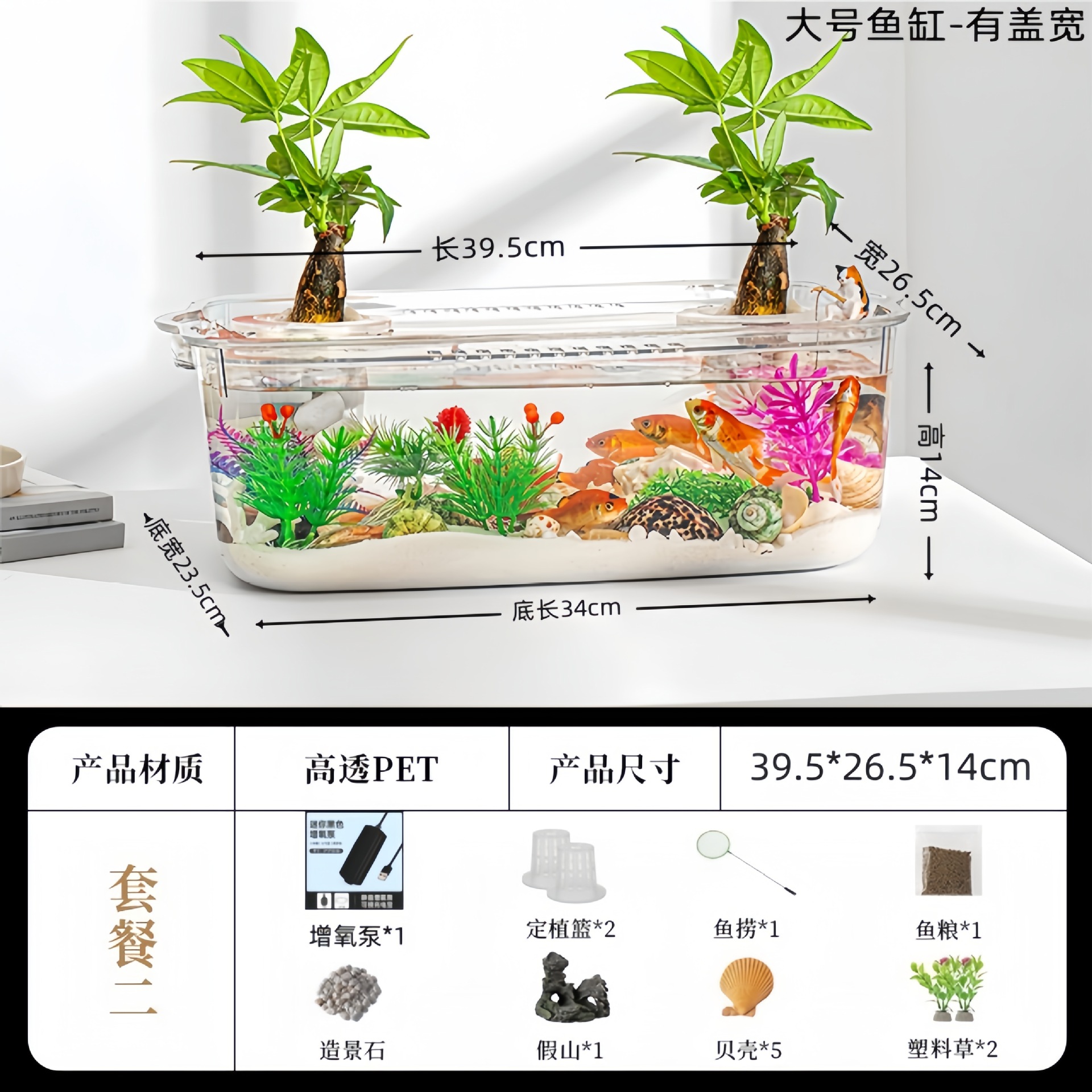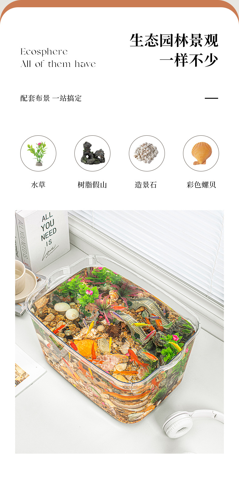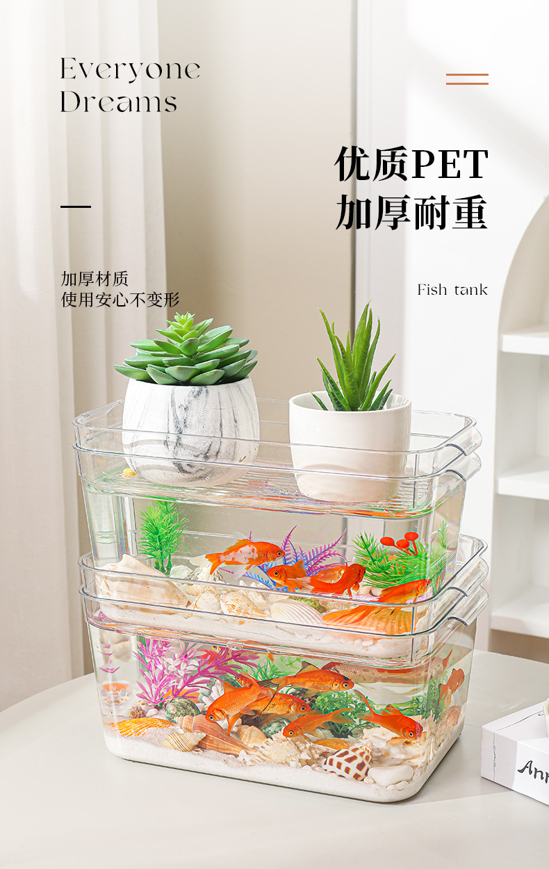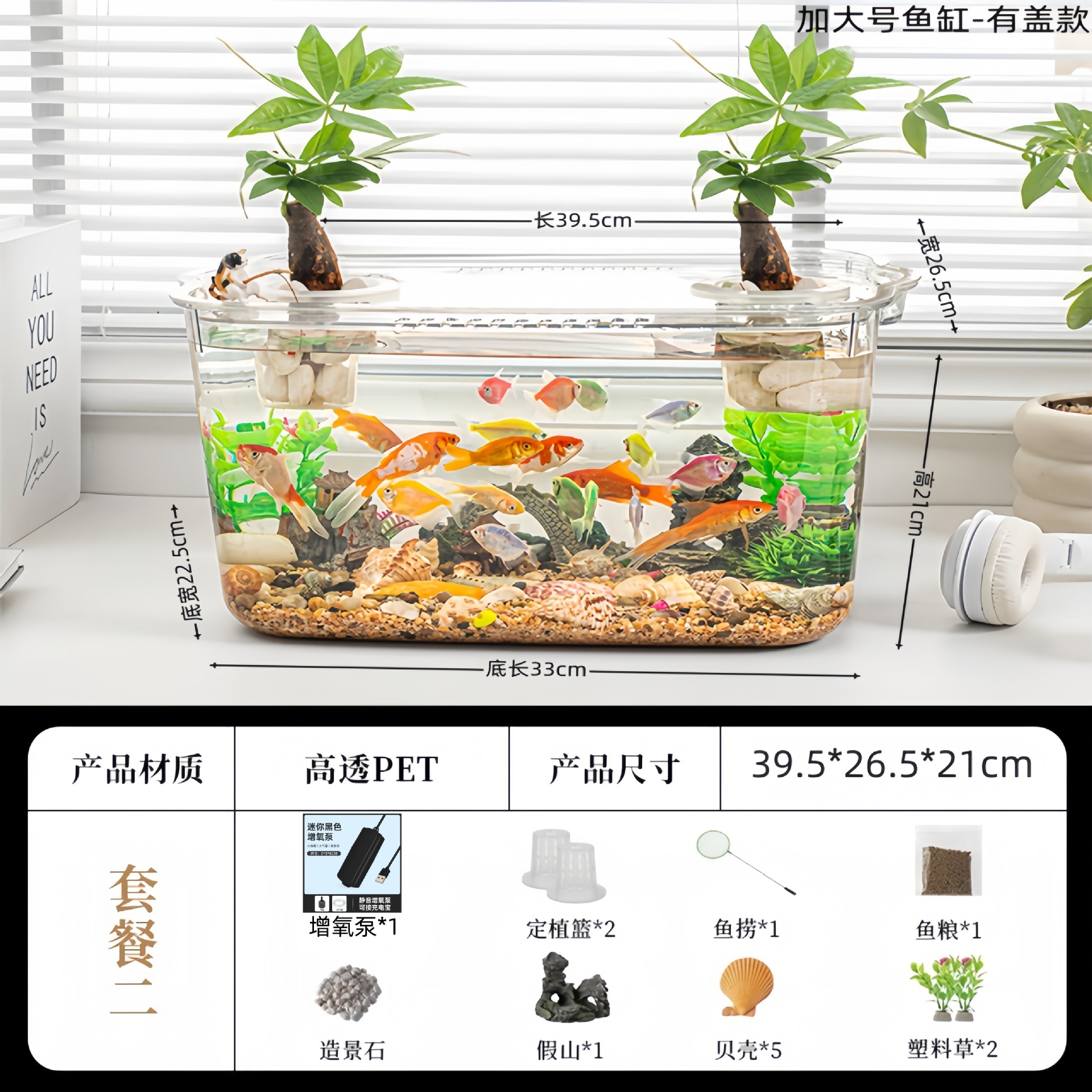 뚜껑이있는 새로운 플라스틱 어항 HD 투명 수족관 금붕어 탱크 데스크탑 거북이 번식 상자 생태 물 식물 탱크