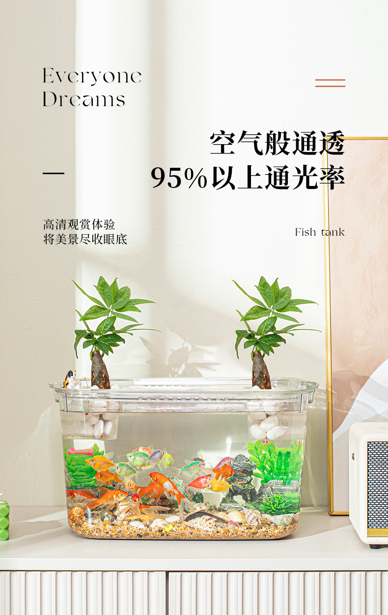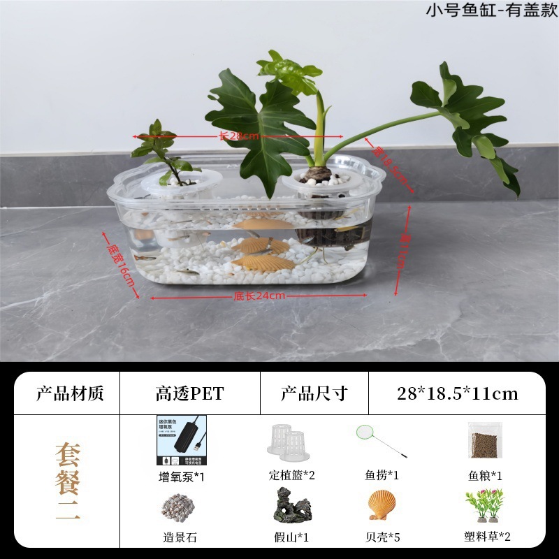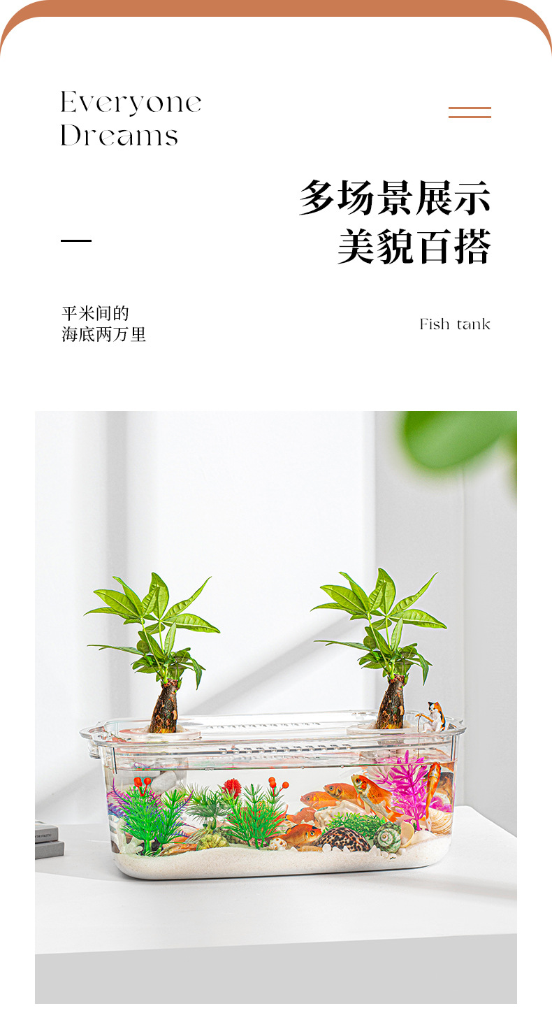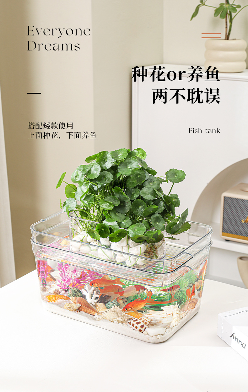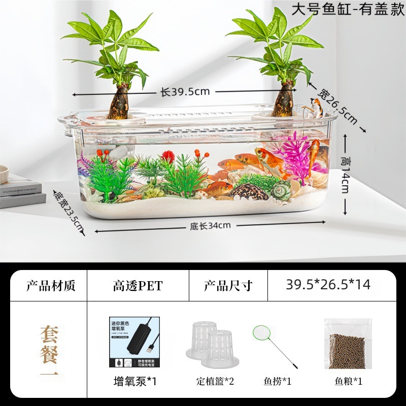 뚜껑이있는 새로운 플라스틱 어항 HD 투명 수족관 금붕어 탱크 데스크탑 거북이 번식 상자 생태 물 식물 탱크