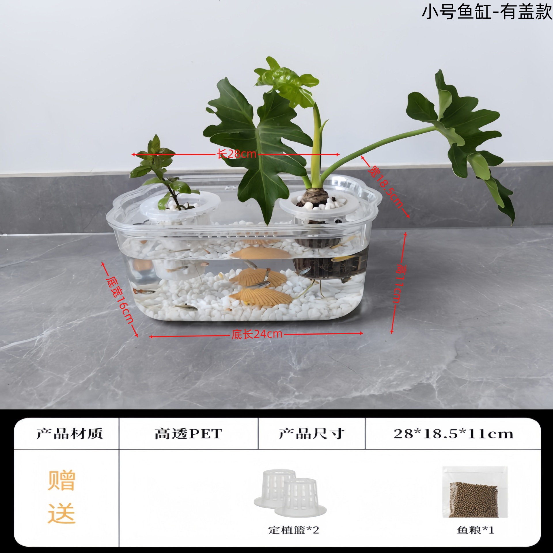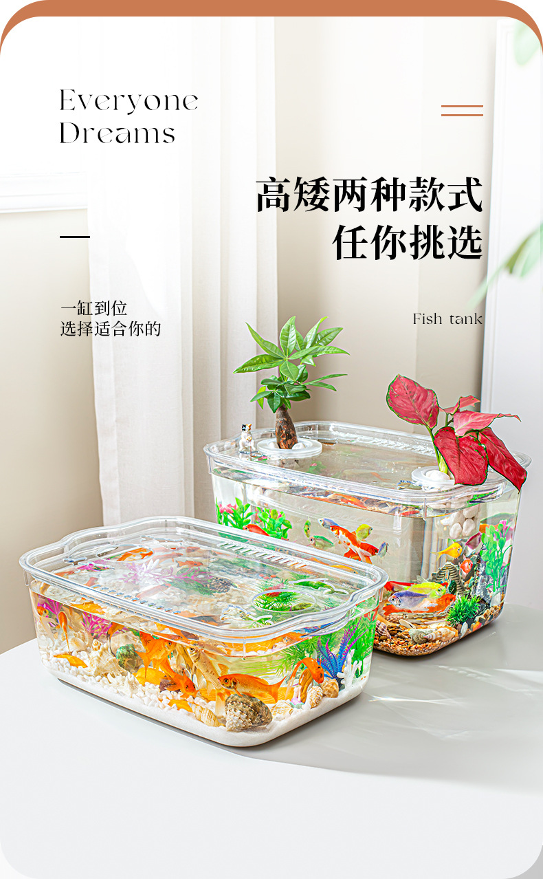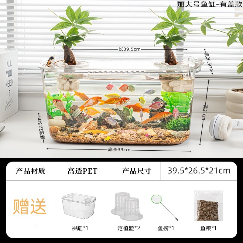 뚜껑이있는 새로운 플라스틱 어항 HD 투명 수족관 금붕어 탱크 데스크탑 거북이 번식 상자 생태 물 식물 탱크스토어 가기