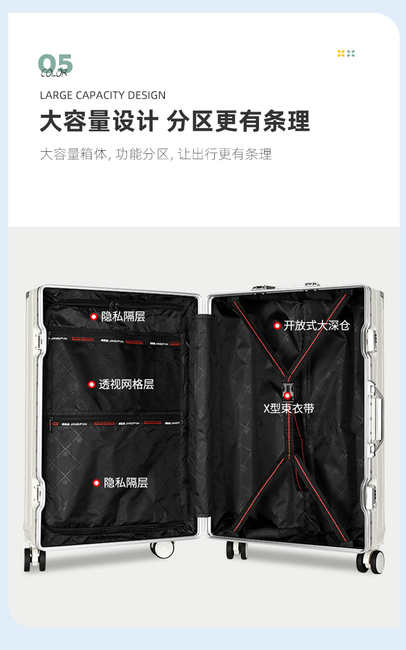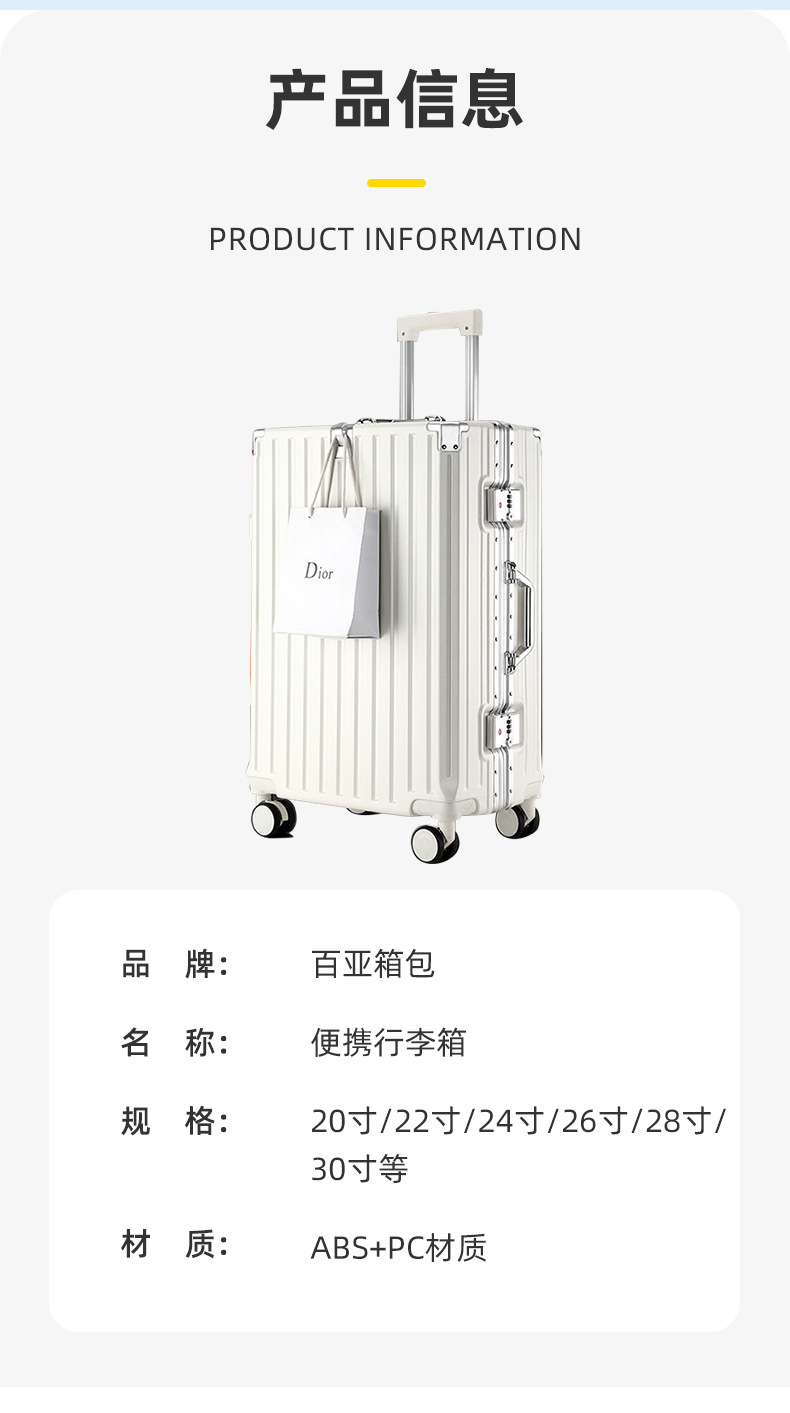 새로운 대용량 수하물 케이스 여성의 유행 알루미늄 프레임 트롤리 케이스 사일런트 유니버설 휠 코드 잠금 장치 가방스토어 가기