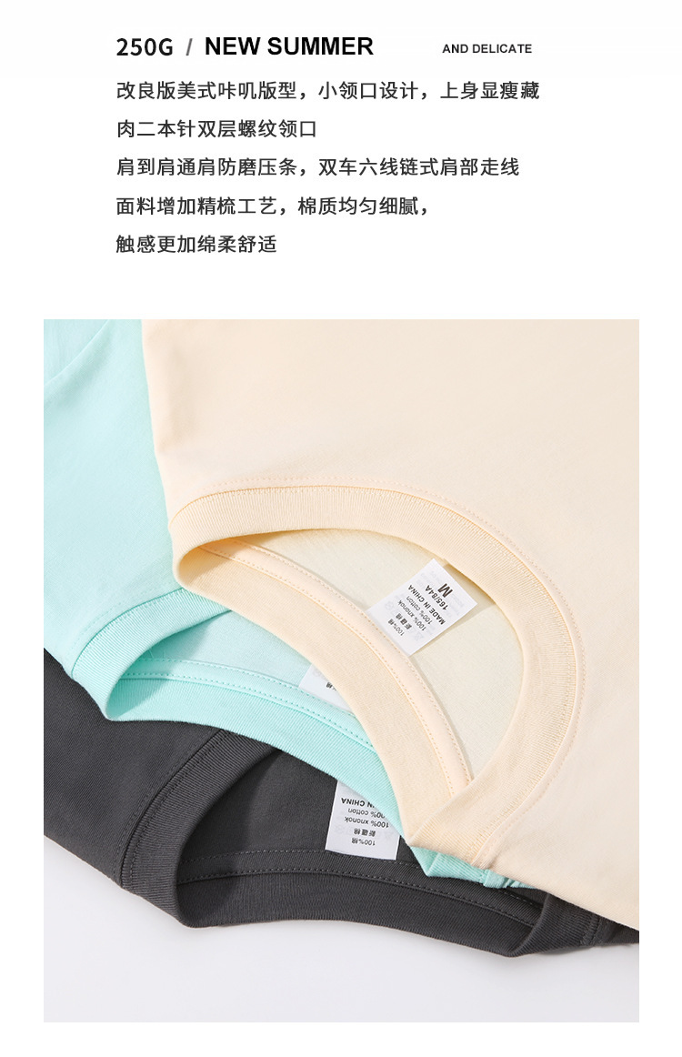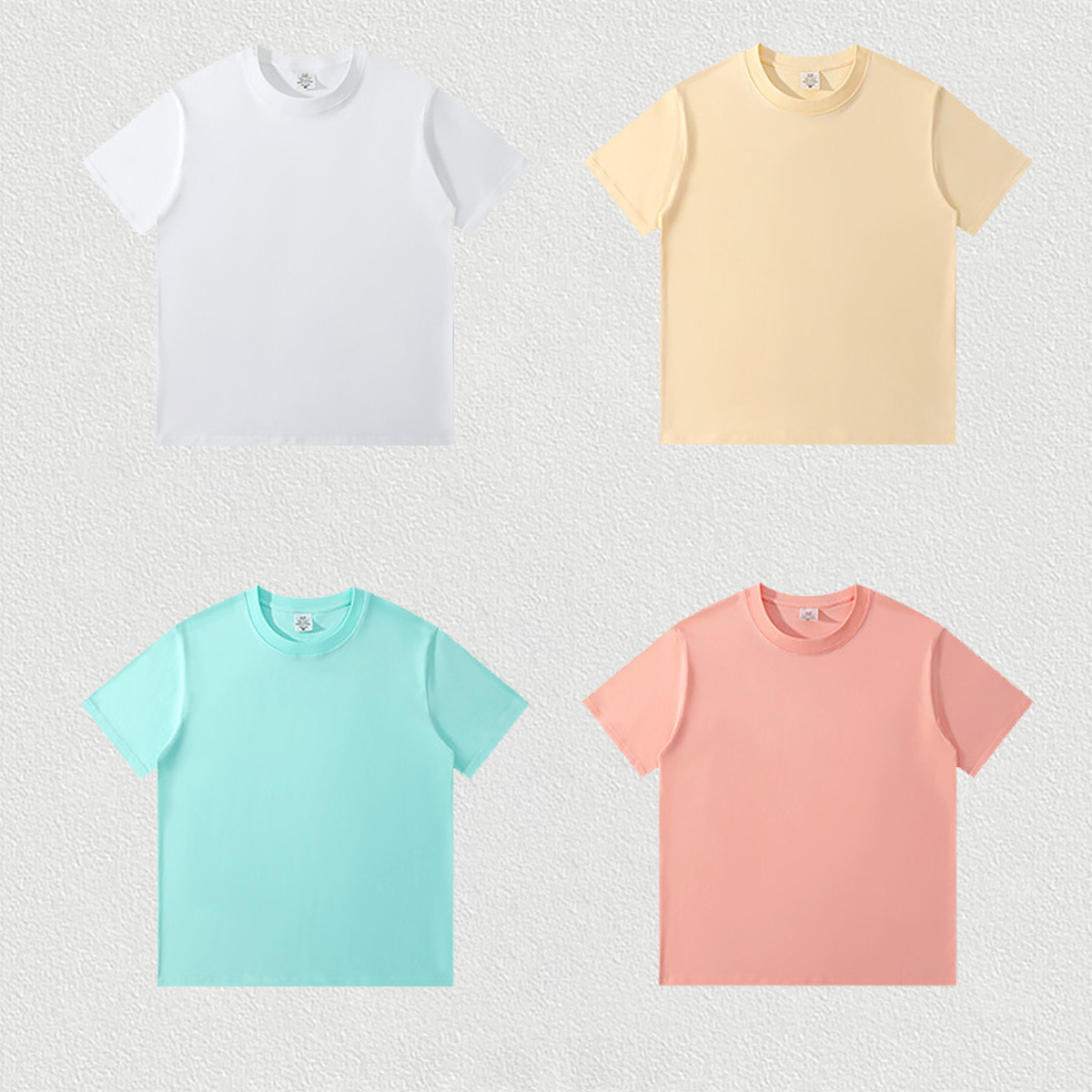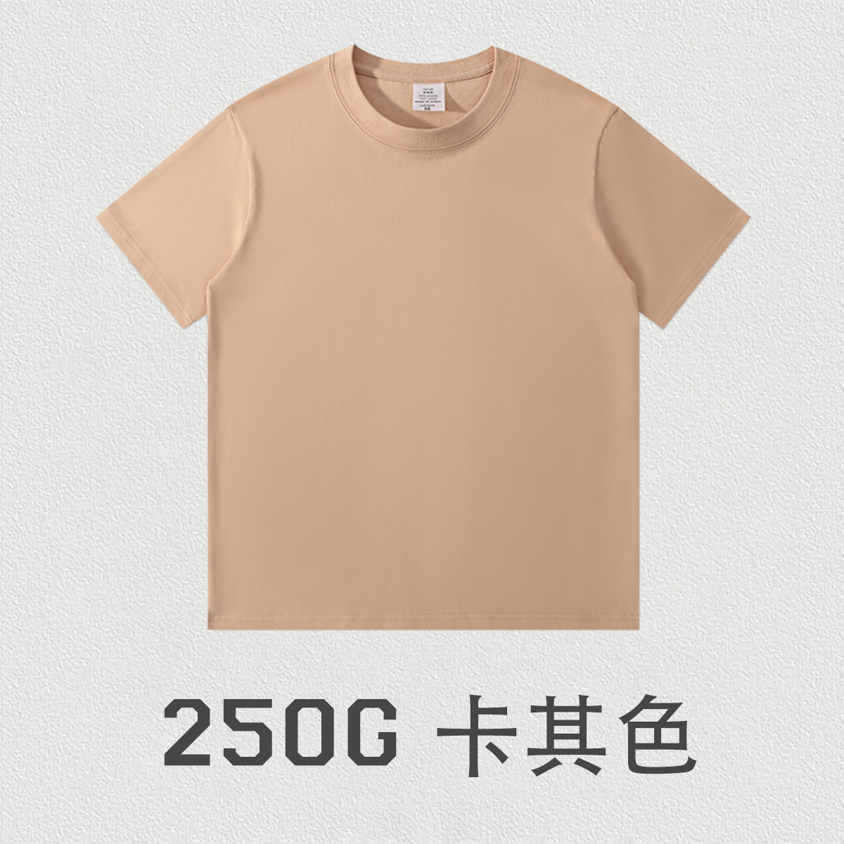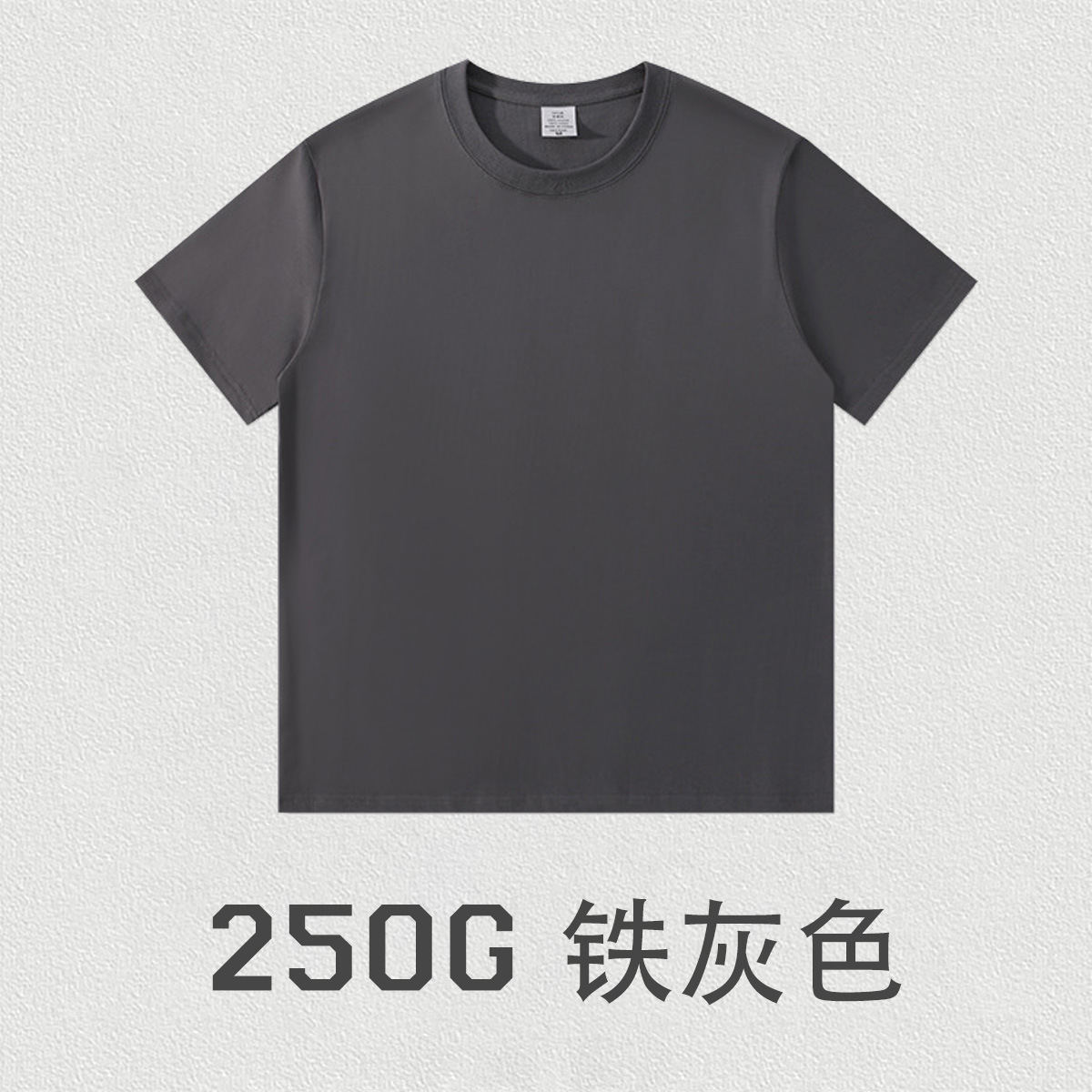 250G 남자와 여자의 무거운 어깨 코튼 짧은 소매 티셔츠 남자의 단색 크루 넥 느슨한 남자 탑베이스 셔츠스토어 가기