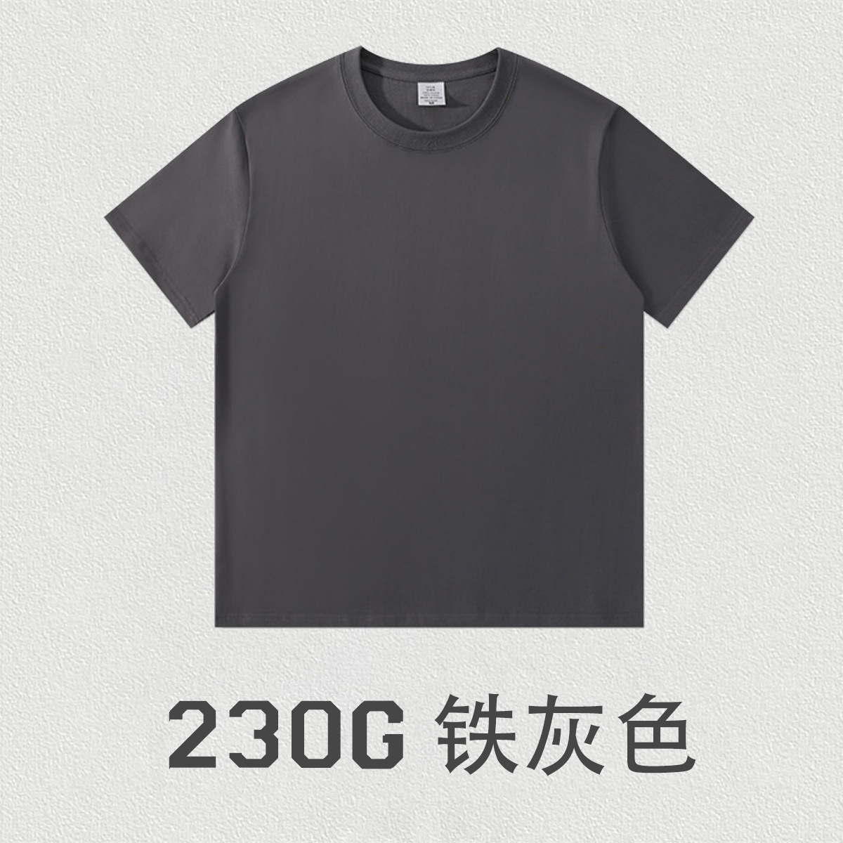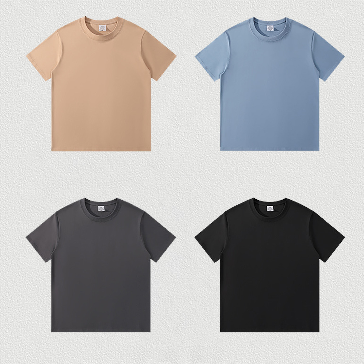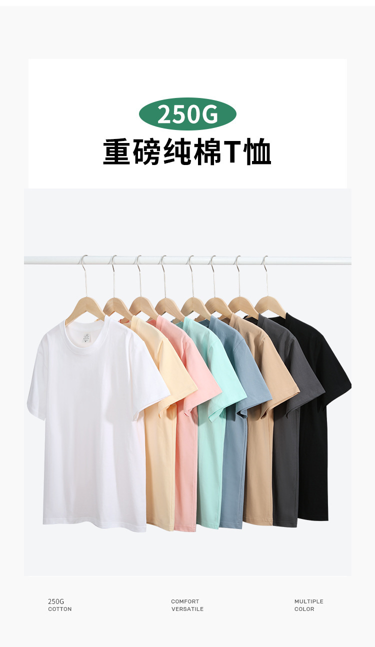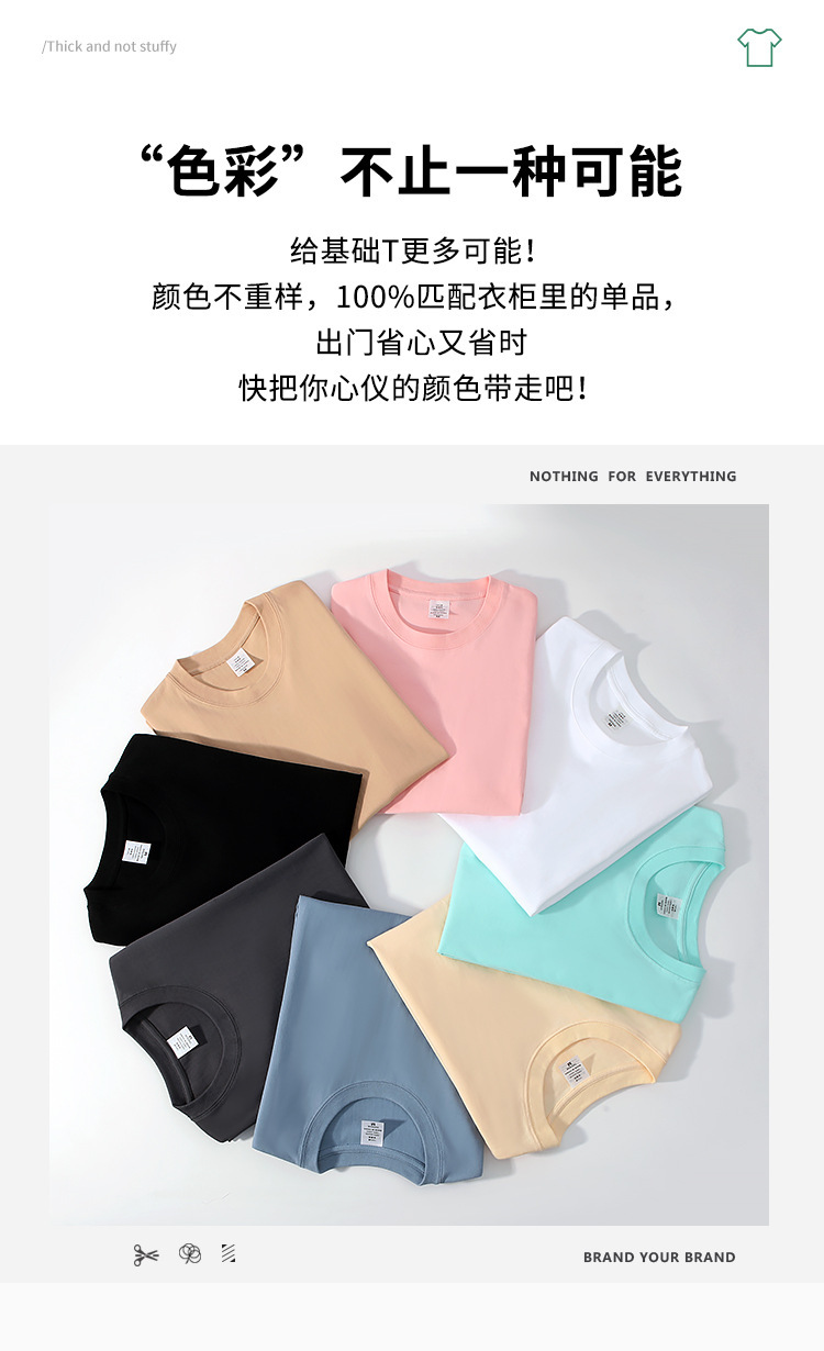250G 남자와 여자의 무거운 어깨 코튼 짧은 소매 티셔츠 남자의 단색 크루 넥 느슨한 남자 탑베이스 셔츠스토어 가기