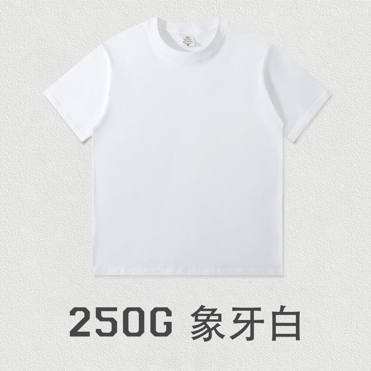 250G 남자와 여자의 무거운 어깨 코튼 짧은 소매 티셔츠 남자의 단색 크루 넥 느슨한 남자 탑베이스 셔츠