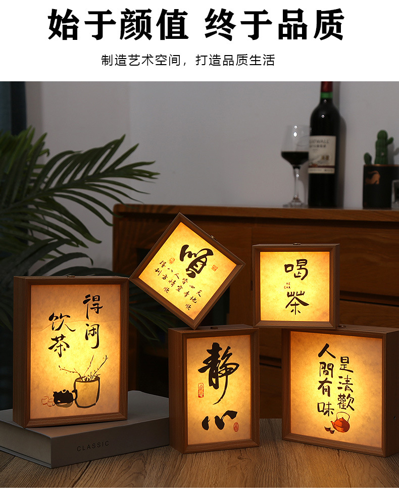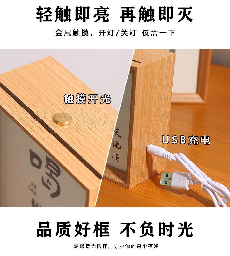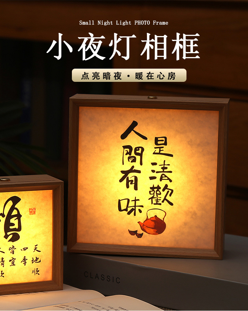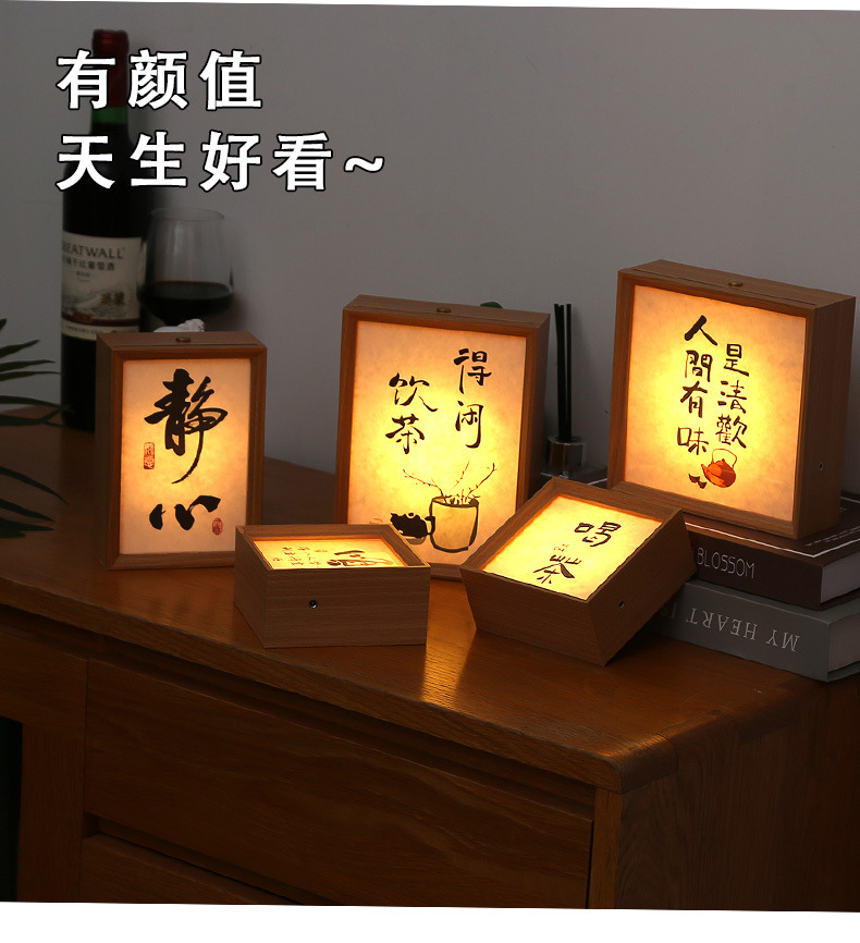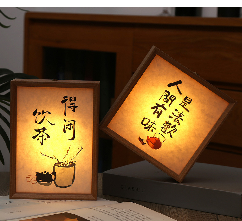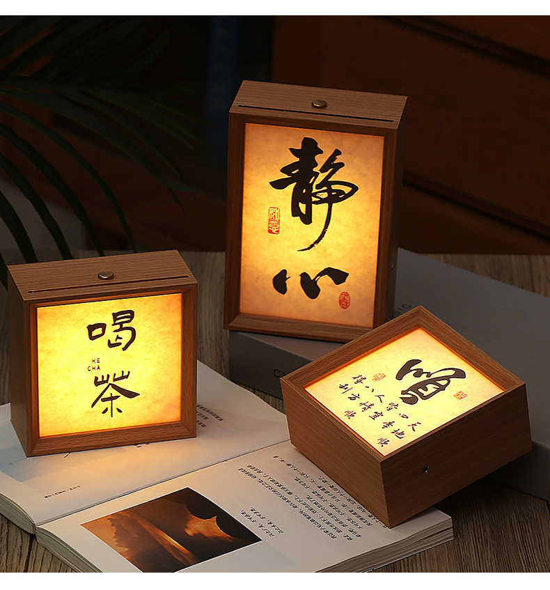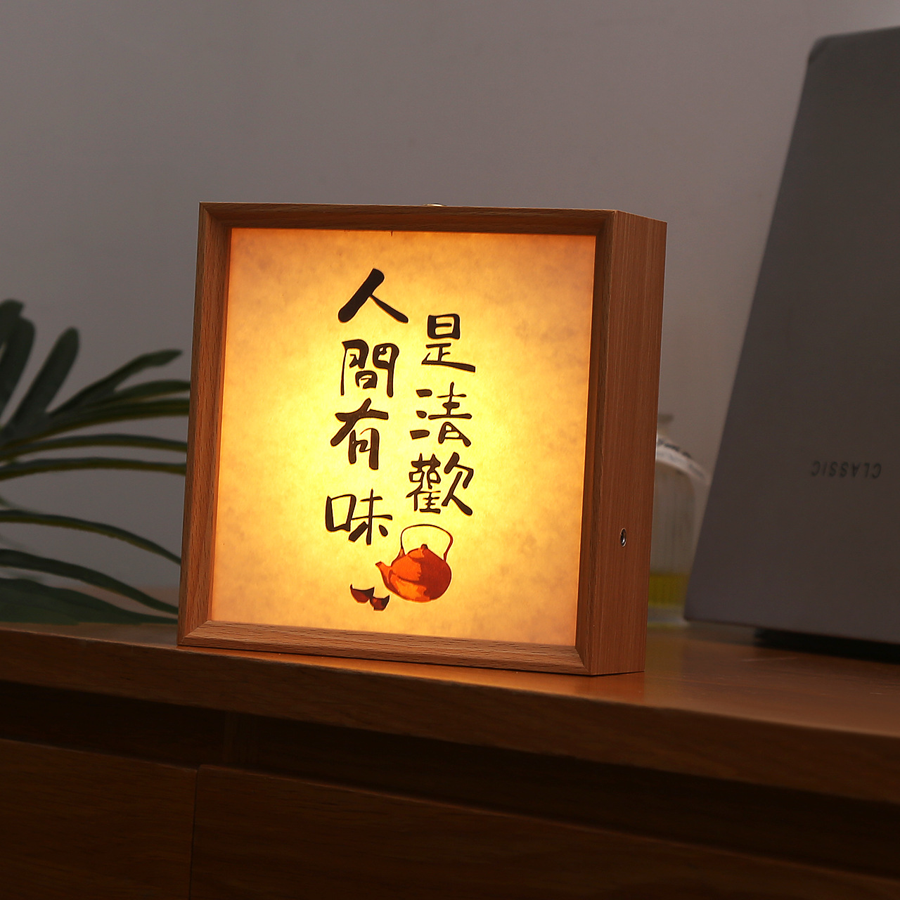 창의적인 서예 사진 프레임, 작은 야간 조명, 분위기 조명, 휴일 LED 선물 장식품, 터치식 사각형 탁상용, 모던하고 심플한 디자인스토어 가기