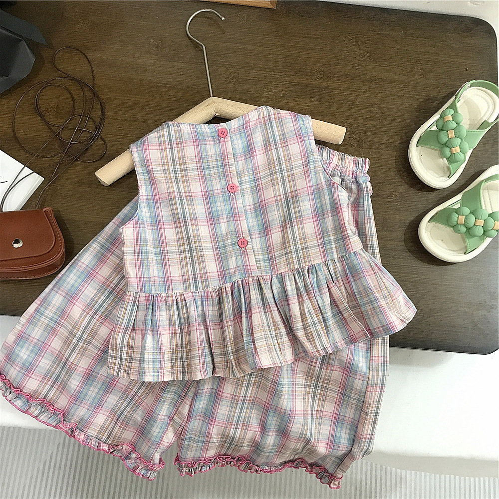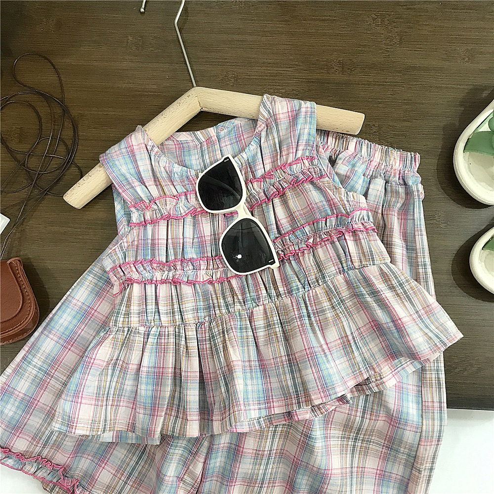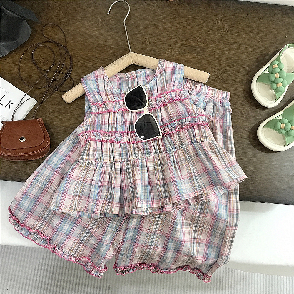 소녀 세트 여름 2024 새로운 스타일 유행 어린이 의류 어린이 조끼 투피스 옷 아기 소녀 여름 옷