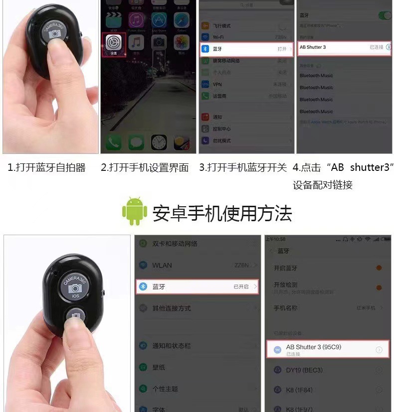 휴대 전화 블루투스 원격 제어 비디오 사진 작가 브래킷 액세서리 무선 블루투스 리모콘과 같은 원격 촬영스토어 가기