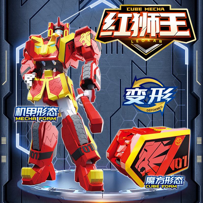 루빅스 큐브 전사 붉은 사자 왕 녹색 악어 신속한 블루 코뿔소 변형 로봇 메카 어린이 장난감 소년 슈퍼 짐승 킹 콩