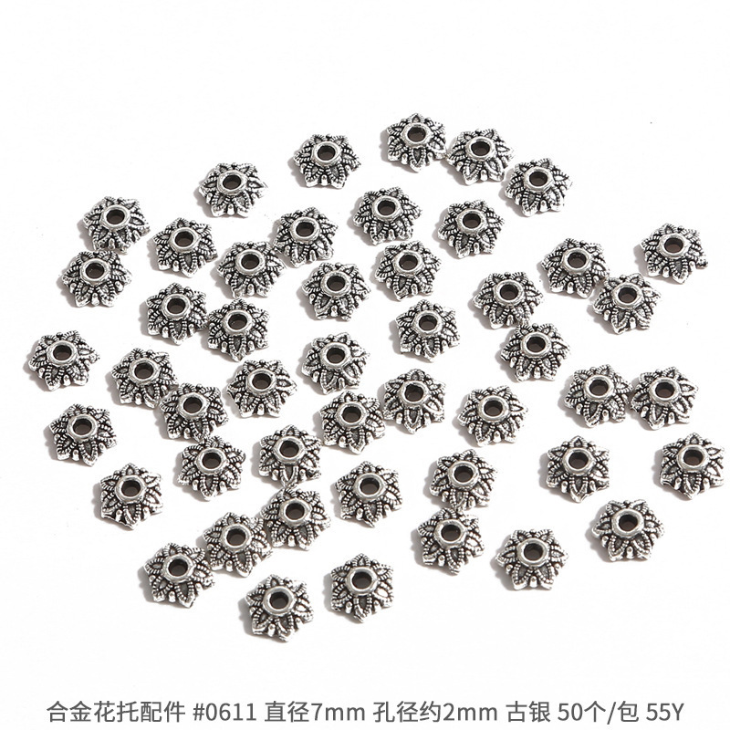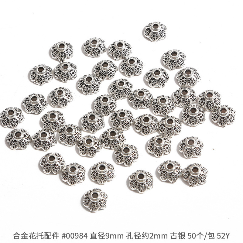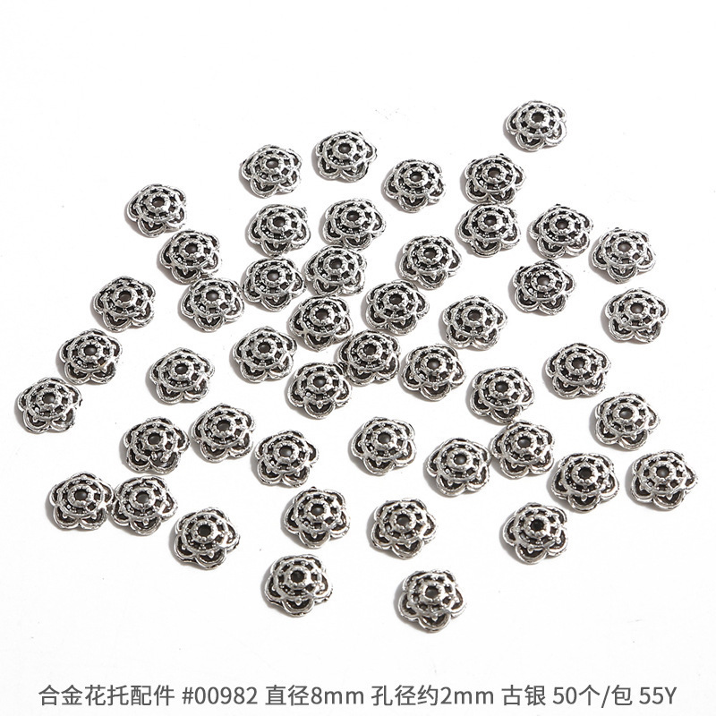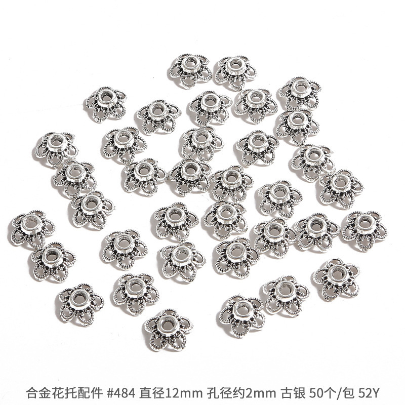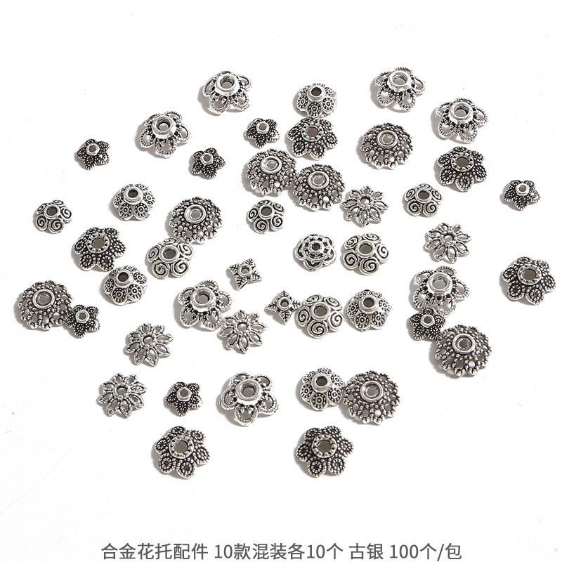 고대 실버 합금 중공 꽃 홀더 비드 캡 비드 캡 골동품 DIY 스텝 쉐이크 헤어핀 크라운 액세서리