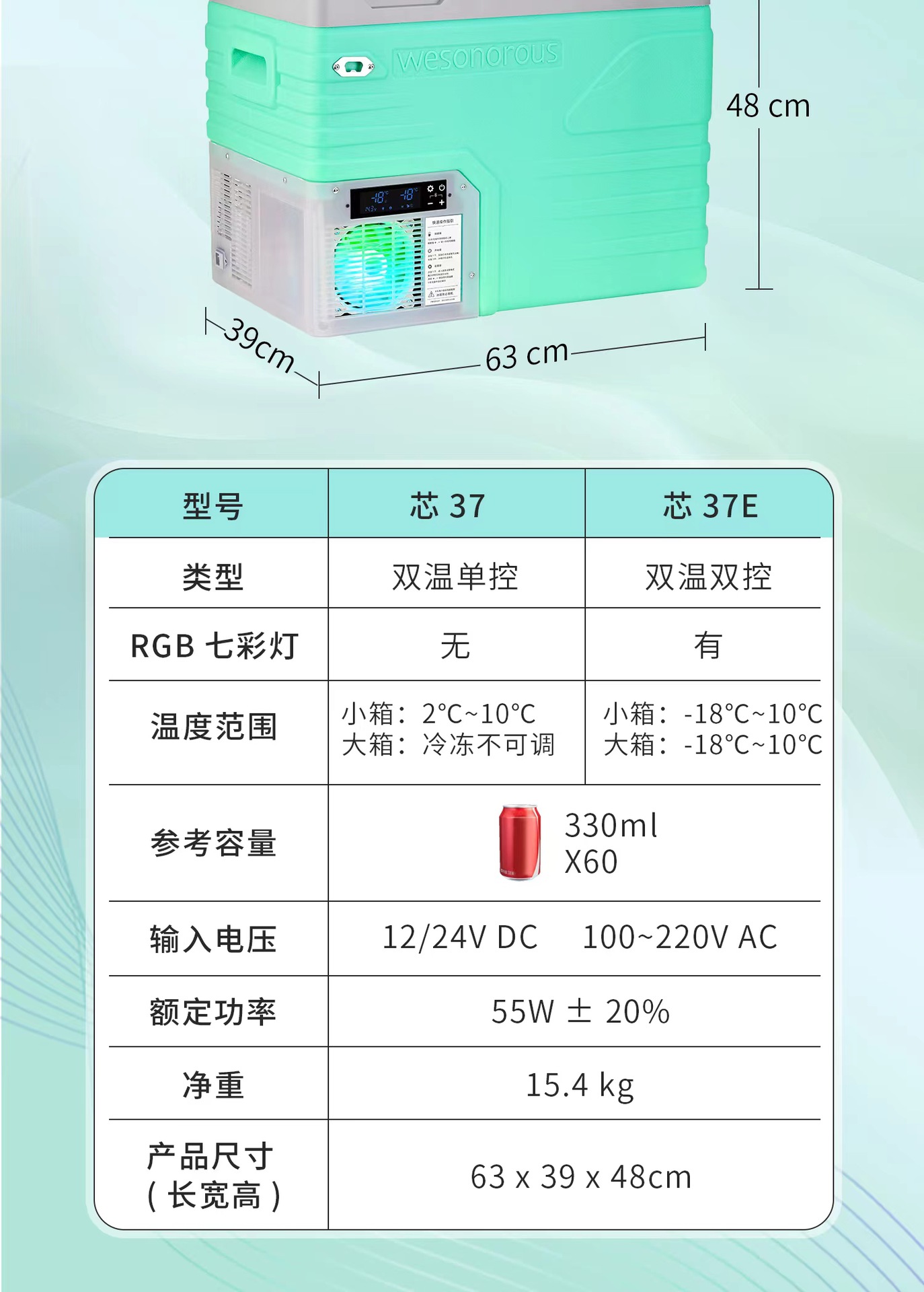 Wei Le Xin 37 | 모바일 냉장고 더블 도어 독립적 인 온도 조정 야외 캠핑 12V24V 압축기 차 냉장고