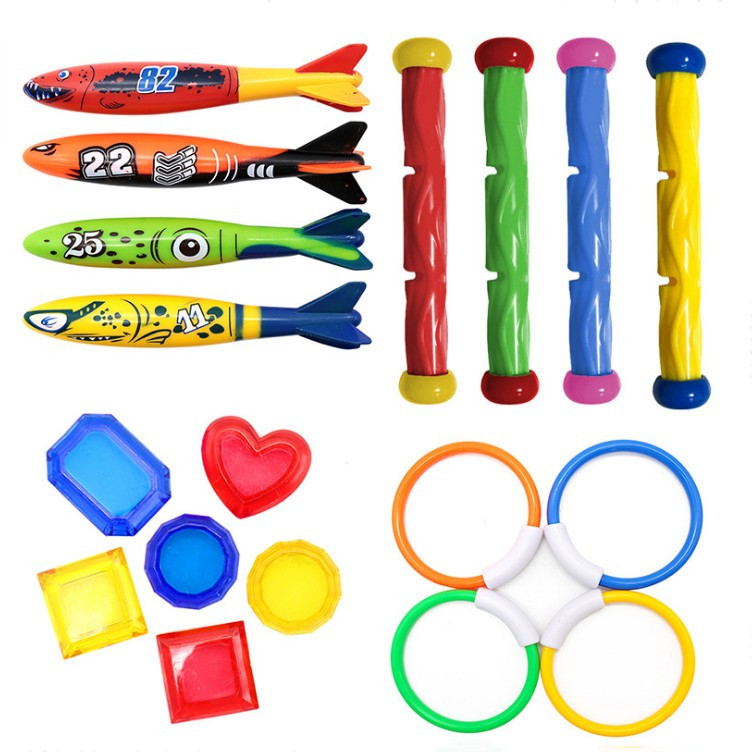국경 간 아마존 다이빙 장난감 어린이 수영장 잠수 다이빙 어뢰 워터 링 다이아몬드 워터 세트 장난감